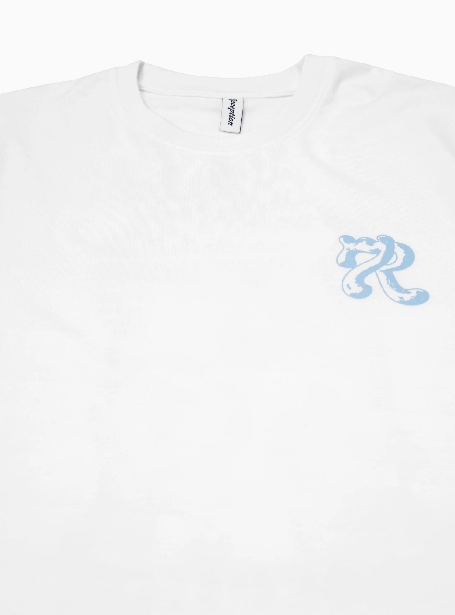 Reception takes a simplistic, playful approach to graphic prints with the 777 tee, featuring a left side chest logo in blue formed of a number 7 overlapping the letter R, and a large back print portraying various gambling related motifs in an ironically friendly, cartoonish fashion above contrasting green RECEPTION text.