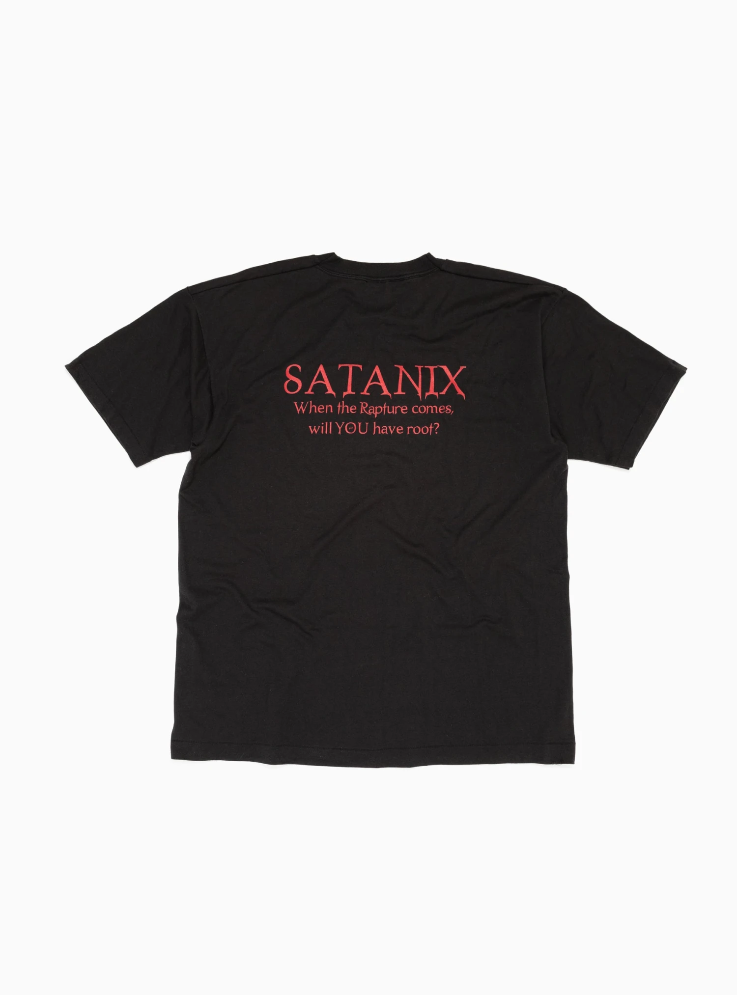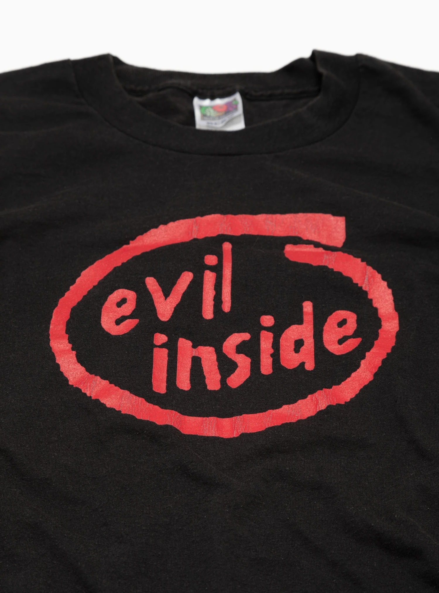 This ’90s Evil Inside T-Shirt has been selected by Unified Goods, a London-based marketplace which curates collectible artefacts spanning six generations. It is single stitched and is a witty rip off of the ‘Intel Inside’ logo and features a Satanix/Rapture back print.Â