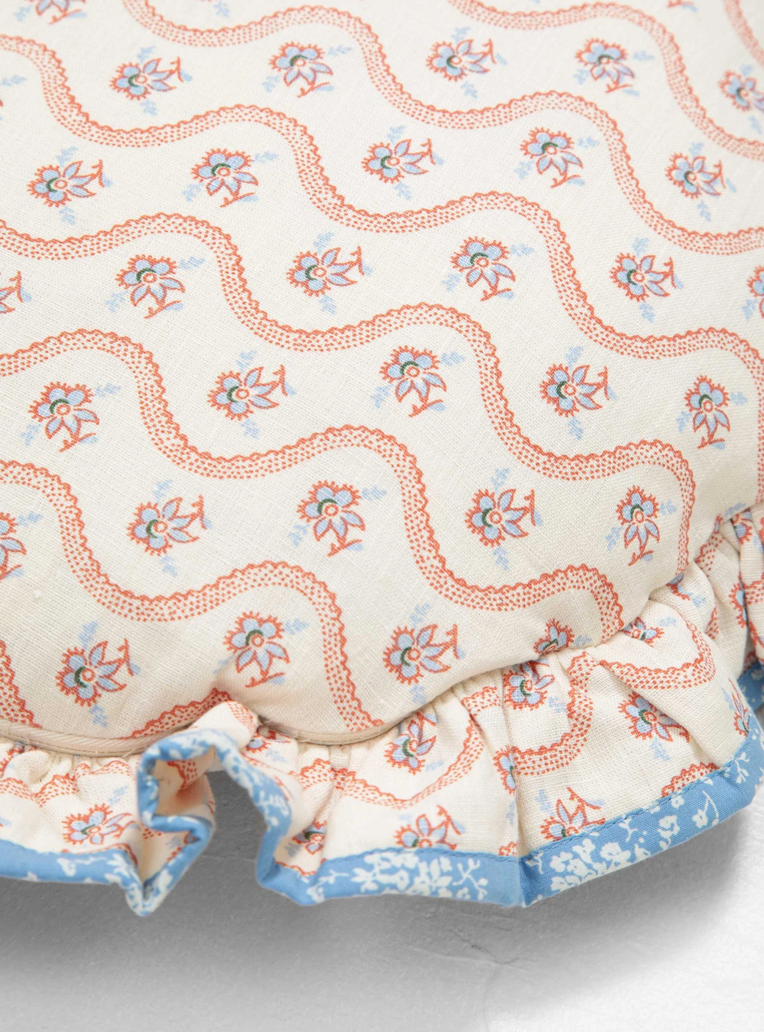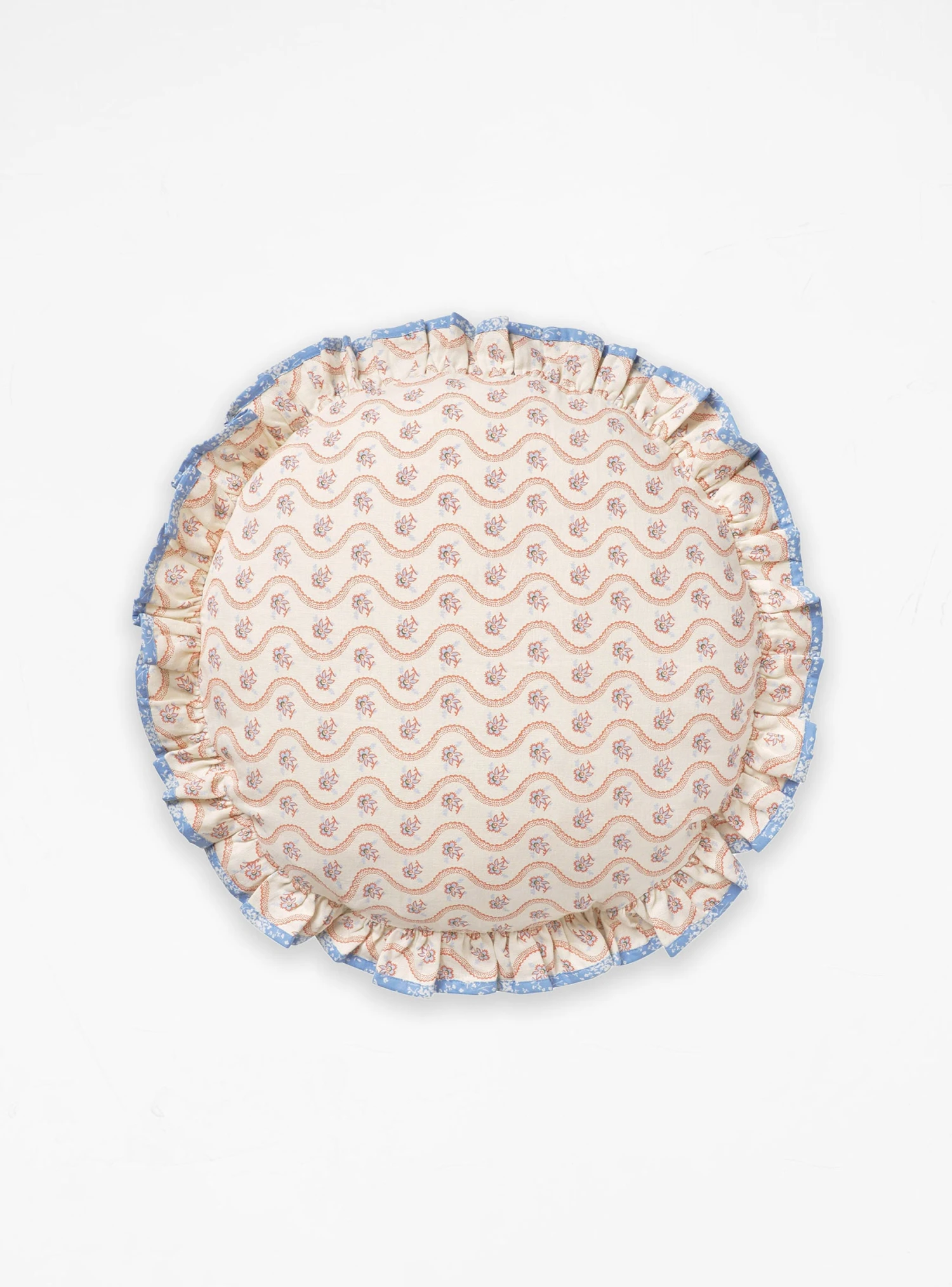Made of pure linen with an ultra-soft feather filling, Projektityyny’s Aalto Kukka Cushion comes decorated by the brand’s Lemikki print and a continuous frilled edge, finished with contrasting binding.Â