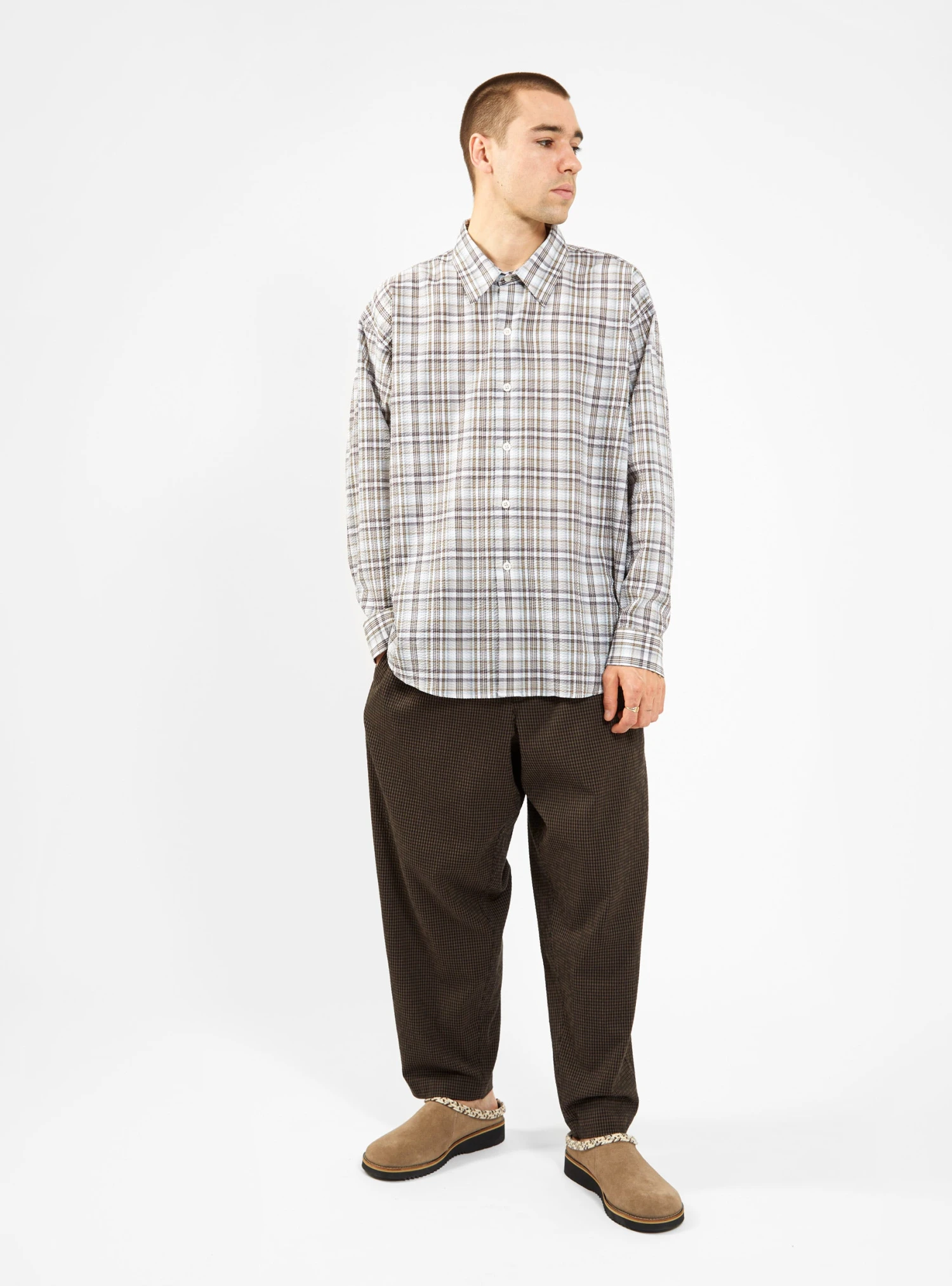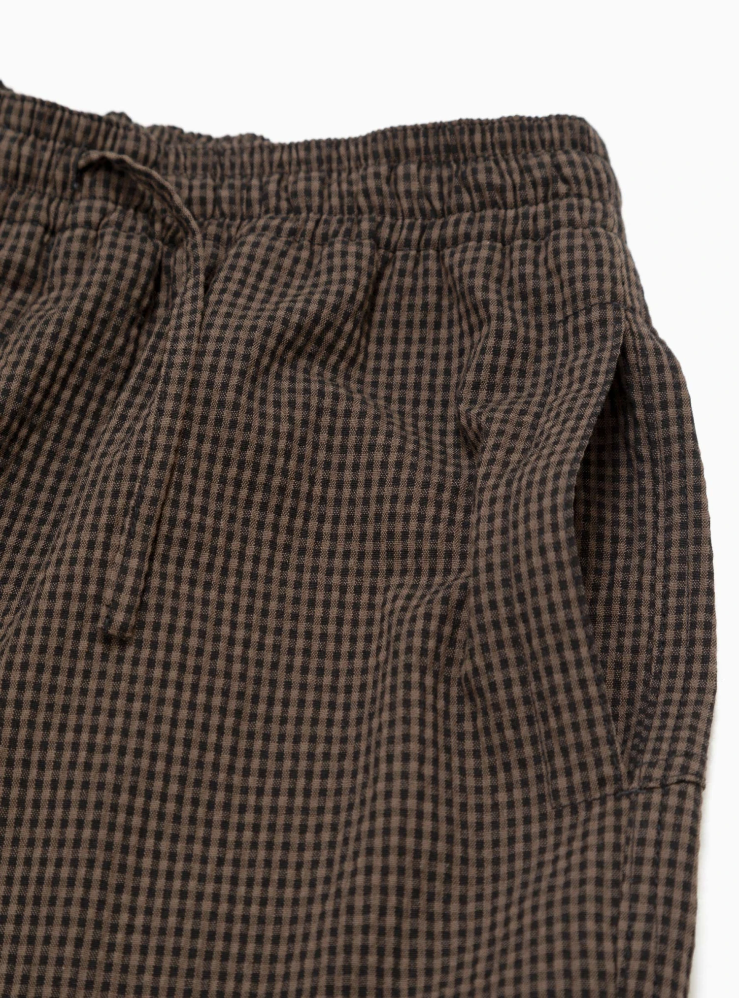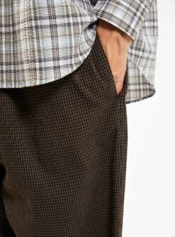 The brown and black gingham Alva Skate trousers from YMC are an effortless blend of form and function. Made from cotton-blend seersucker, which incorporates a touch of stretch for added comfort, they’re cut to a tapered silhouette with an elasticated drawstring waistband and cropped hems.