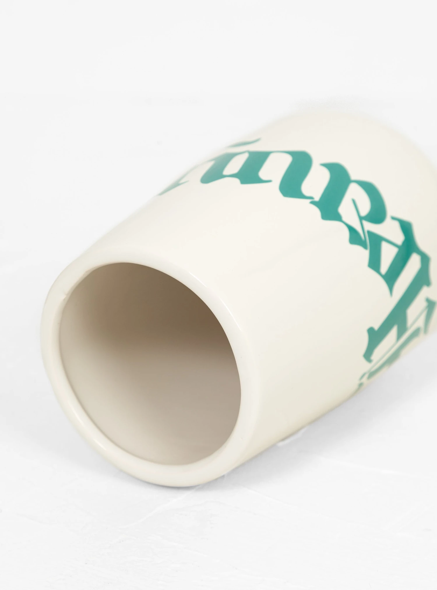 Taking design cues from 17th-century fonts, this white and green Anaheim pot from Japan’s DETAIL inc. can be used for all manner of desktop storage or decoration. It’s complete with hand-painted Heavy branding in traditional blackletter.