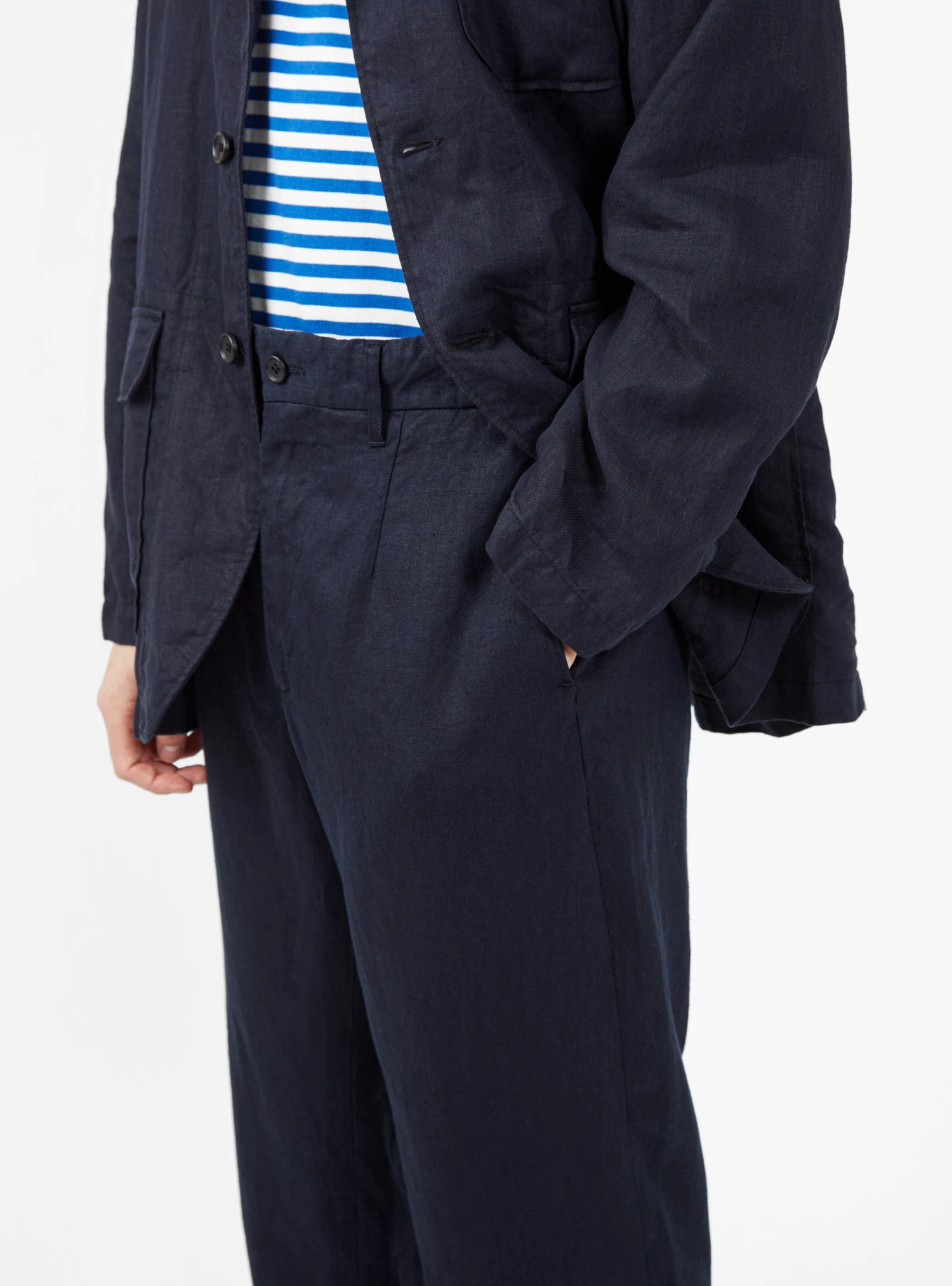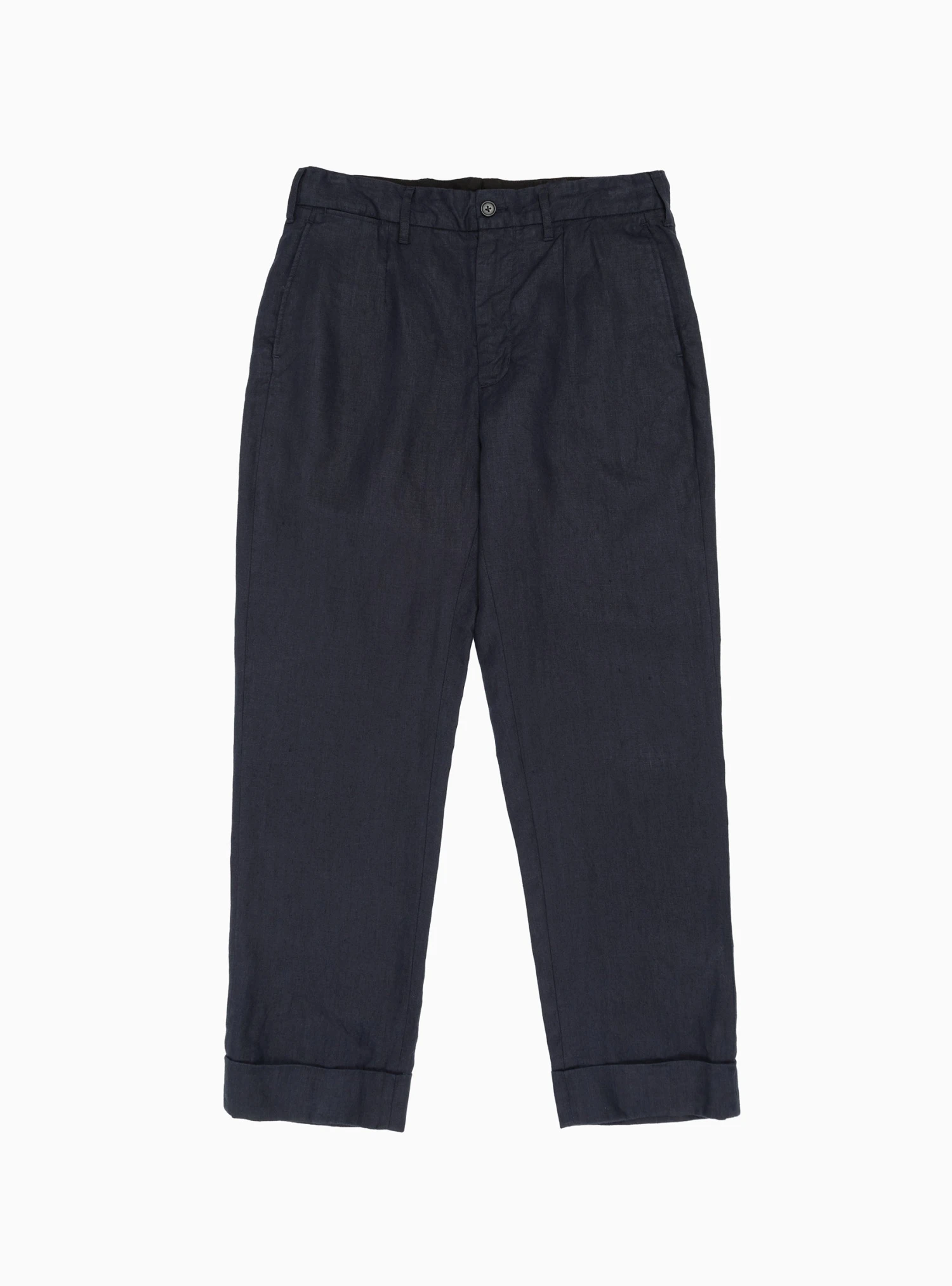 Made in New York from breathable linen twill, these navy Andover trousers from Engineered Garments are cut to a relaxed silhouette with straight legs and turn-up hems. Internal drawstring provide the perfect fit.