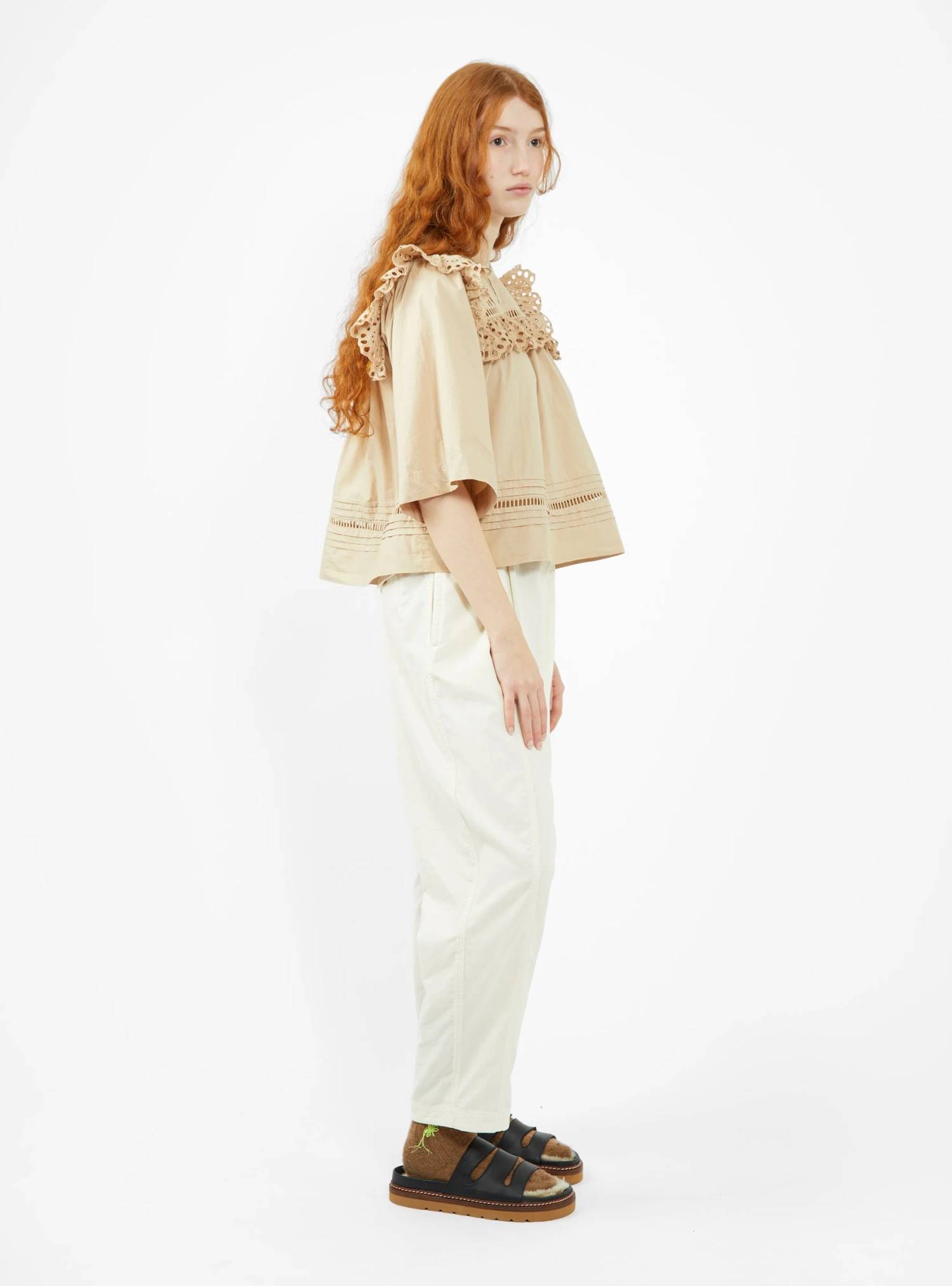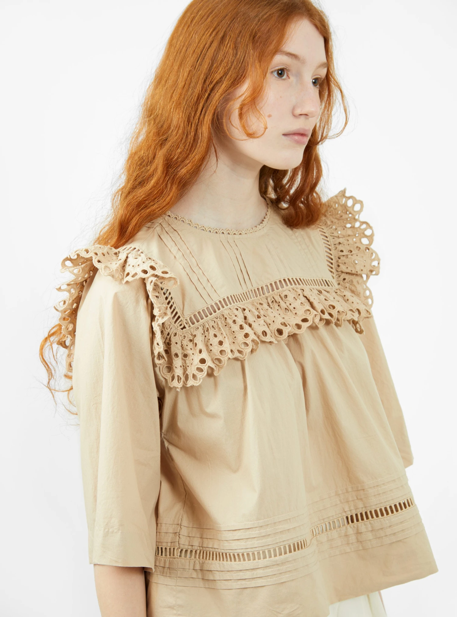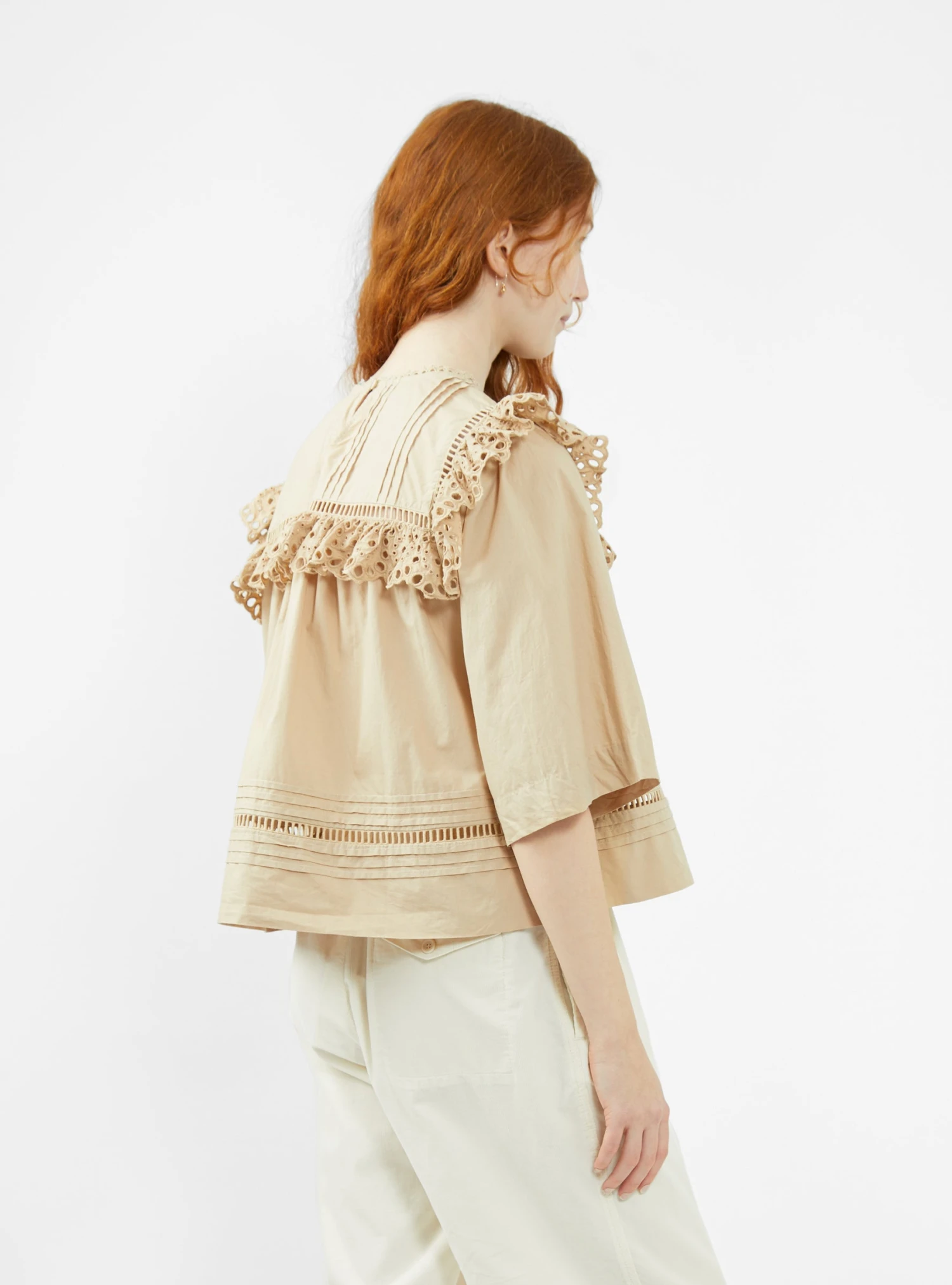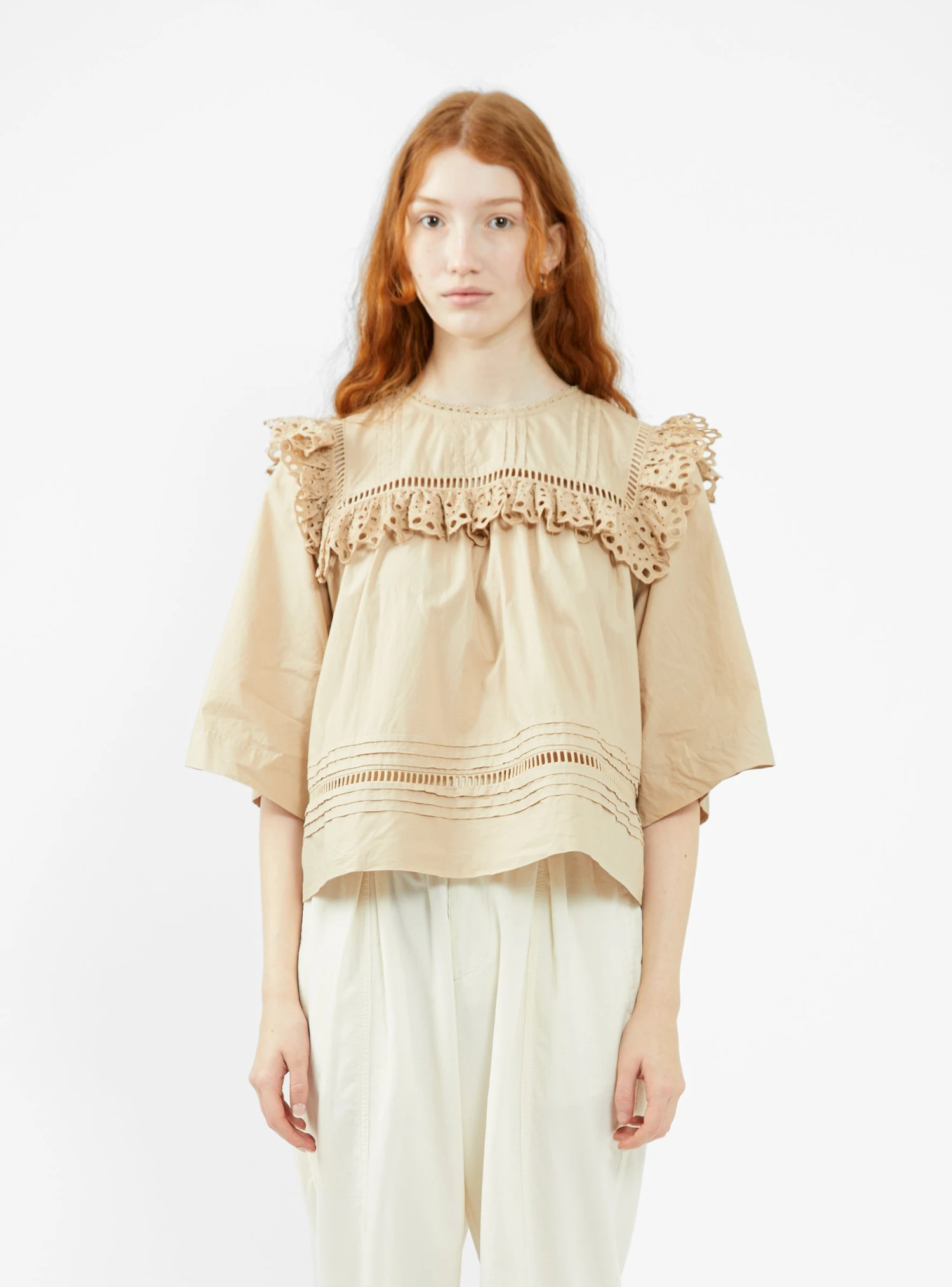 The Asha Tee from Danish label Skall Studio combines classic and contemporary in a casual versatile style, just in time for summer. Made from 100% organic cotton the blouse comes in a relaxed, loose fit with round neck and lace details throughout.