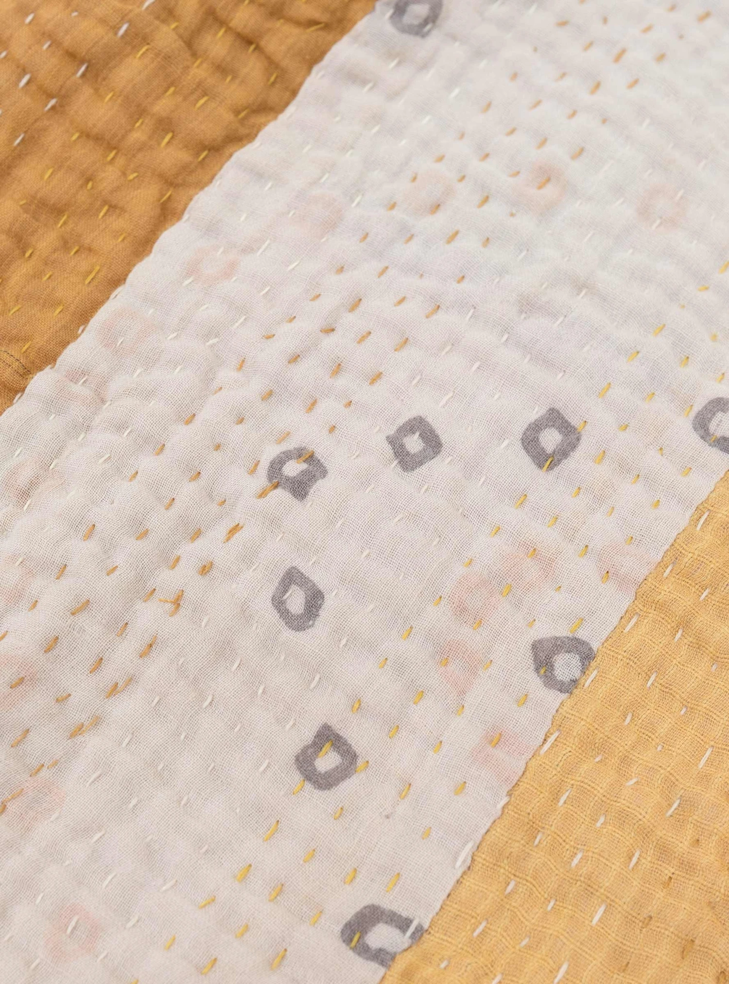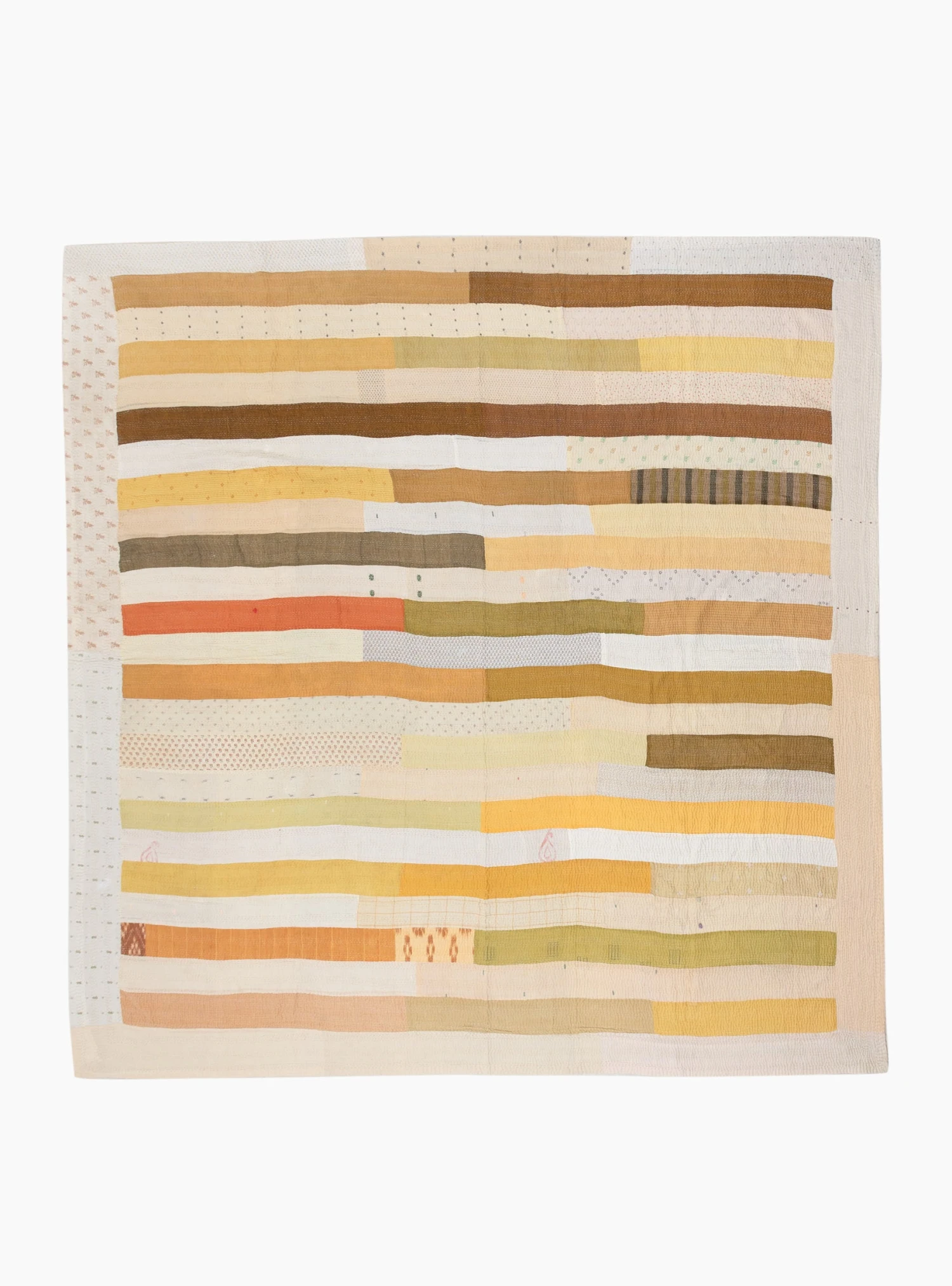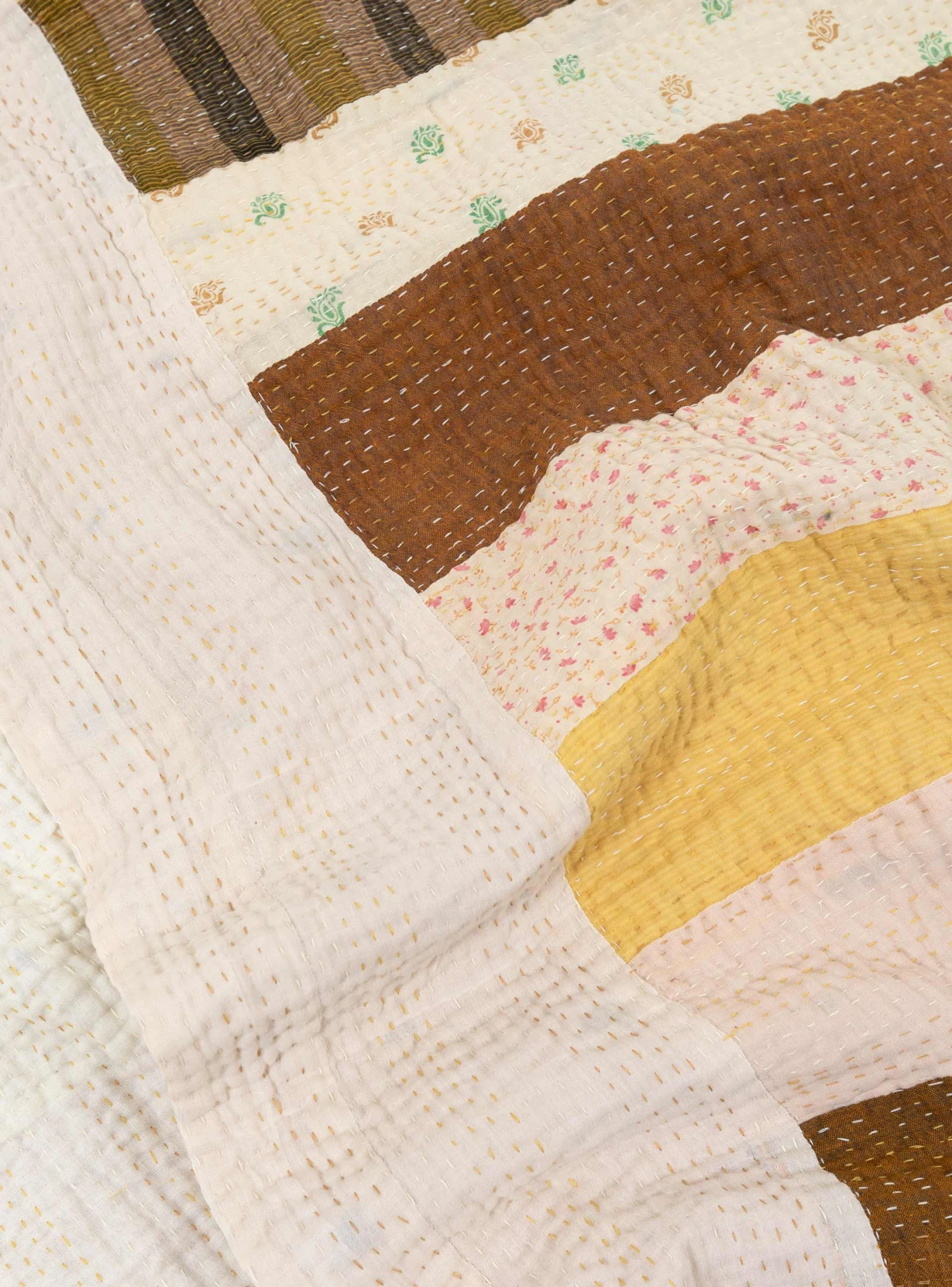The Bars Quilt from Aunti Oti is the result of time-honoured handwork by skilled artisans in India. Cut from 100% upcycled cotton, the quilt features bars of multicoloured embroidery and delicate motifs throughout.Â