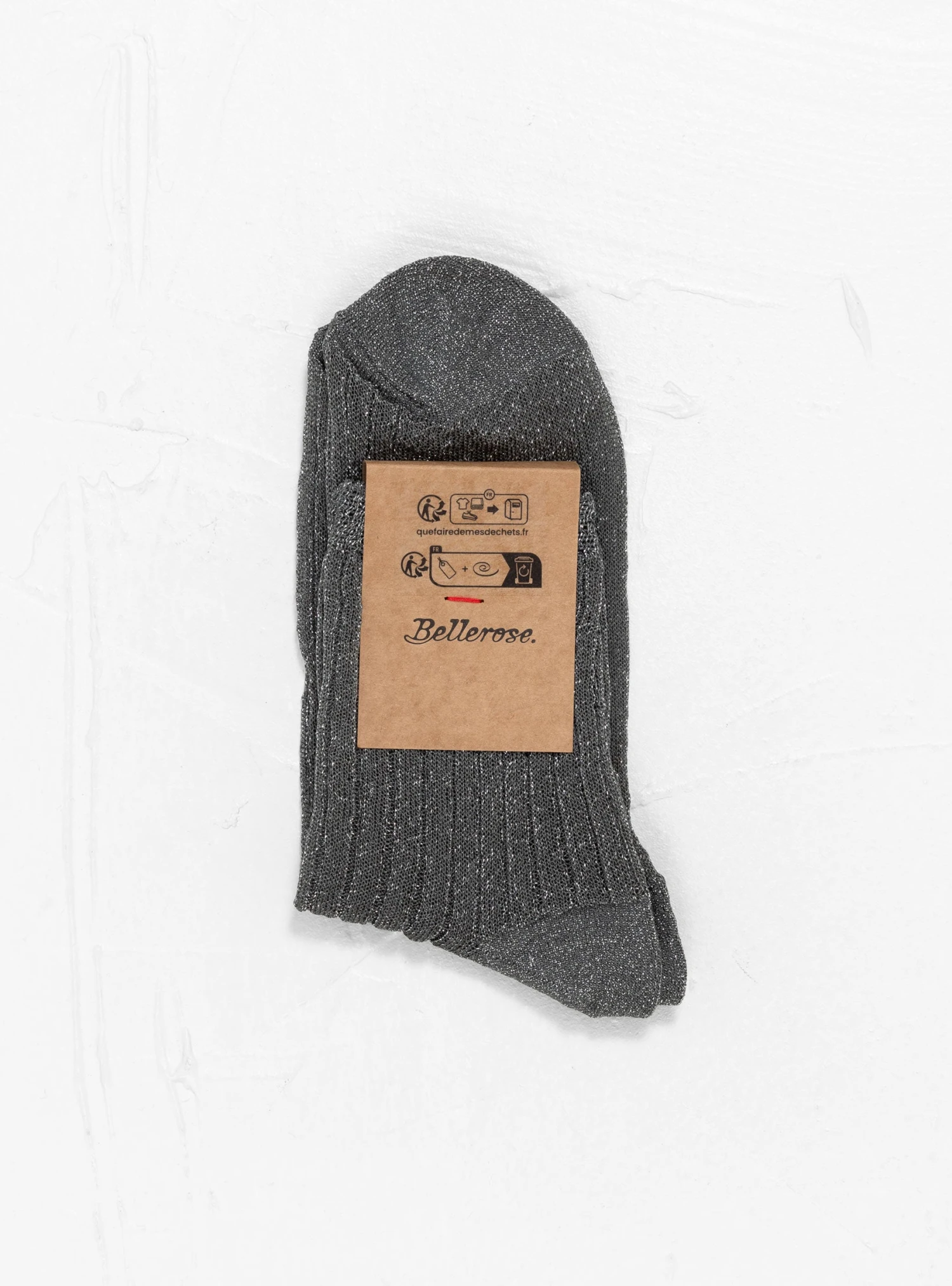 The First Sock from Bellerose come in a solid Concrete colourway. The ribbed socks feature subtle sparkle detailing.