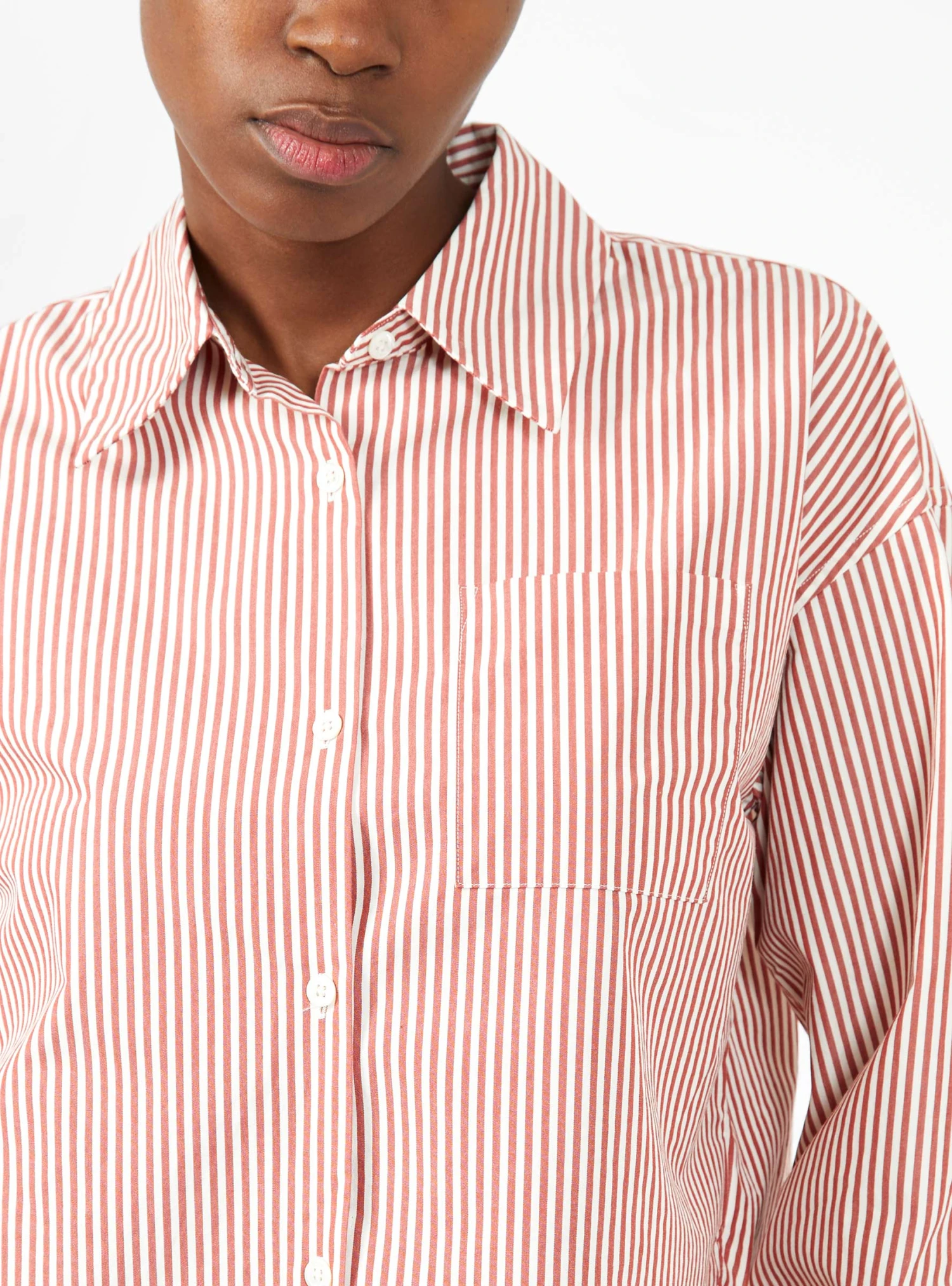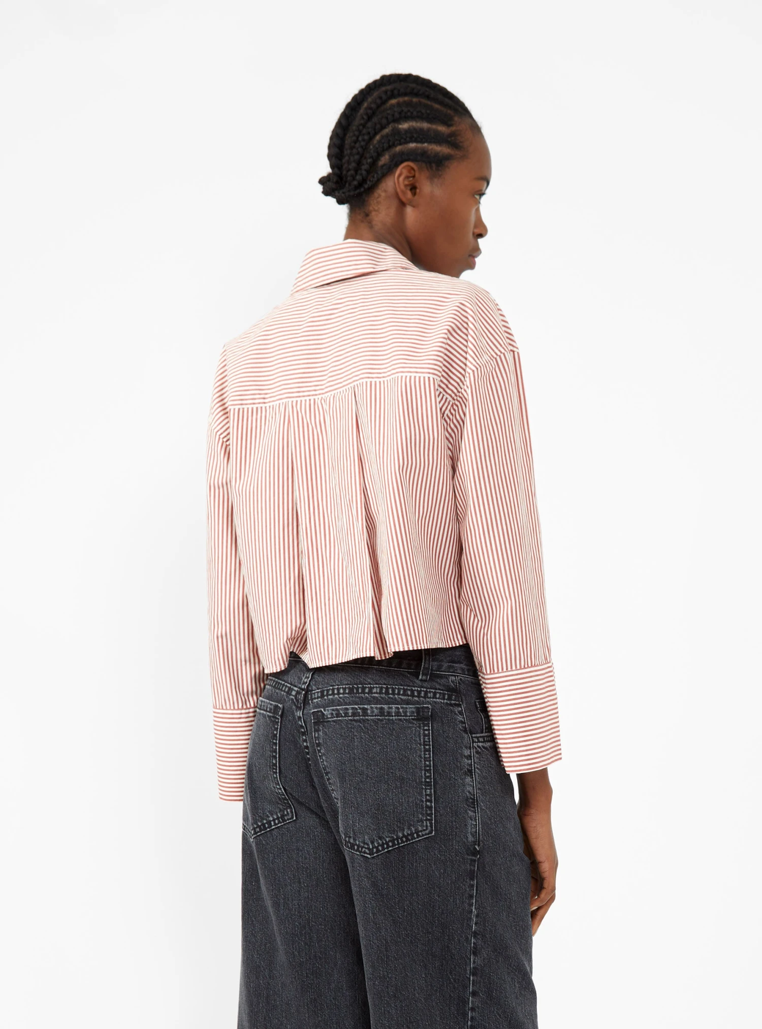 Bellerose experiments with proportions to create this red and white striped Gloria shirt. Made from cotton poplin, it’s cut to a relaxed silhouette with dropped shoulders, kimono-inspired sleeves, and a cropped hem.