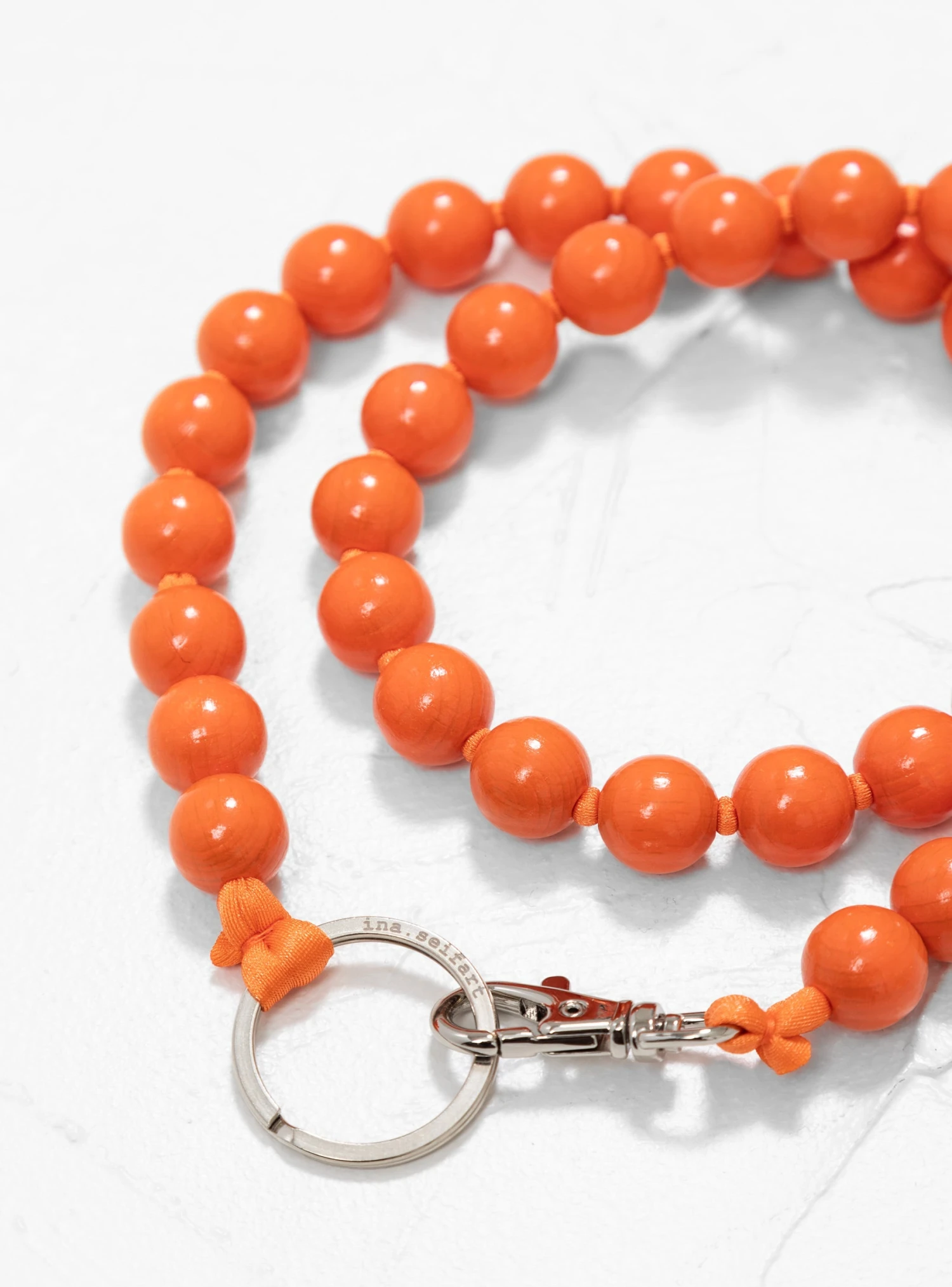 The perfect organisational accessory, this orange Big Pearls Long Keyholder from Ina Seifart is handmade in Berlin with wooden beads and features silver-tone metal hardware, including a keyring and clasp.