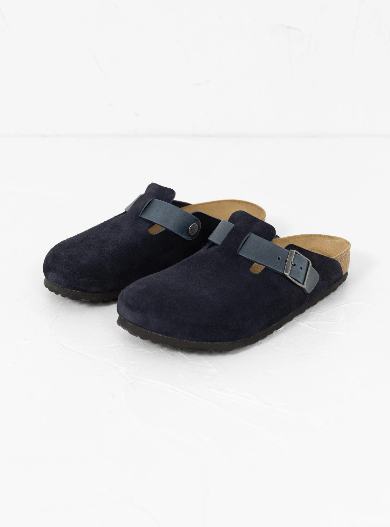 This iteration of the cult-classic Birkenstock Boston is crafted from a combination of suede, with an oiled leather strap. Coming in a midnight navy colourway, the sandals are made in Germany, featuring anatomical cork-latex footbeds for optimum support and set on EVA rubber soles.