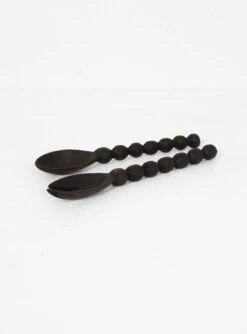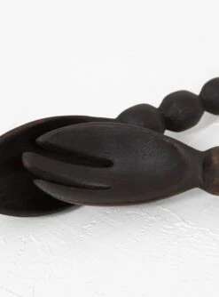 The black Bobbin Salad Servers by designer Alessandra Williams were inspired by banisters and headboards seen during her trips through Europe. The idea then came to life thanks to the talented artisans of a fair trade certified cooperative based in Nairobi. Jacaranda is a fast growing wood, and these pieces were carved from offcuts from larger projects.