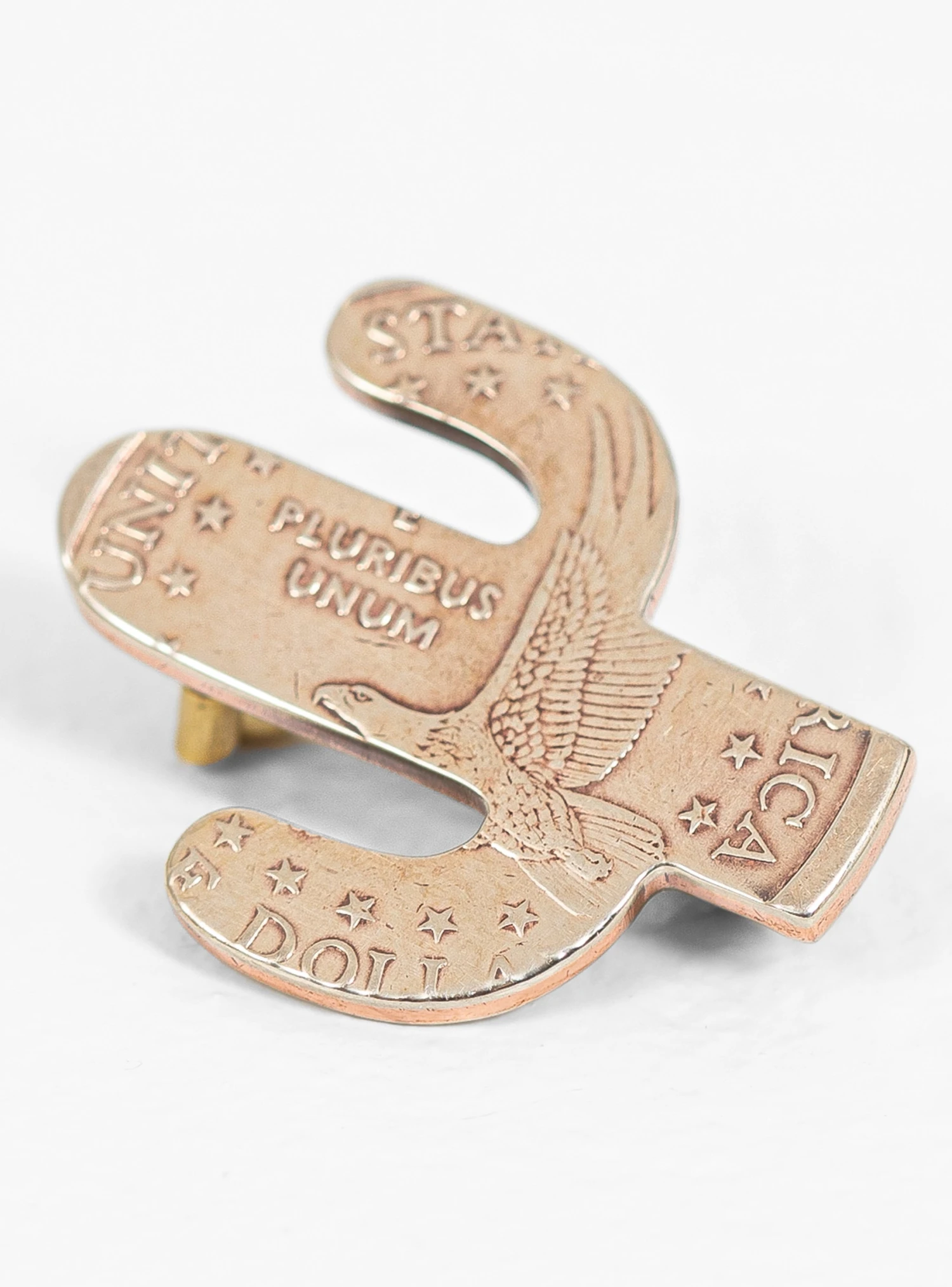 Handmade in Japan, this Cactus pin from NORTH WORKS is fashioned from a vintage American coin – famed for its high silver content – and secure via a hinge fastening.Â