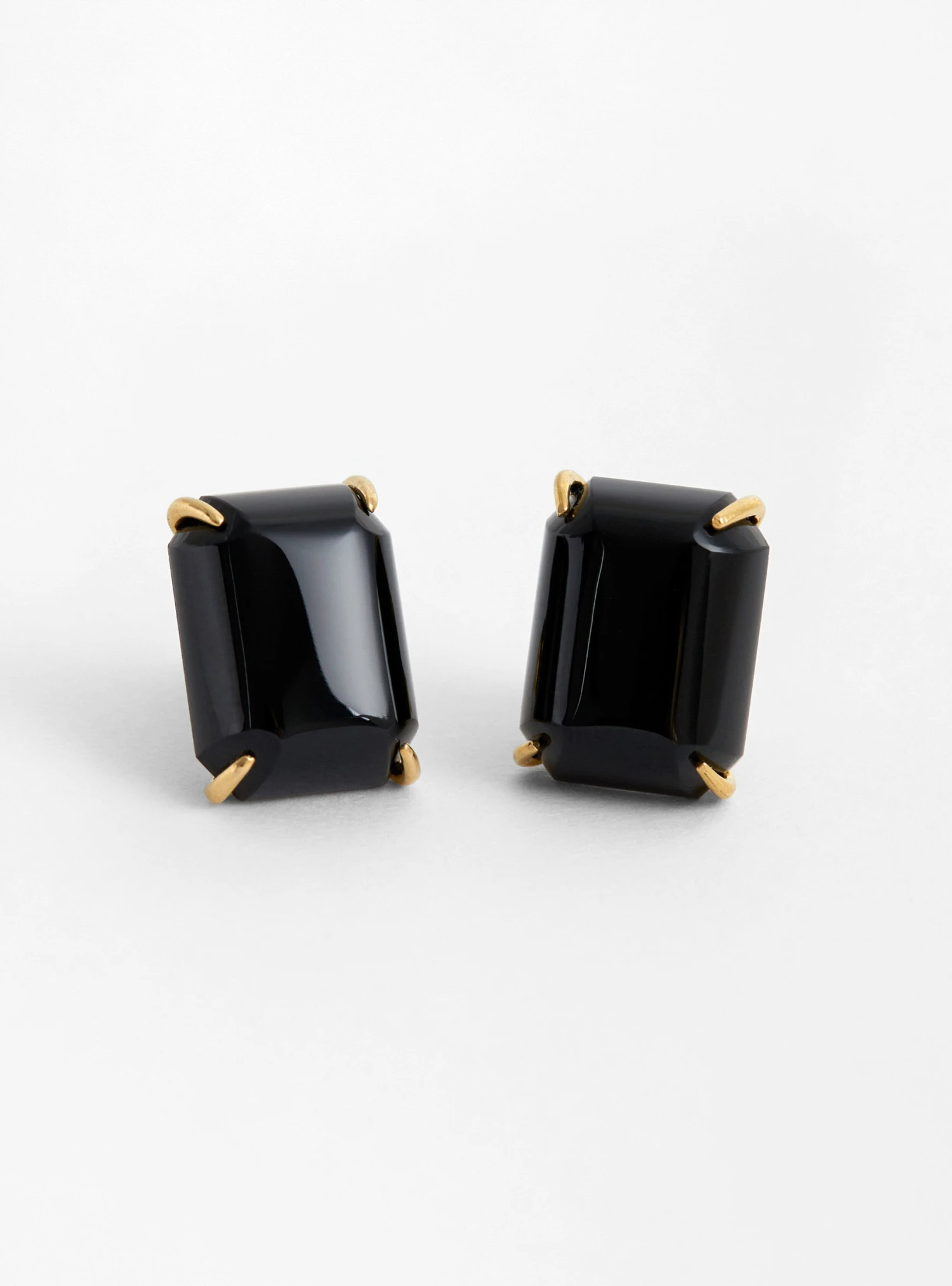 These black Candy earrings from BEATRIZ PALACIOS are handmade in Spain from gold-plated silver and embellished with square-cut onyx gemstones.