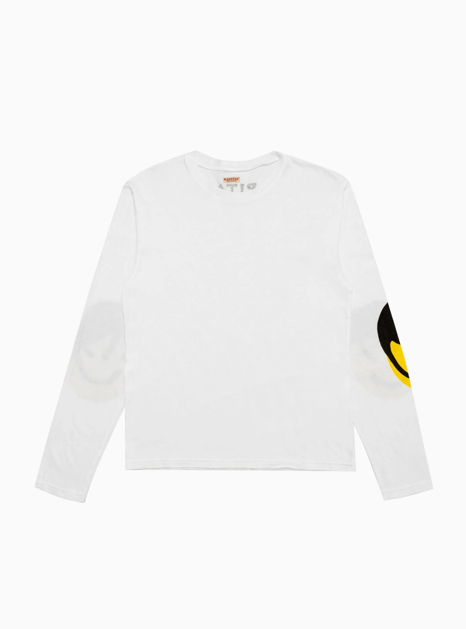 For the Catpital Patch Long Sleeve, cult Japanese brand Kapital gets playful and reworks its smiley face motif in tribute to our feline friends. This screen-printed graphic adorns the elbows while text print decorates the reverse.