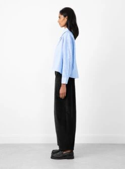 The Classic Cotton Shirt by Cordera arrives in a classic blue stripe. Made in Spain from a high-quality cotton blend, the shirt falls to an oversized and cropped fit. The lightweight, long sleeve shirt features a hidden button placket with a pearl button at the pointed collar. A button fastening on the cuffs and a back yoke finishes the shirt.
