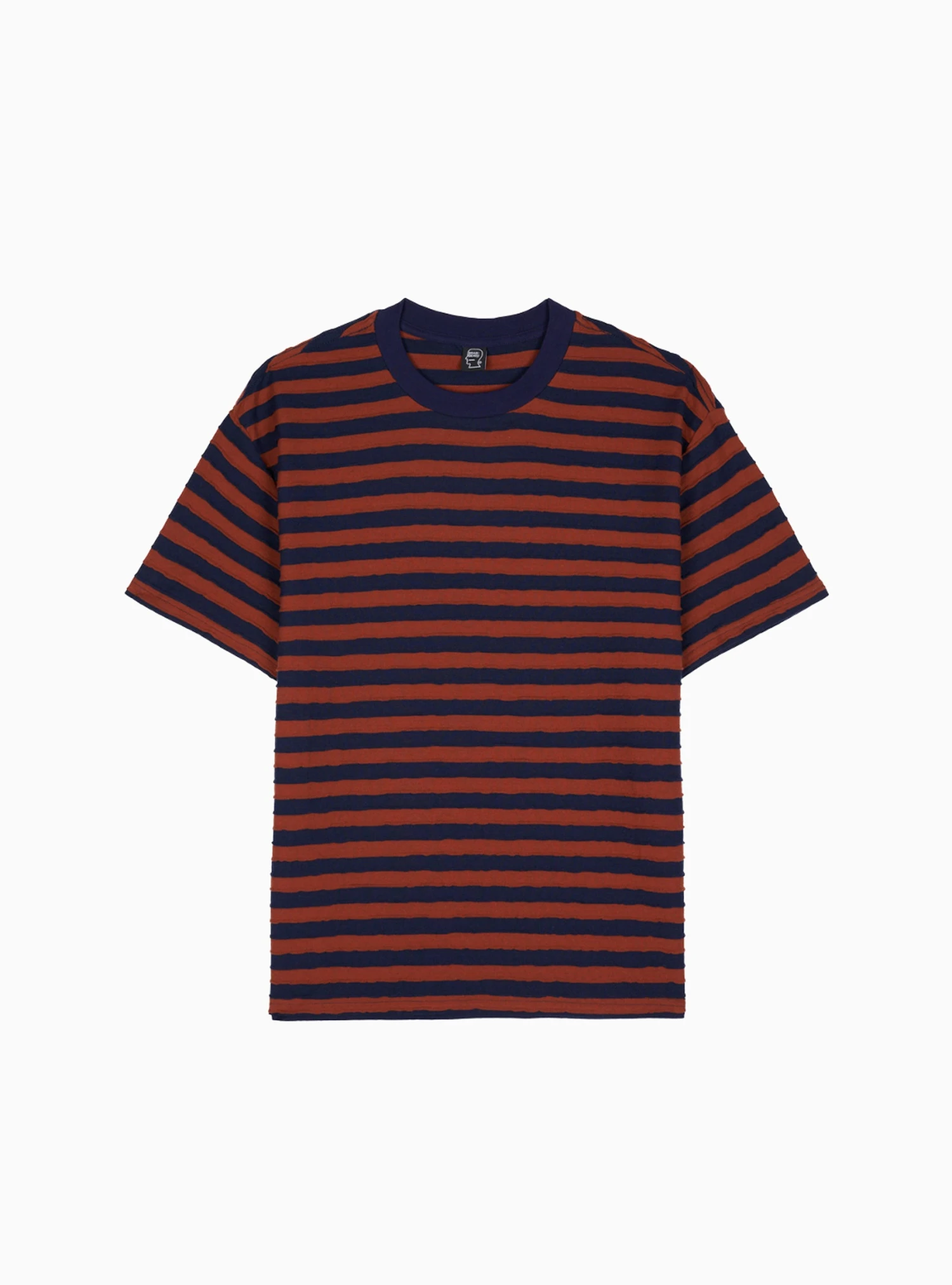 Featuring layered stripes, this navy and light-brown Denny Blaine T-shirt from Brain Dead’s Spring ’23 collection is cut from cotton jersey to a relaxed silhouette with dropped shoulders and a ribbed crewneck.