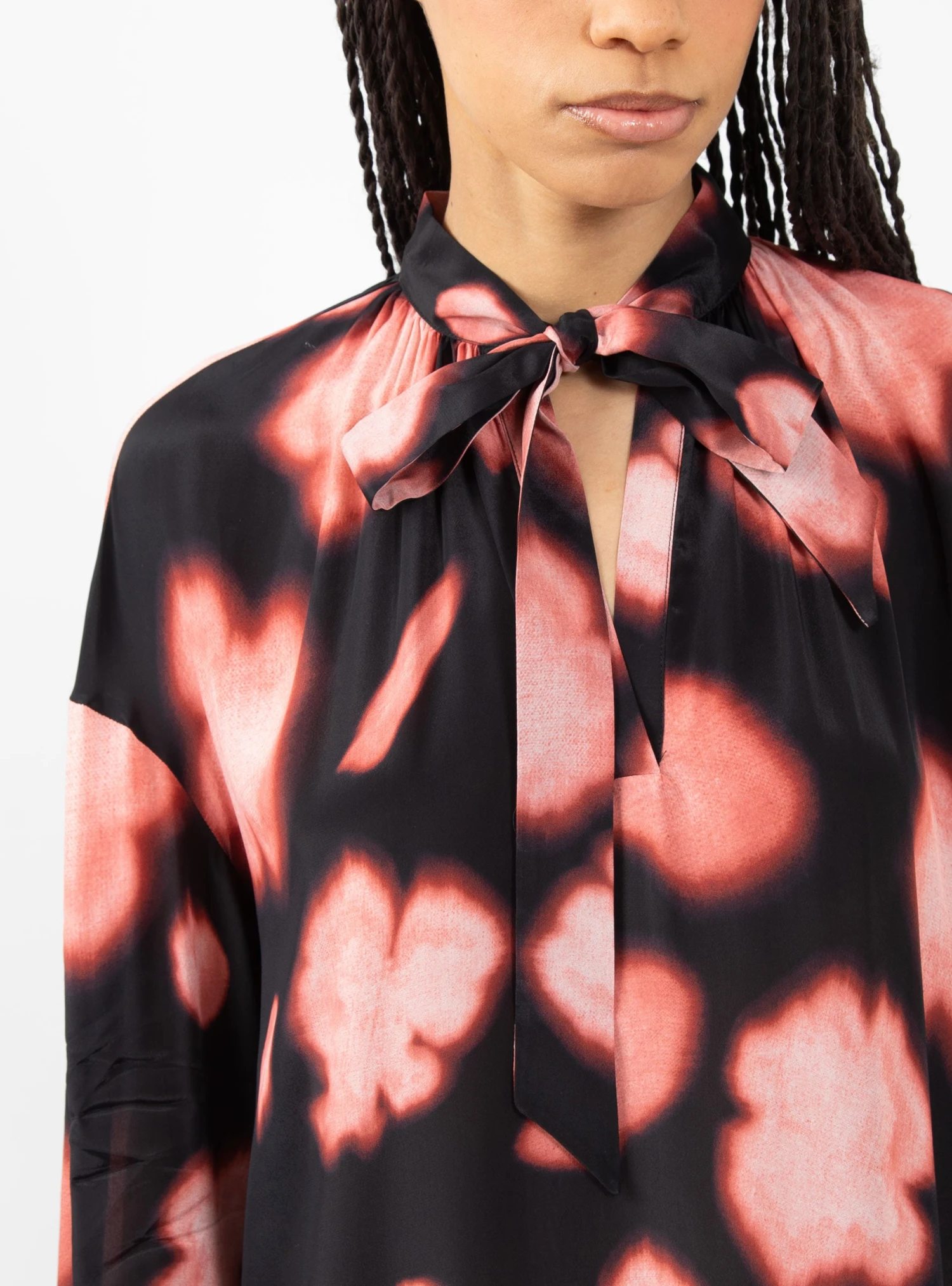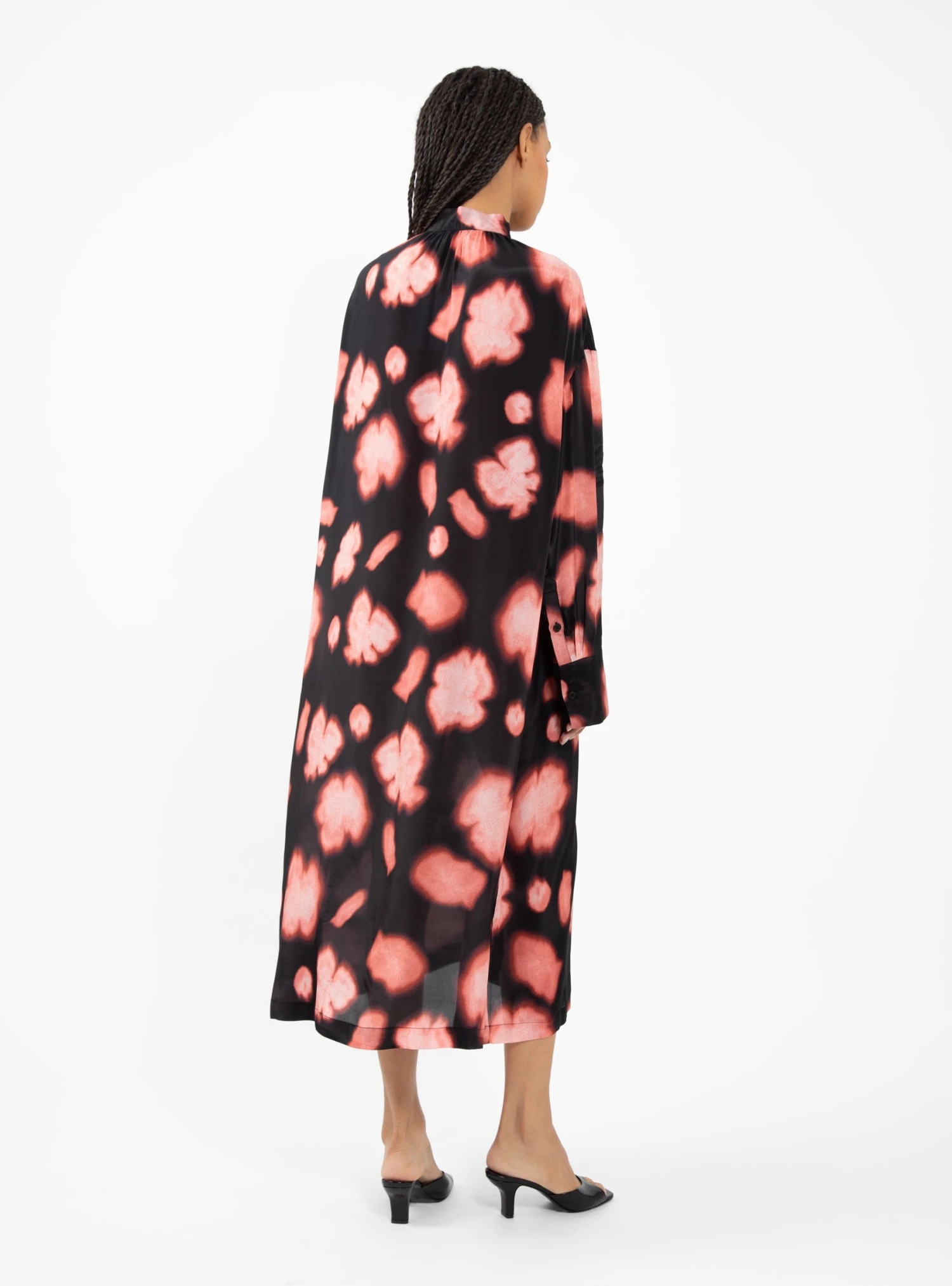 The Diana Dress by Christian Wijnants is crafted from a stretchy silk blend that trickles down to a shin swinging midi length and is detailed with dropped shoulders and a ruffled collar that can be made to stand by doing up the necktie.