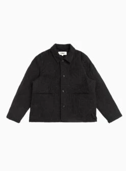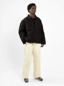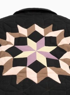 The black padded Diddy jacket from YMC is artfully constructed with geometric quilting, illuminated via contrast stitches. Made from cotton and flax-blend twill, it has a regular-fit silhouette, large patch pockets, and features star patchwork panelling at the back.