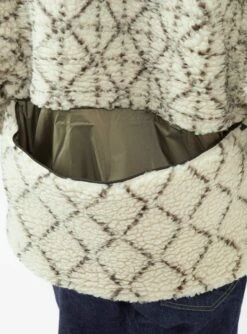 Made from a combination of sashiko-print boa fleece and nylon shell, this ecru and khaki-green reversible Do-Gi jacket from Kapital is cut to a relaxed silhouette with dropped shoulders, a funnel neck and a selection of zip pockets.