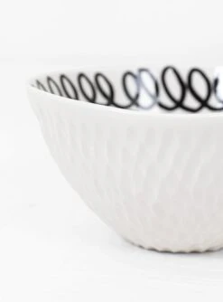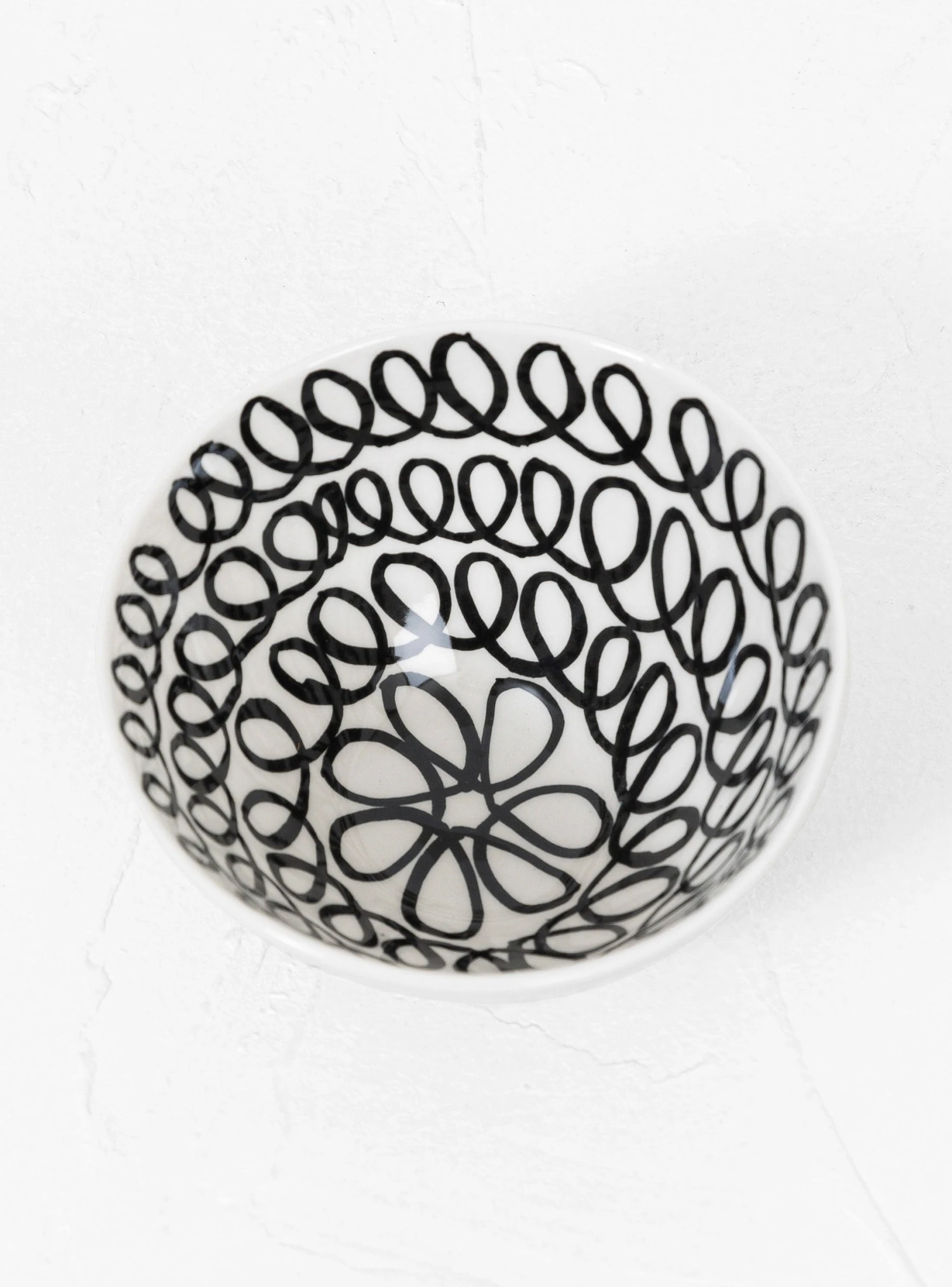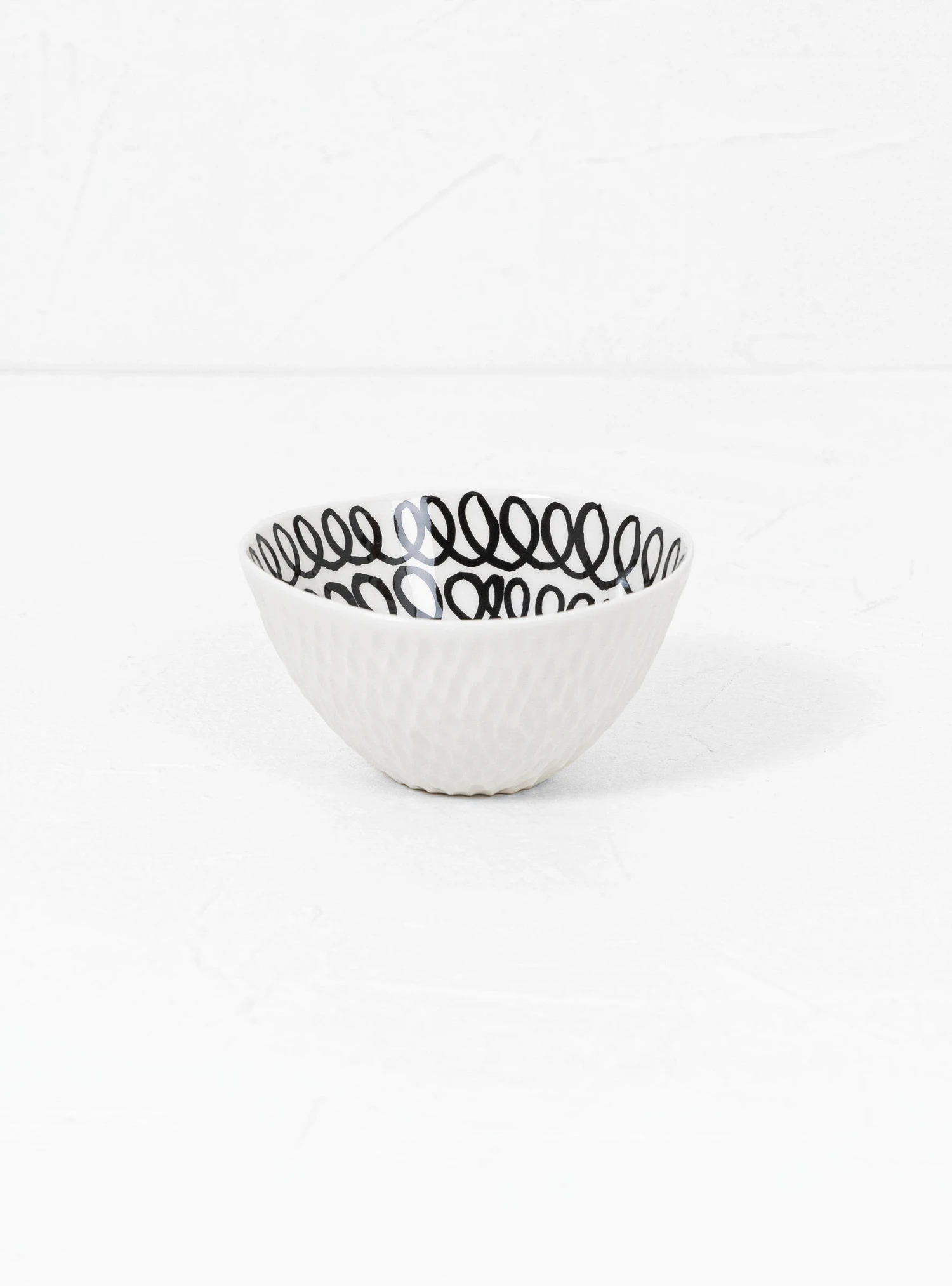 Crafted in the artisan’s rural Lithuanian studio, Aida Dirse’s Doodle Bowl n40 is formed from white clay, hand-painted with under-glaze pigments and finished with a softly dimpled outer and a clear glaze. This piece features a playful painted doodle design.Â