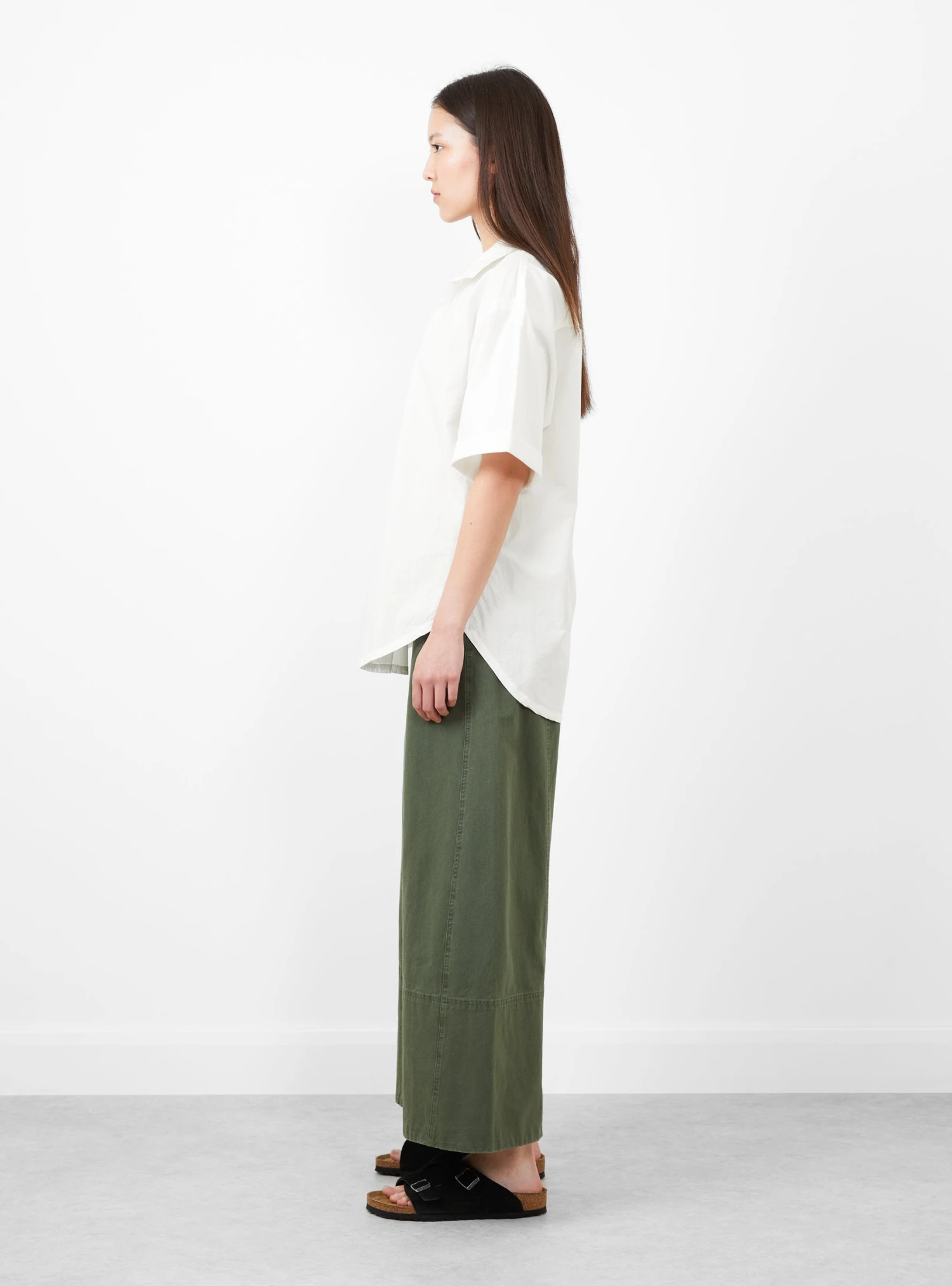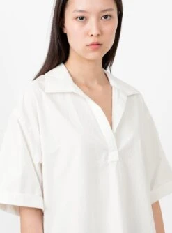 The Easy Pop-Over Henley in cream from Apiece Apart, crafted in India from 100% Organic Cotton. Featuring a collared open neck-line, a straight silhouette, shiirtail hem, side seam slits and short sleeve with the option to cuff. Â