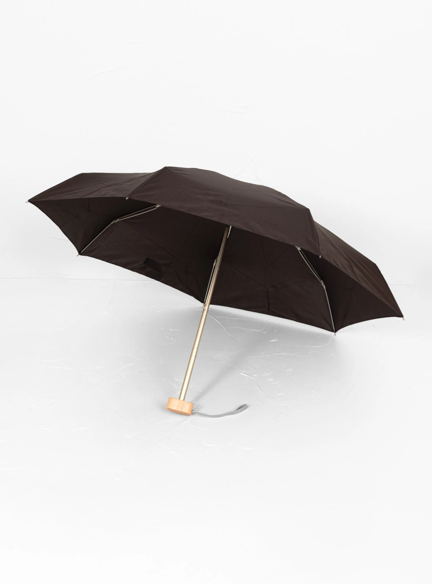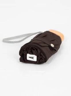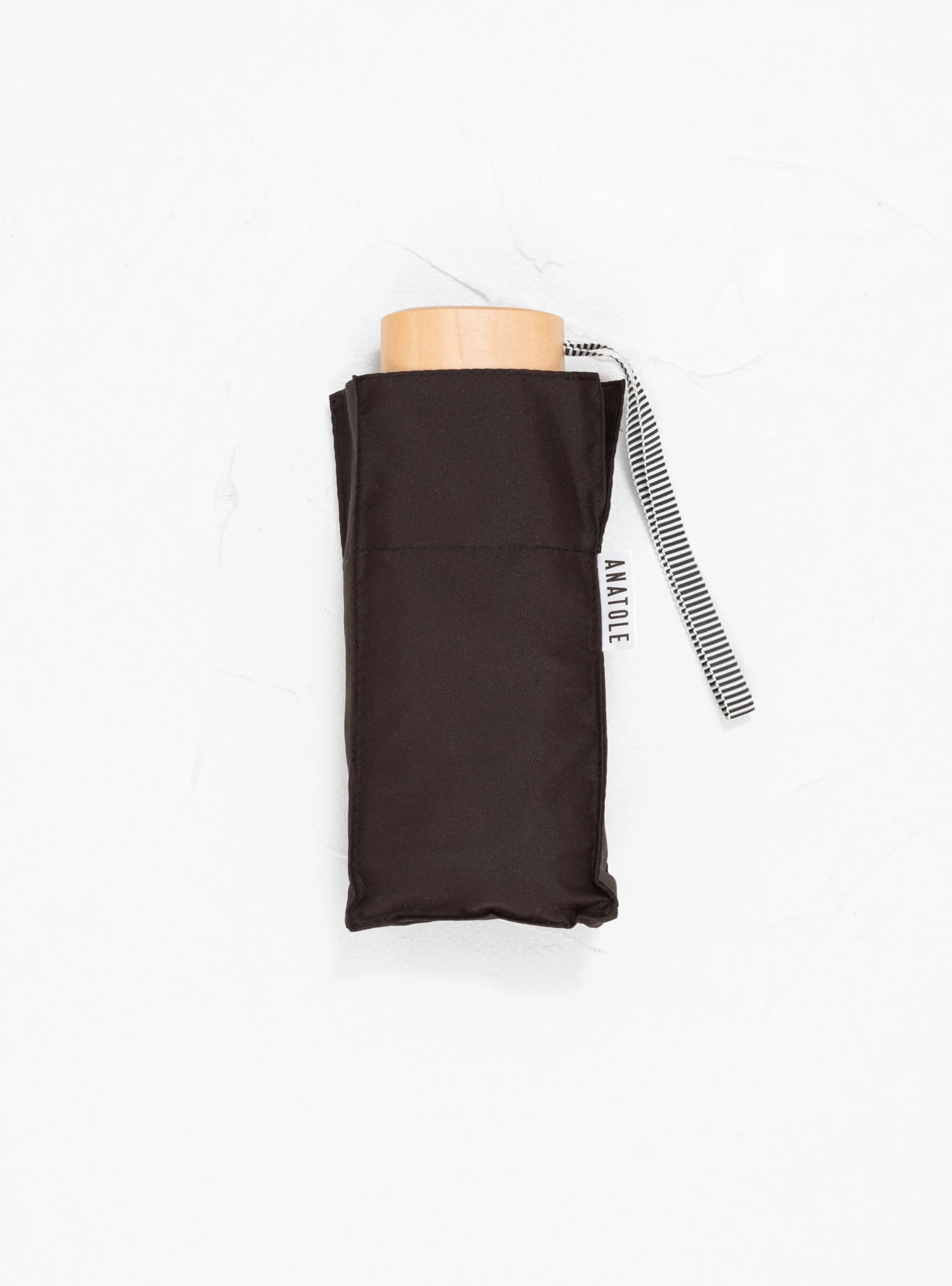 This dark chocolate-brown Edwige umbrella from Anatole is small in size yet mighty in construction. Made with fibreglass ribs, which are reinforced with carbon, it features a maple wood handle and a grosgrain strap.
