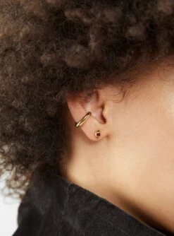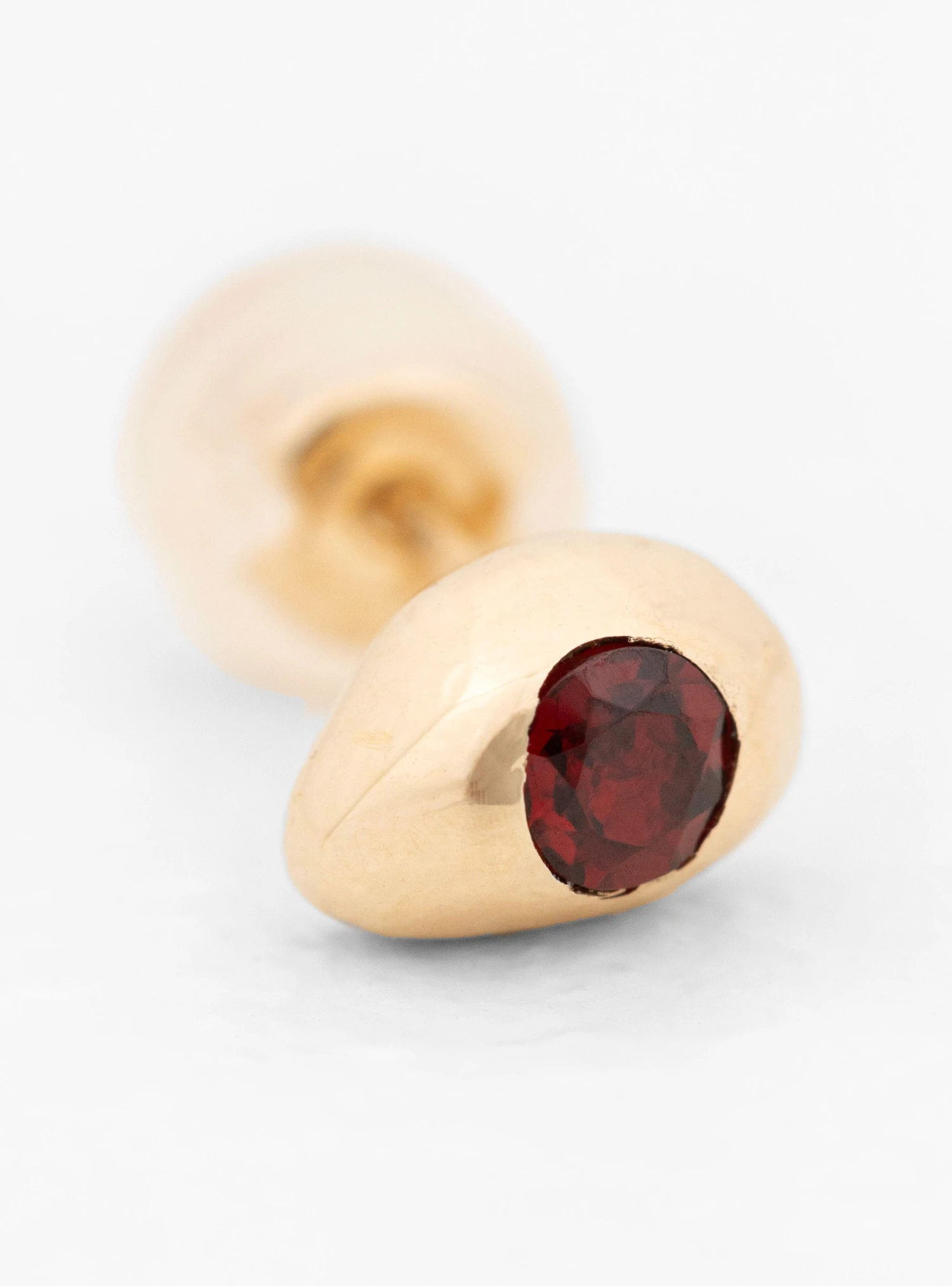 Embellished with a garnet gemstone, this Chamelle stud earring from Faris is made by hand from 14kt gold at the label’s Seattle studio.