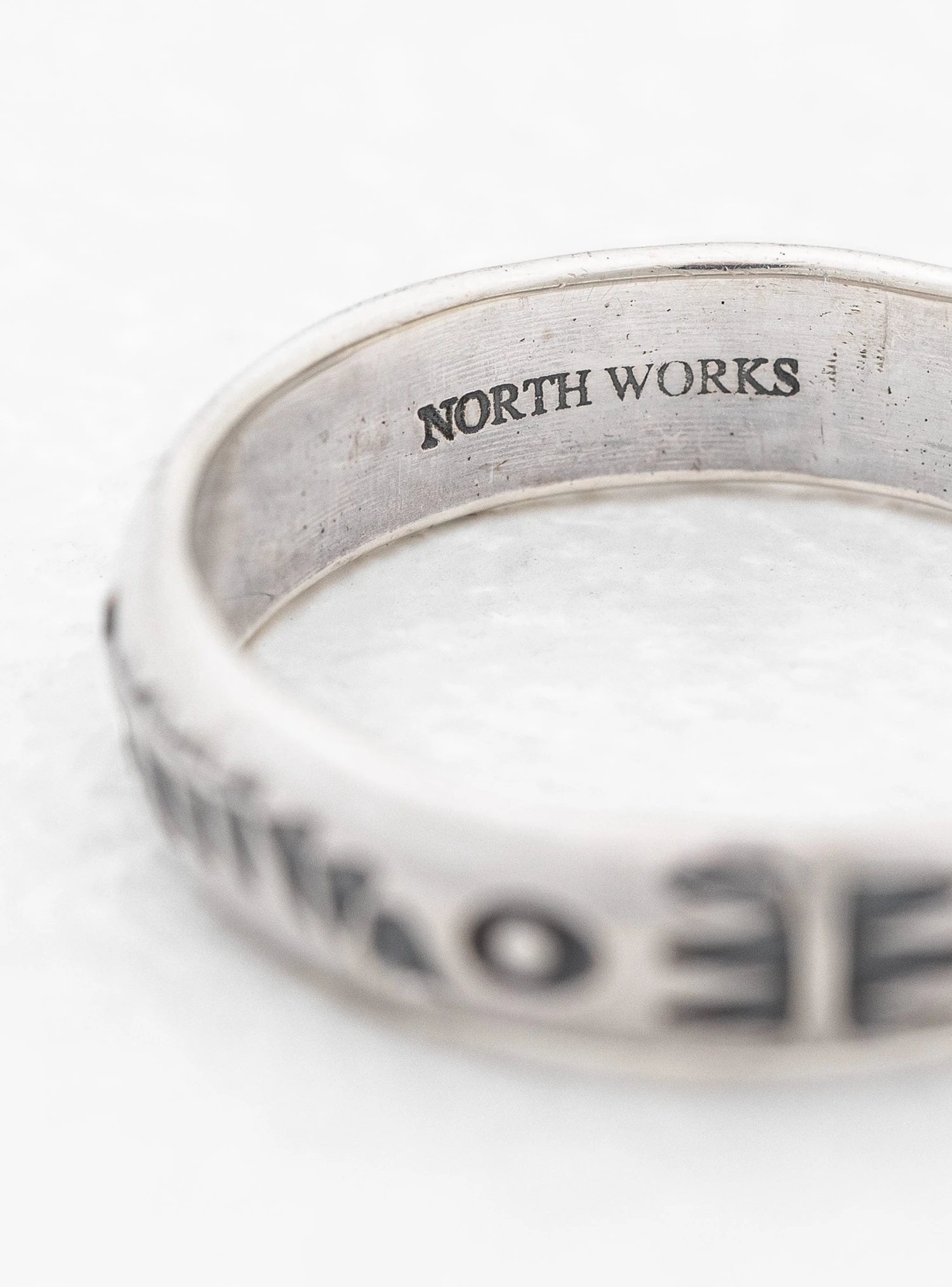 This ring from NORTH WORKS is made by hand in Japan from 925 sterling silver and finished with geometric engraving.
