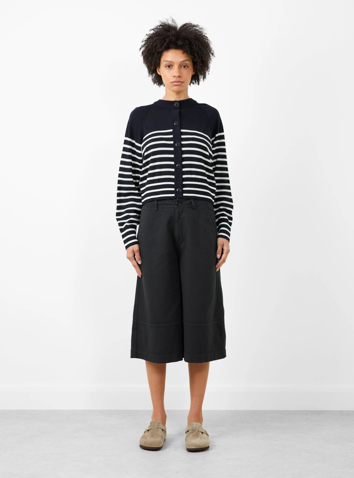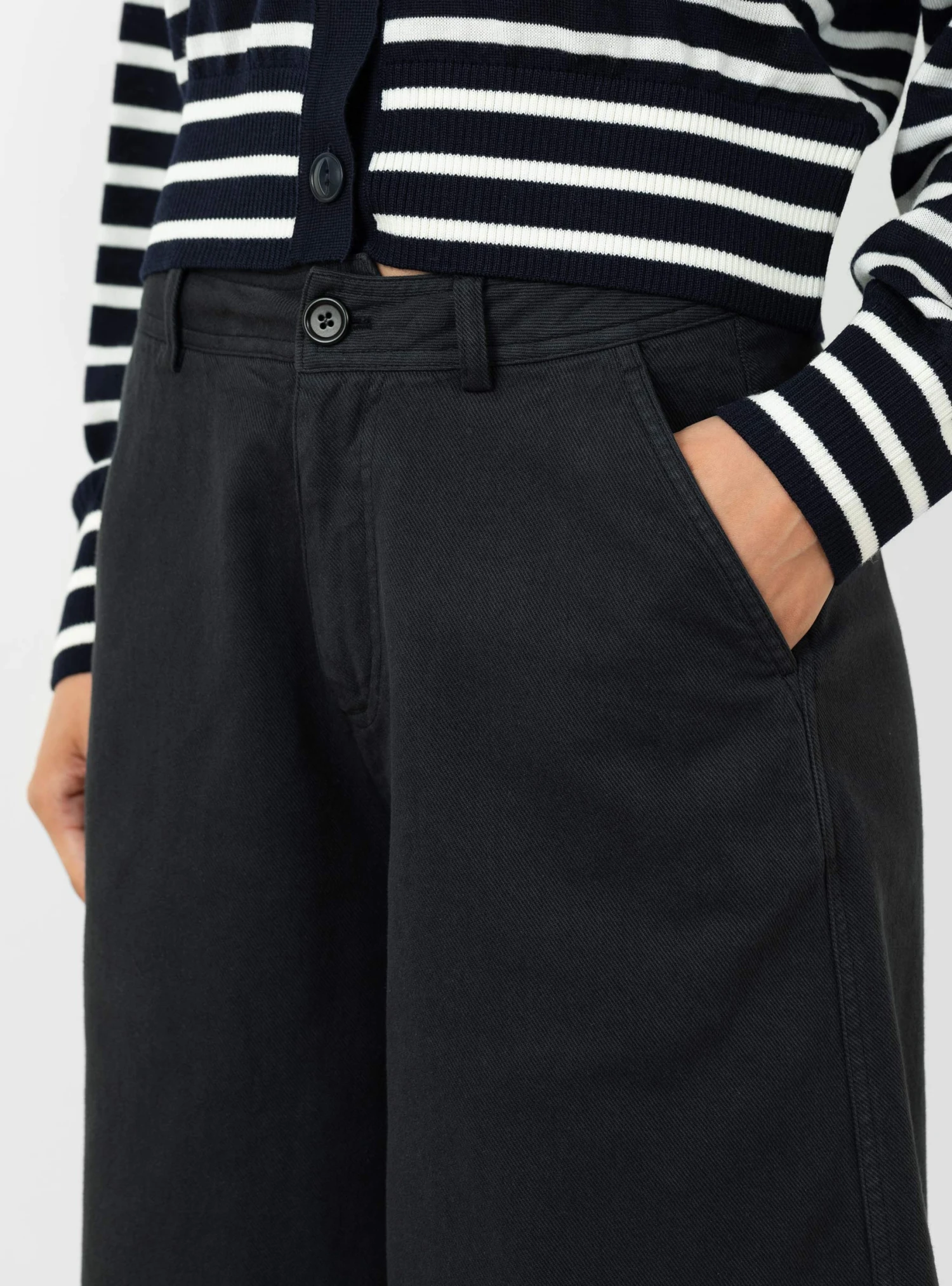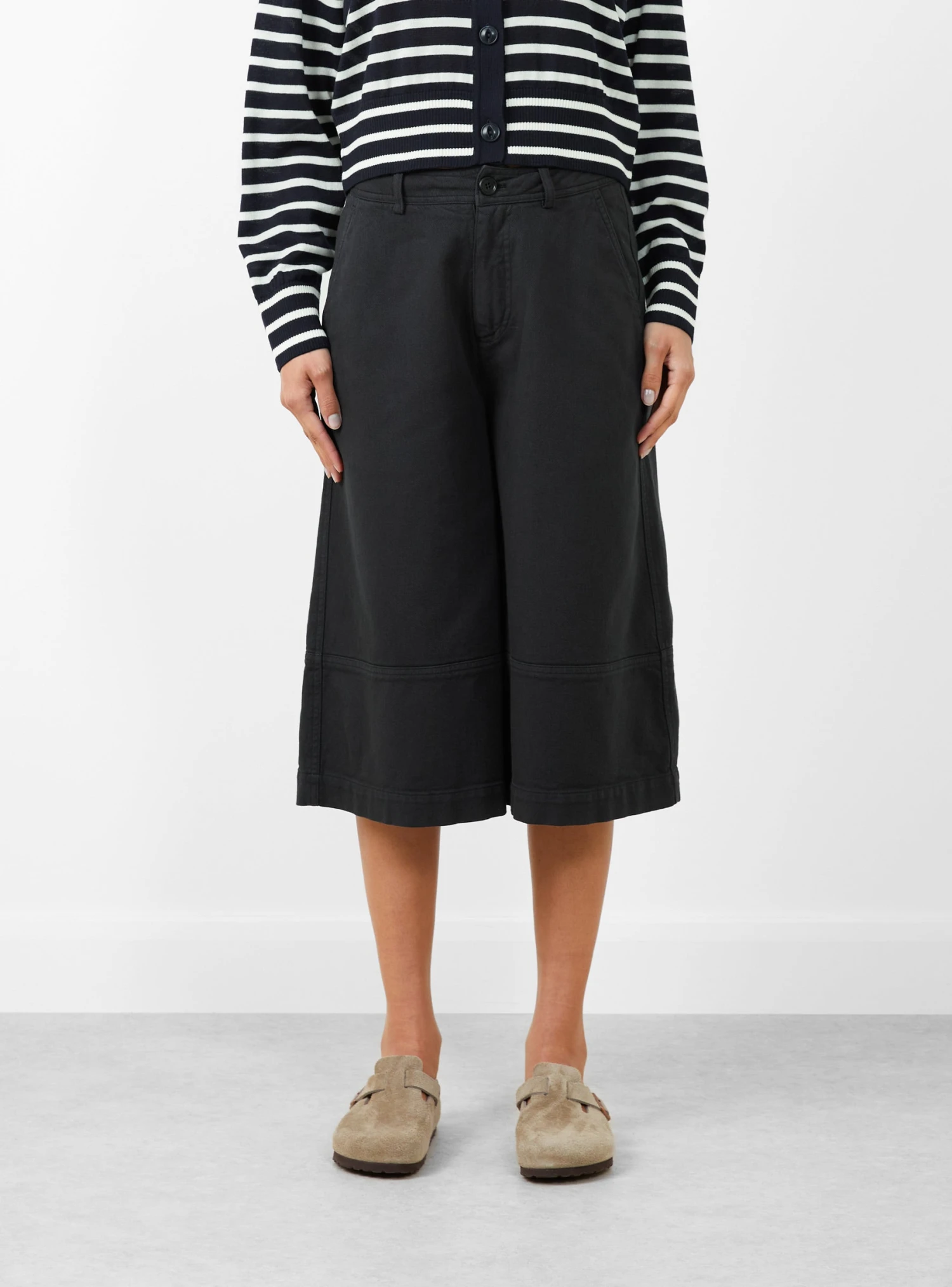 The Ezy Trouser from YMC arrive in a staple black. Made from an organic cotton blend, the culotte style trouser-shorts fall to a relaxed fit with a wide leg and stop just below the knees. Panel construction toward the cuffs give the bottoms their shape and two-side pockets provide a clean finish.