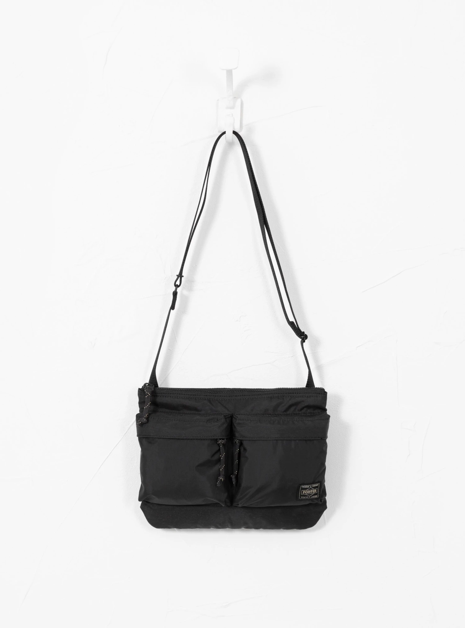 The black FORCE shoulder bag from Porter Yoshida & Co. takes inspiration from MA-1 flight jackets, with the bold orange lining being the most obvious reference. Made in Japan from padded nylon twill, it features two zipped outer pockets and suspends from a long, adjustable strap that can also be styled across the body.