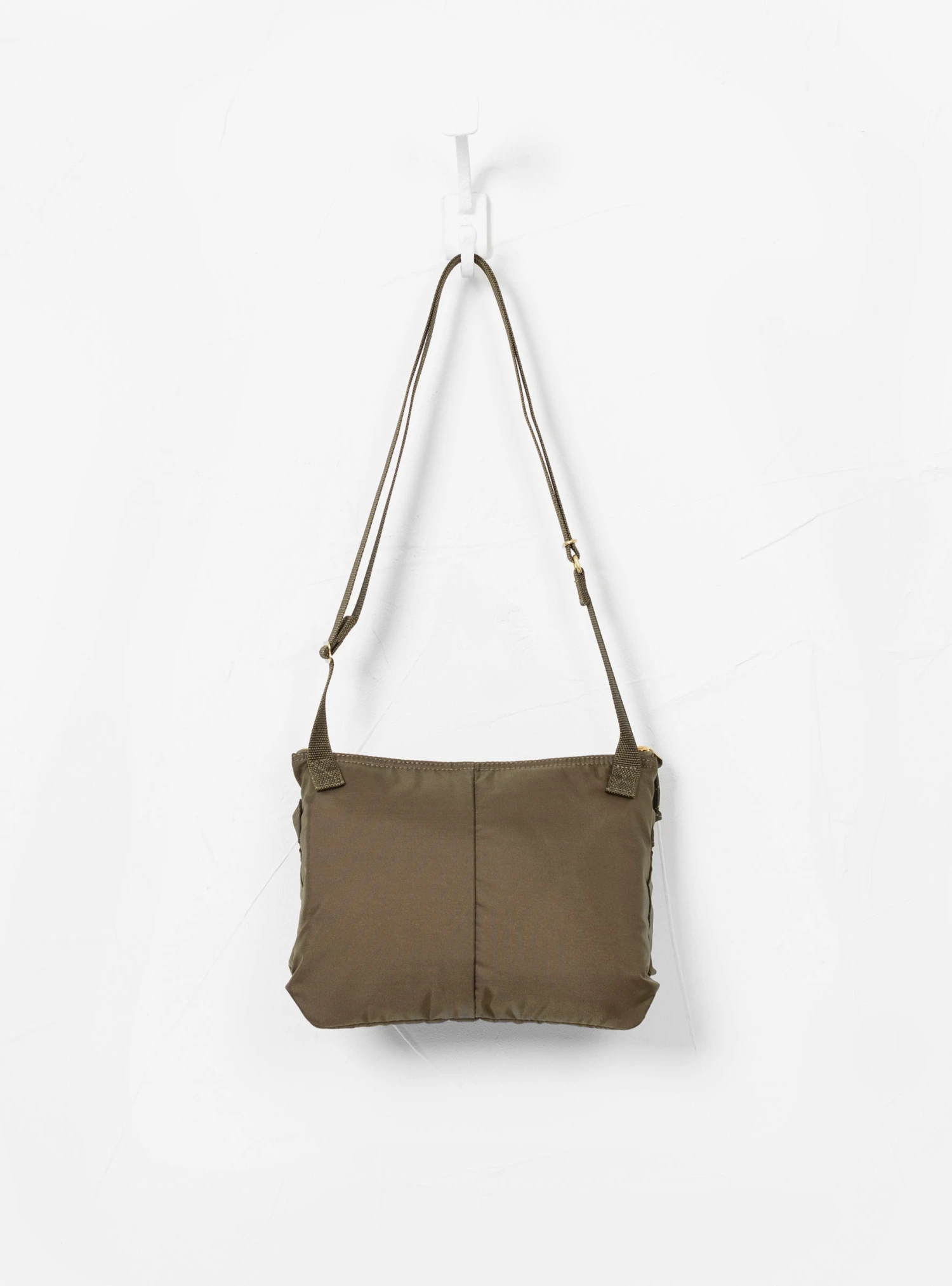 The FORCE Shoulder Bag by Porter Yoshida & Co. is a military-inspired piece crafted from nylon oxford knit with acrylic coating for durability. The main compartment opens with a dual zip closure, to reveal two internal patch pockets, one internal zip pocket and a removable, internal snap flap pocket. The outside features two 3D pockets allowing for easy access and is finished with an adjustable and detachable nylon tape strap.