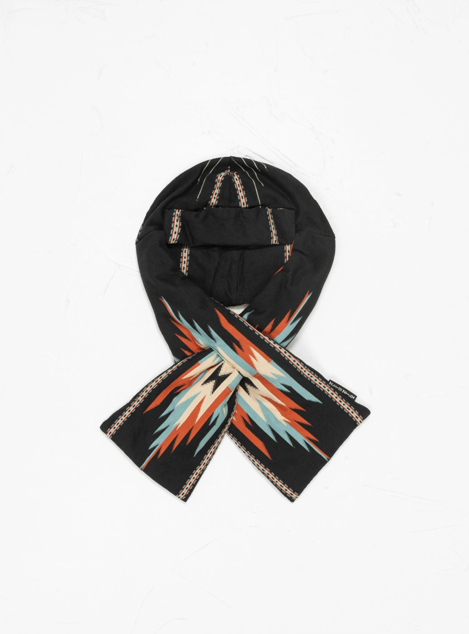 Featuring a traditional Ortega print, this black Gale scarf from Kapital is made in Japan from cotton jersey and secures snuggly around the neck via a slotted fastening.