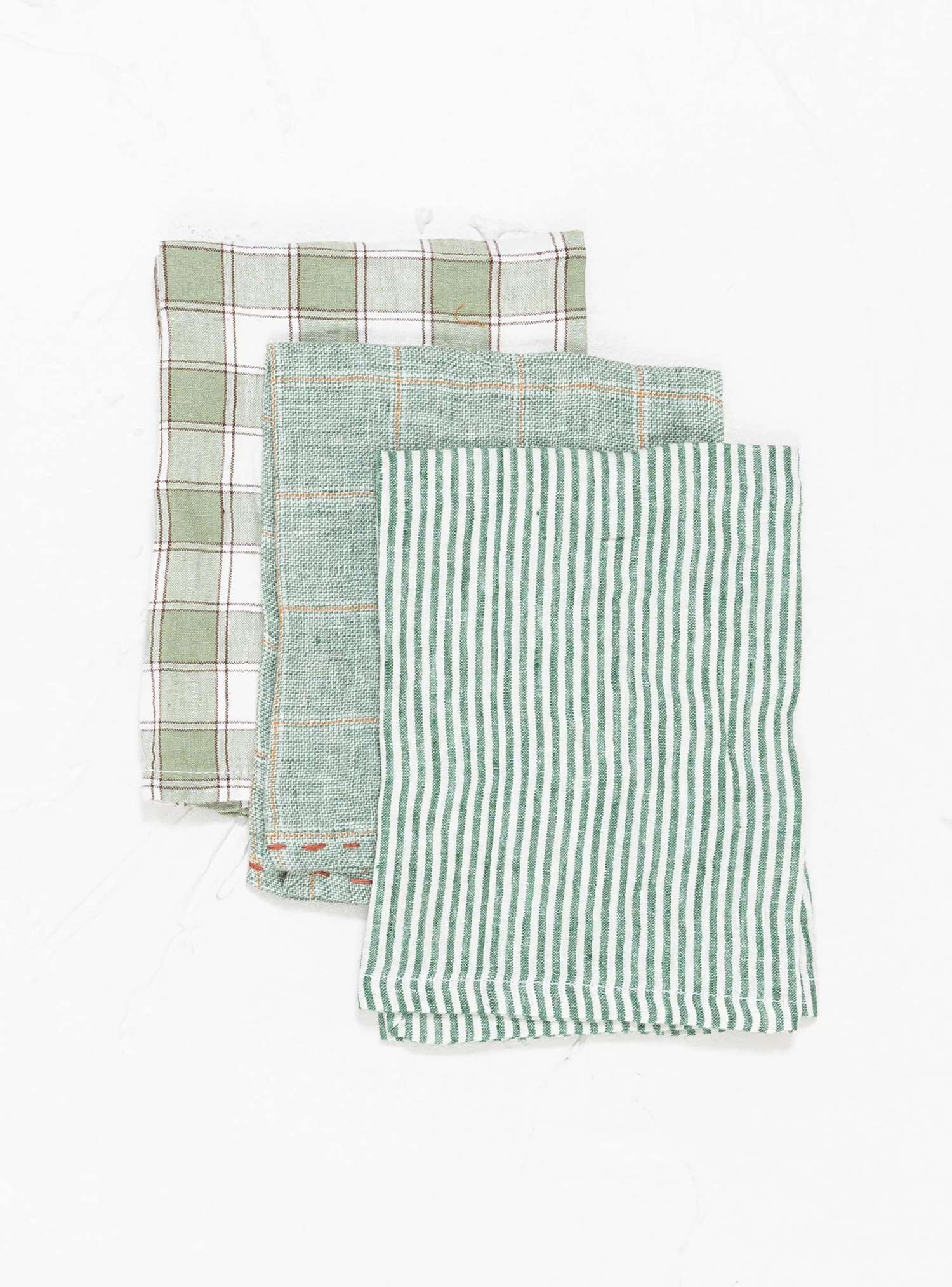 The Genova Napkin set from Pomax comes in three shades of green, each with a different pattern. Made in India from French linen, each napkin is finished with contrast stitching at the border.