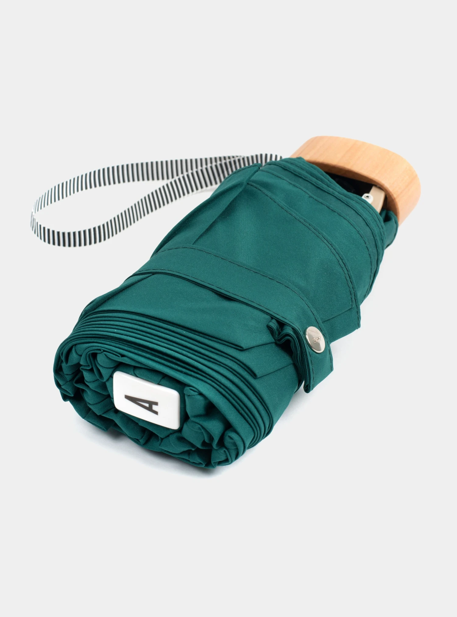 This forest-green Gustave umbrella from Anatole is small in size yet mighty in construction. Made with fibreglass ribs, which are reinforced with carbon, it features a maple wood handle and a grosgrain strap.