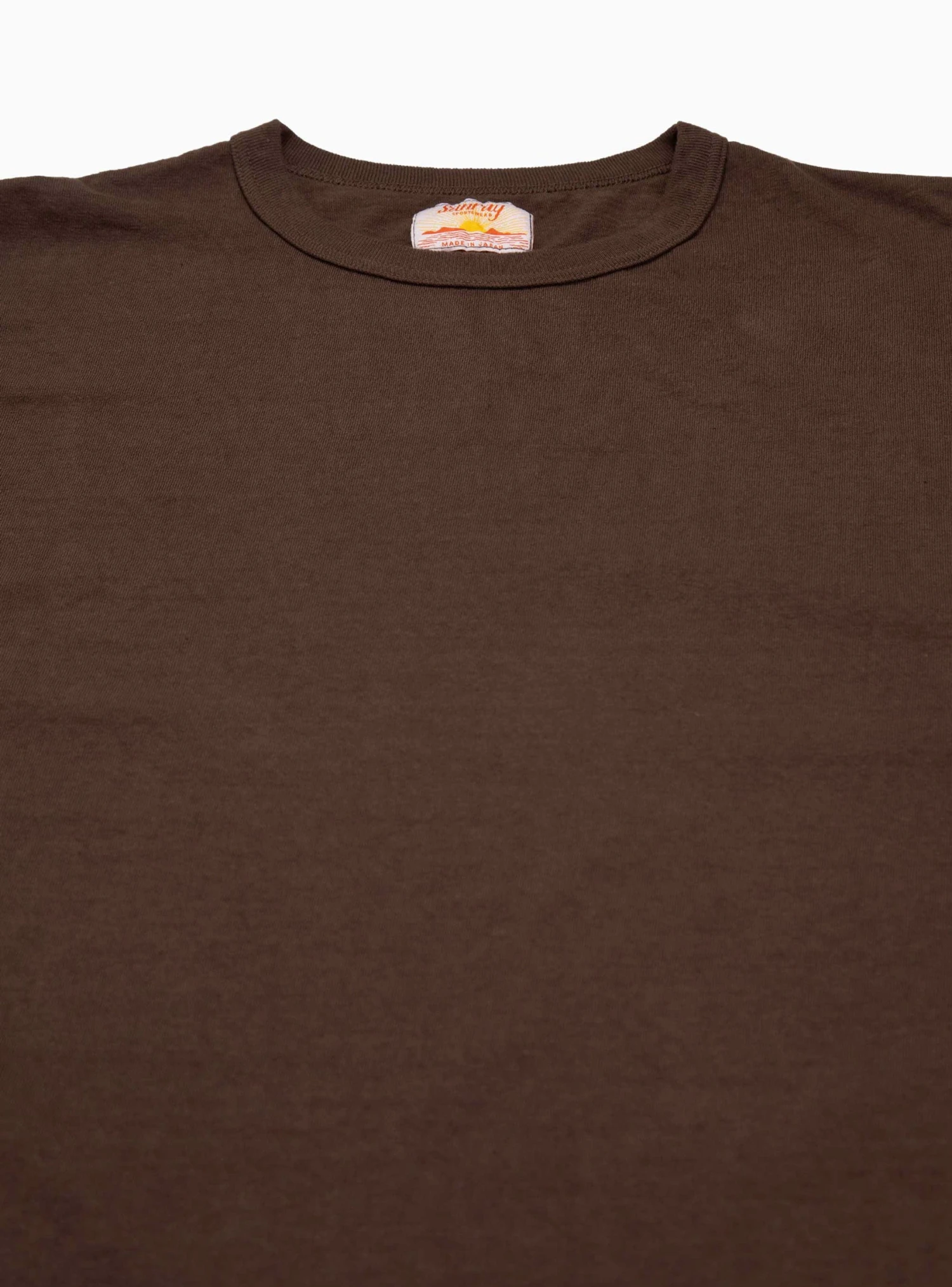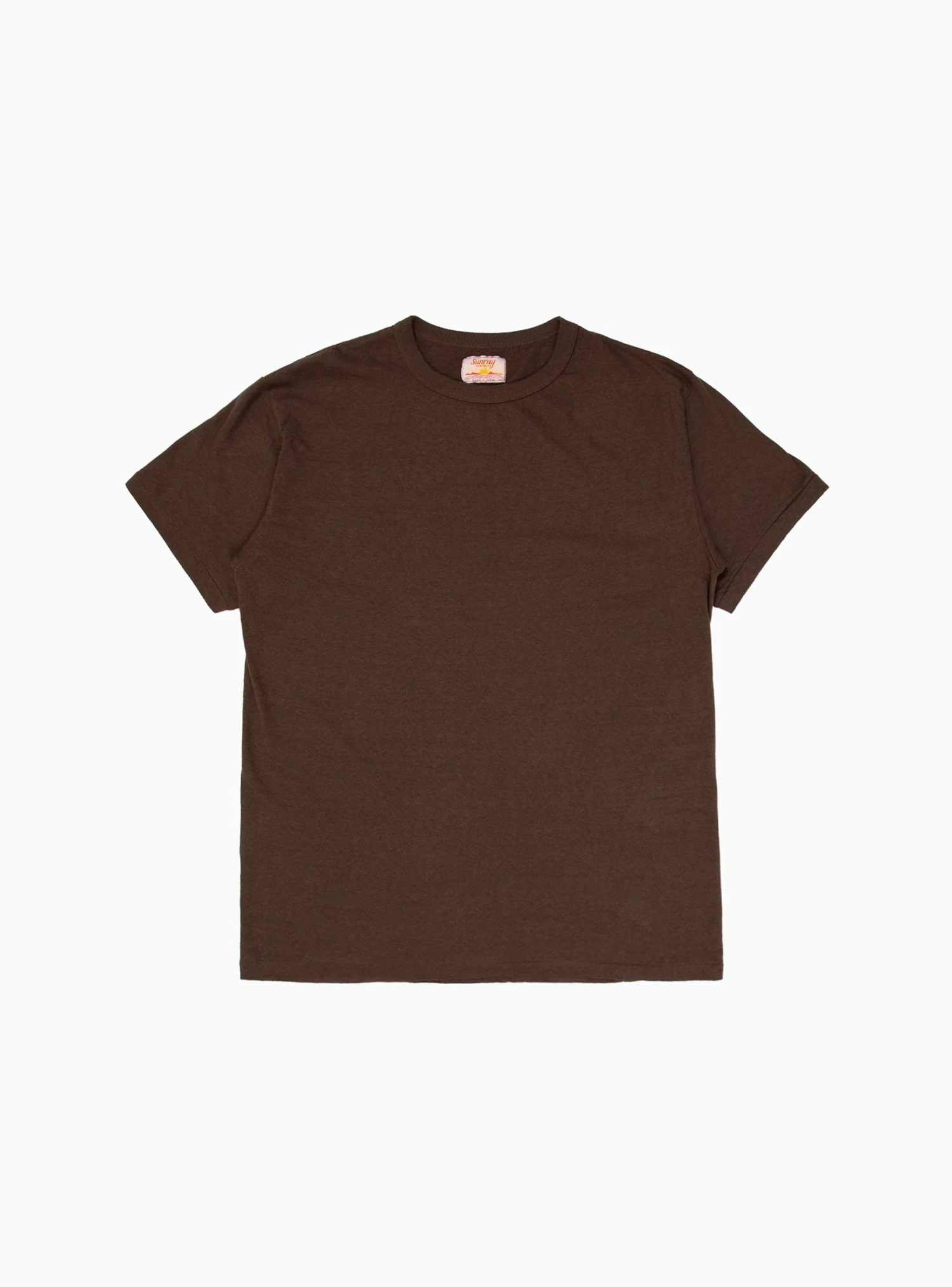 Made in Japan using one of the last two antique loopwheel knitting machines, which avoids the need for side seams and creates less tension on the fabric, this seal-brown Haleiwa T-shirt from Sunray Sportwear is cut to a classic, yet slightly boxy, silhouette with a crewneck.