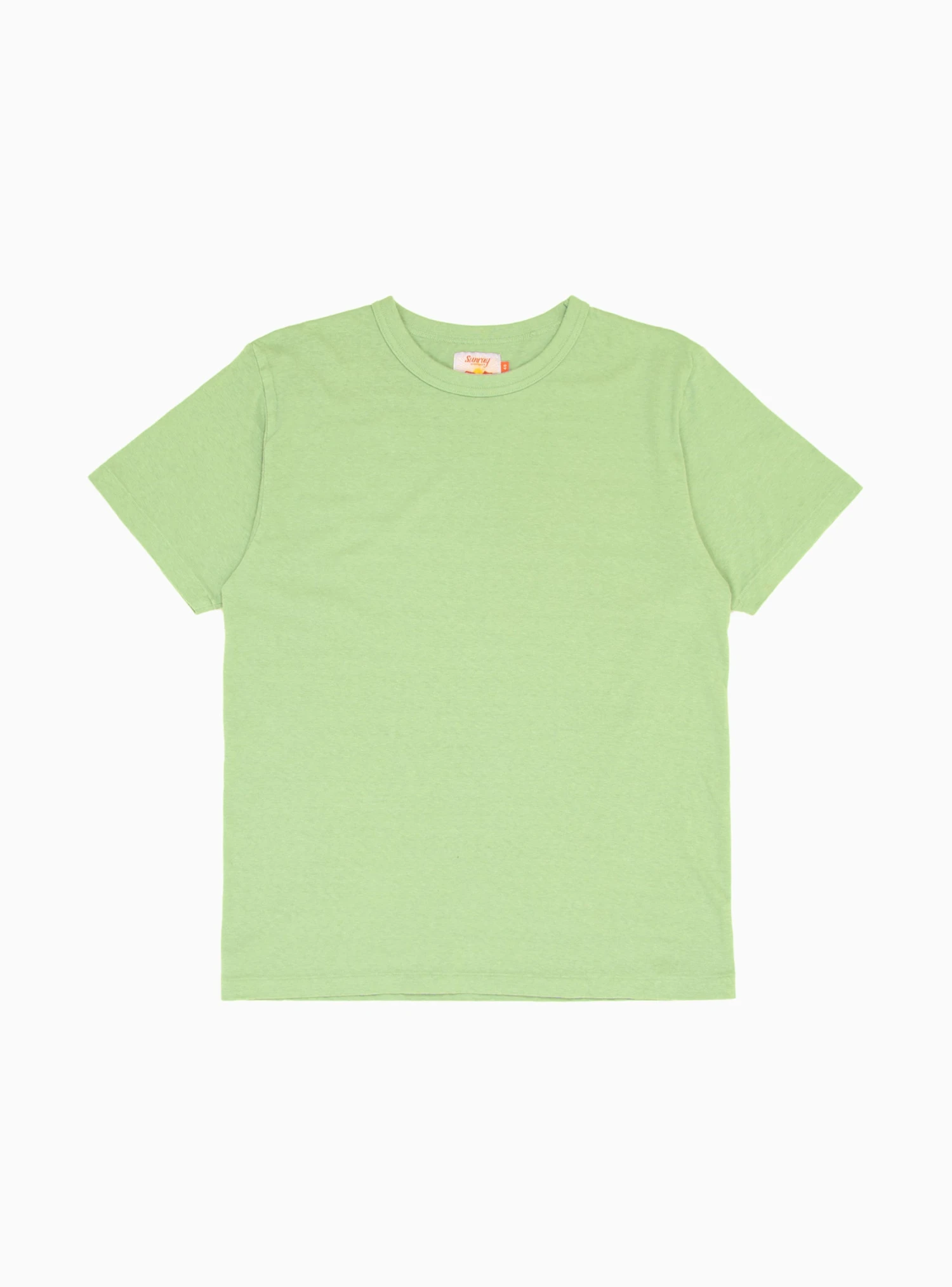 Made in Japan using one of the last two antique loopwheel knitting machines, which avoids the need for side seams and creates less tension on the fabric, this tendril-green Haleiwa T-shirt from Sunray Sportwear is cut to a classic, yet slightly boxy, silhouette with a crewneck.