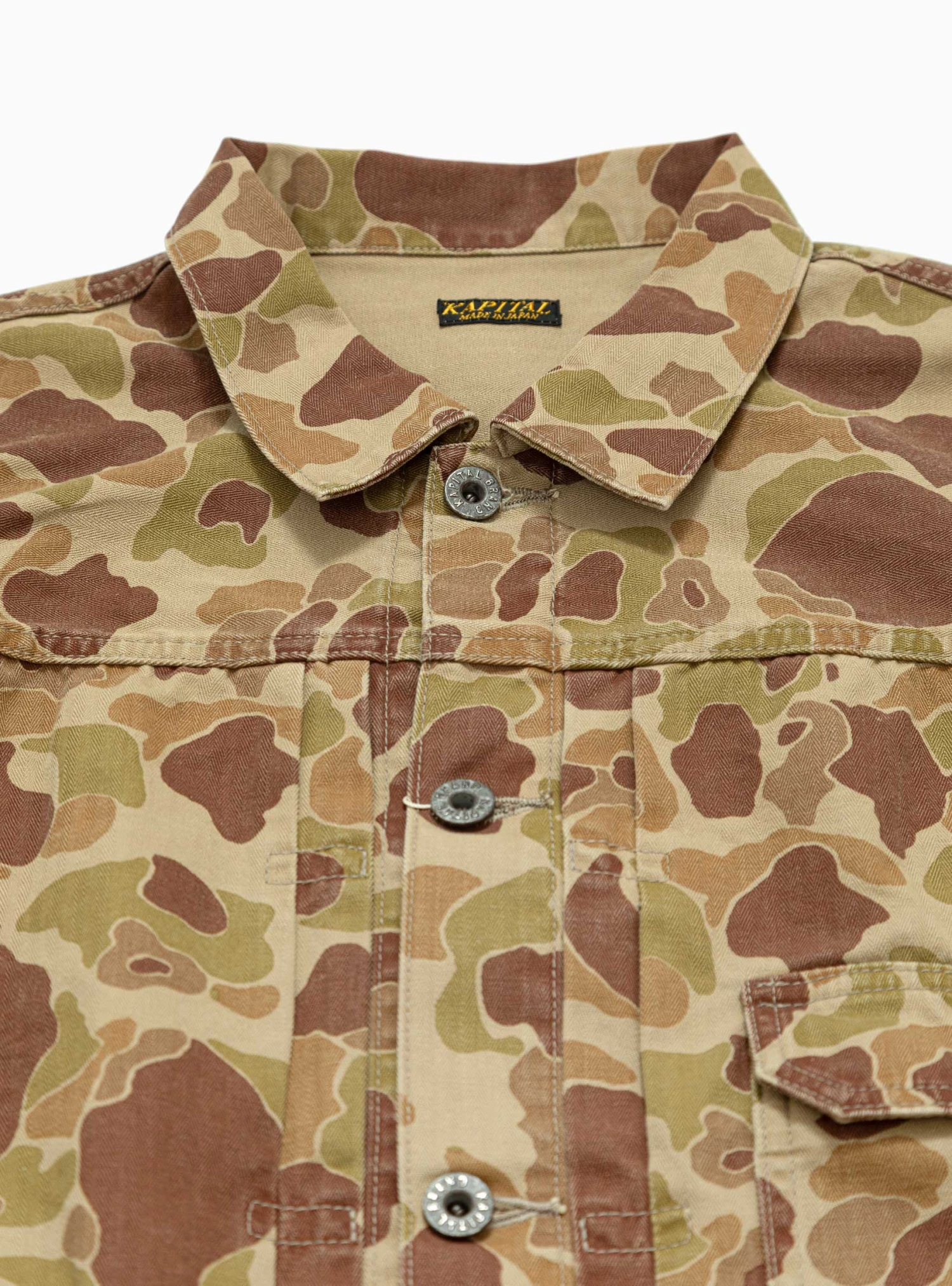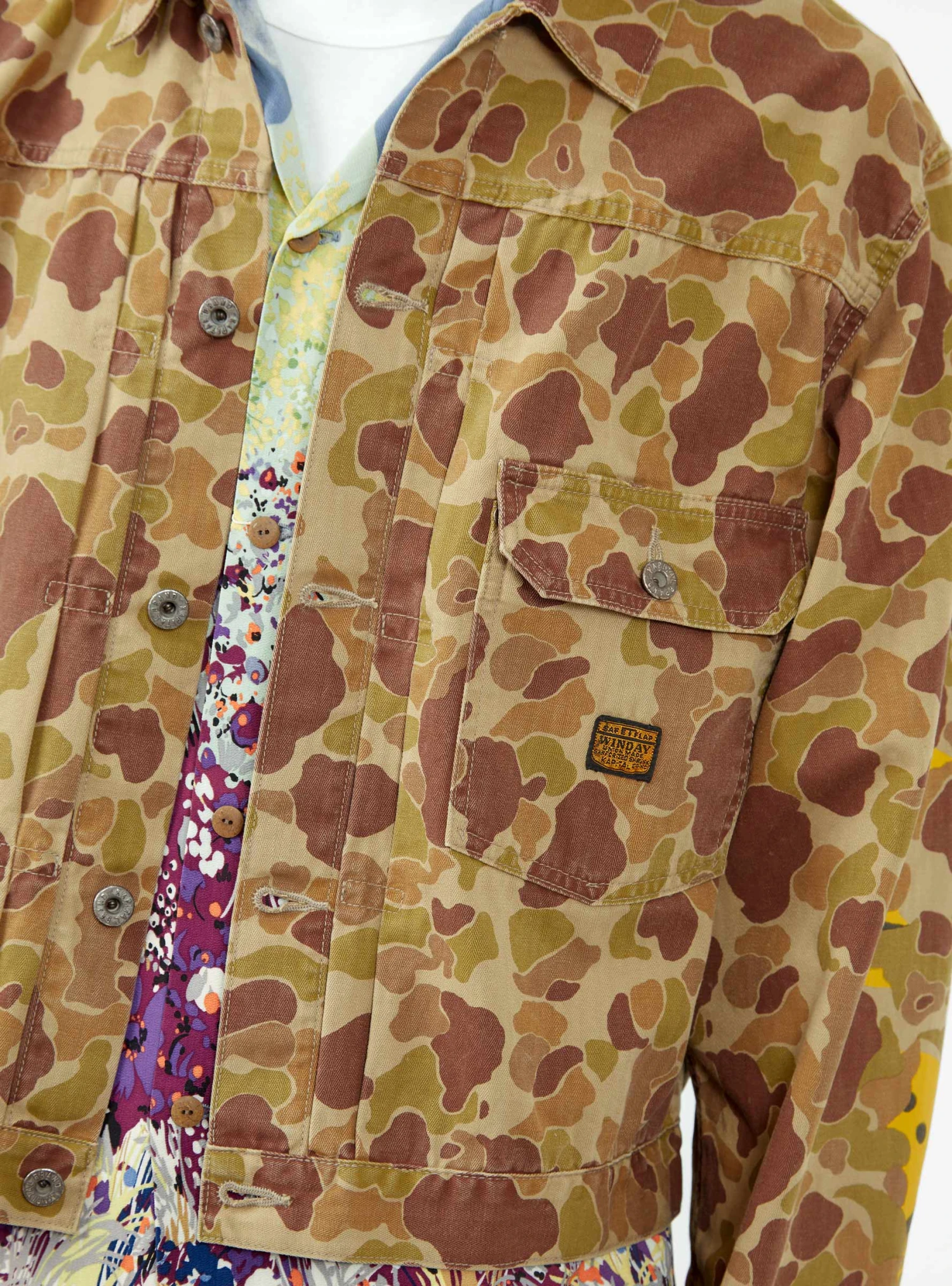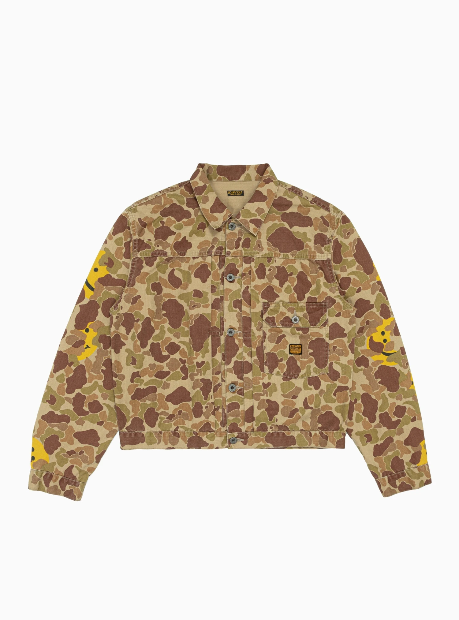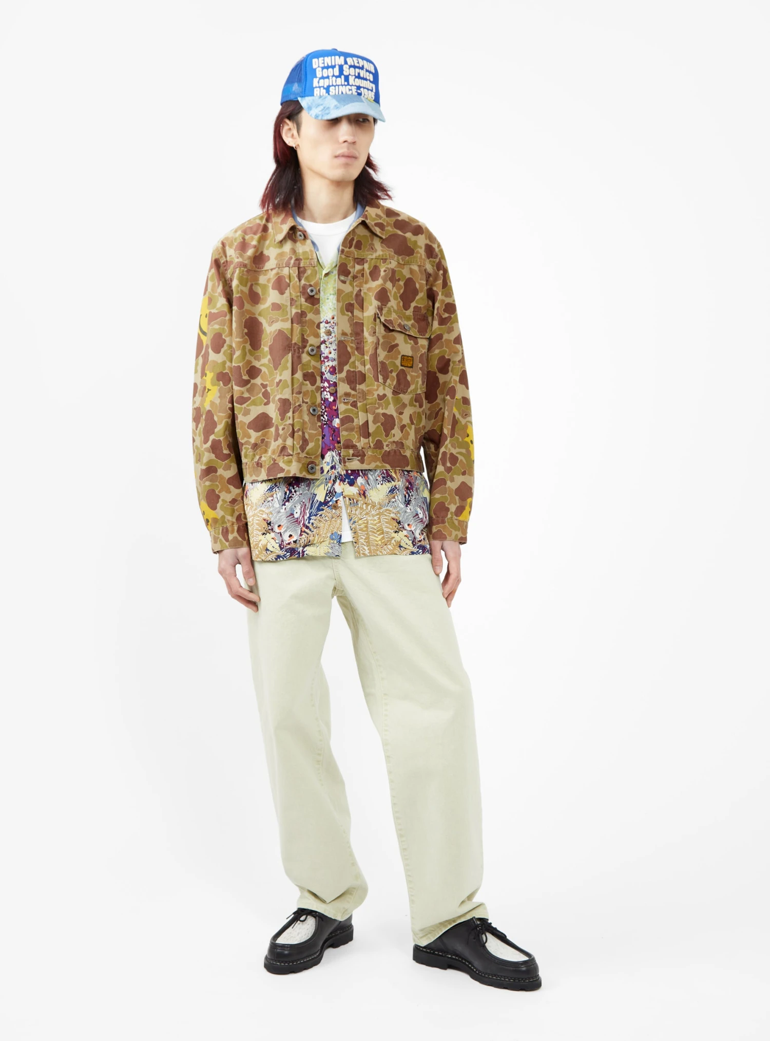 The Happy Peek-a-Boo Camo Jacket from Japanese streetwear icons Kapital features the brand’s ‘smiley’ logo hidden amongst a graphic camo print. The cropped jacket comes with subtly distressed detailing throughout the body as well as on its metal buttons and hardware.