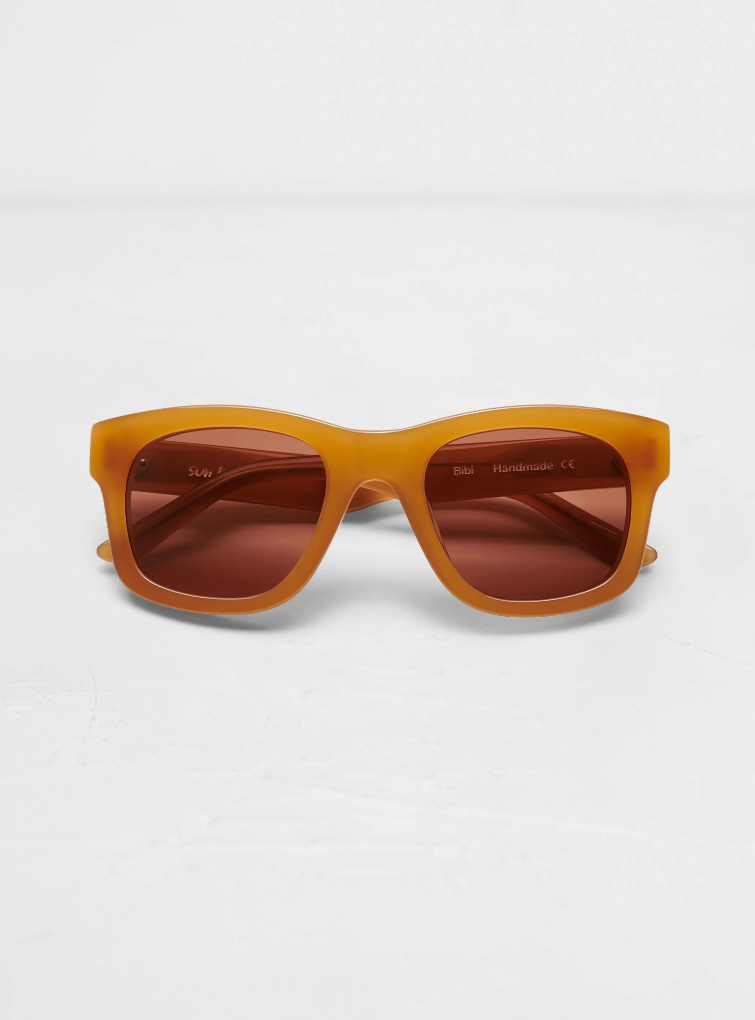 The Harold Sunglasses by Sun Buddies are a semi transparent, thinner wayfarer inspired frame in a glowing orange, handmade of Italian acetate. The Carl Zeiss lenses that protect from UV light and come in an orange faux leather case.