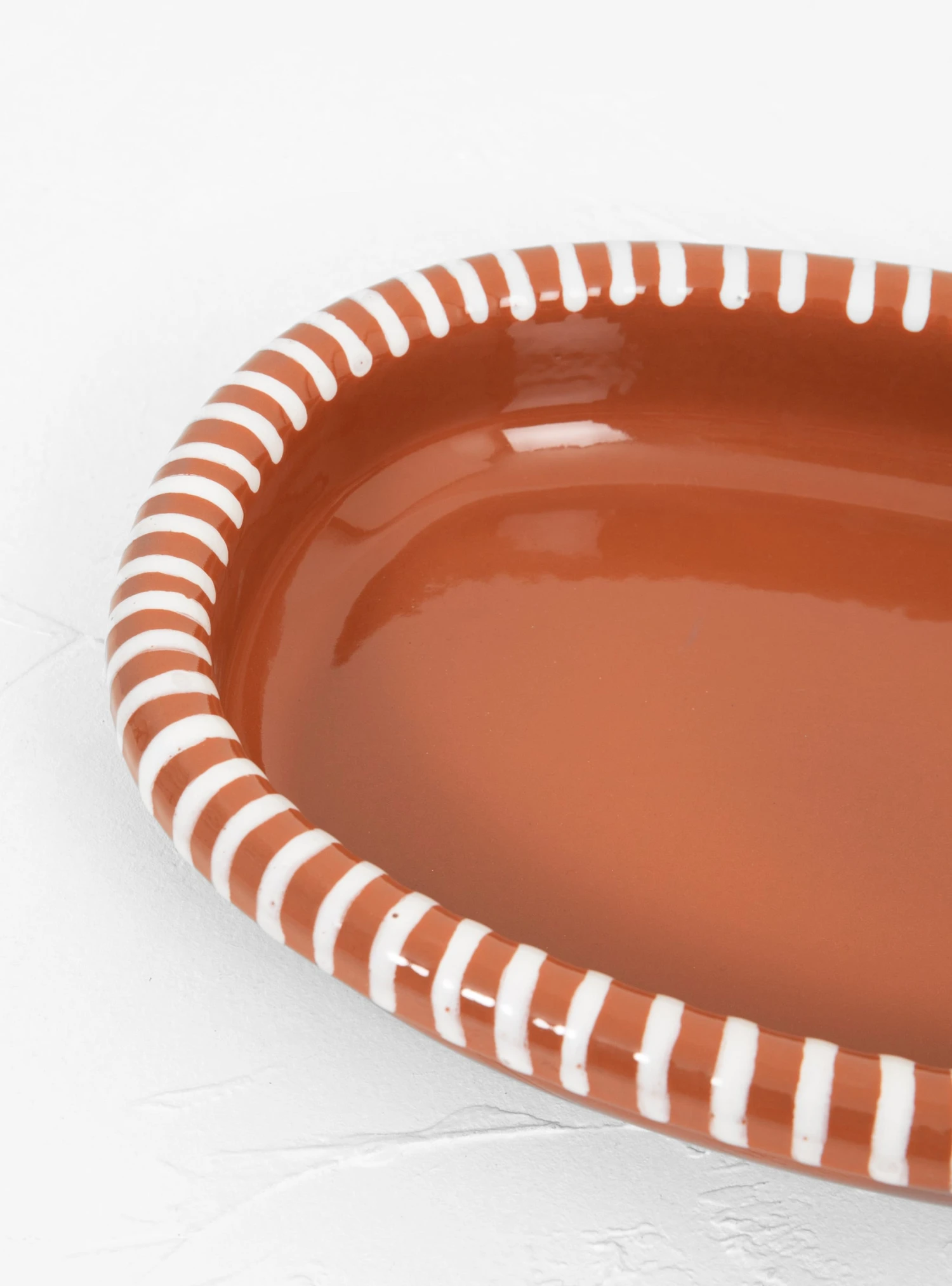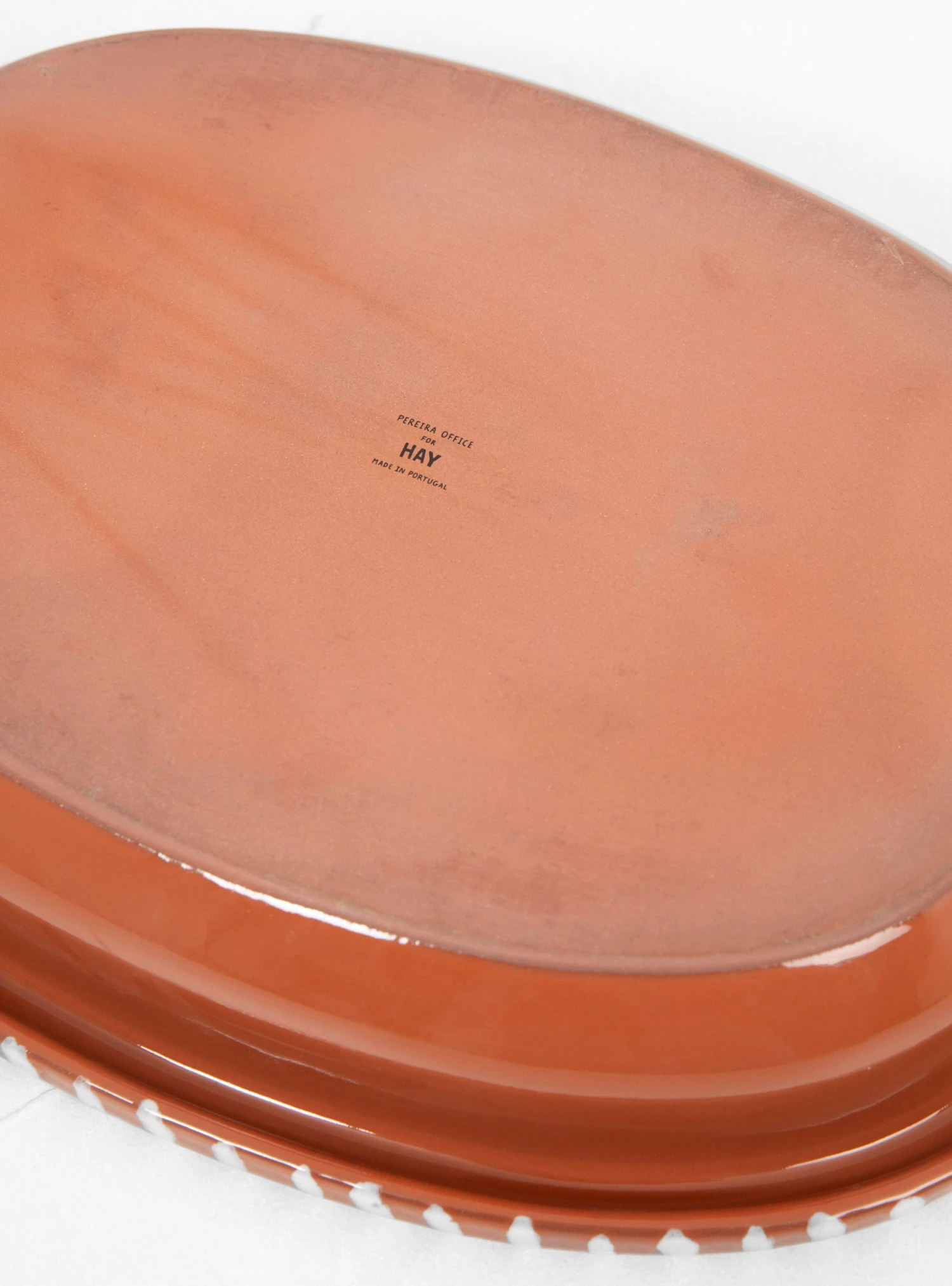 The Barro Oval Dish from Hay comes in a glazed red clay colourway and is finished with white paint detailing around the rim. The dish is perfect for serving delicious treats or even for decoration around the house.