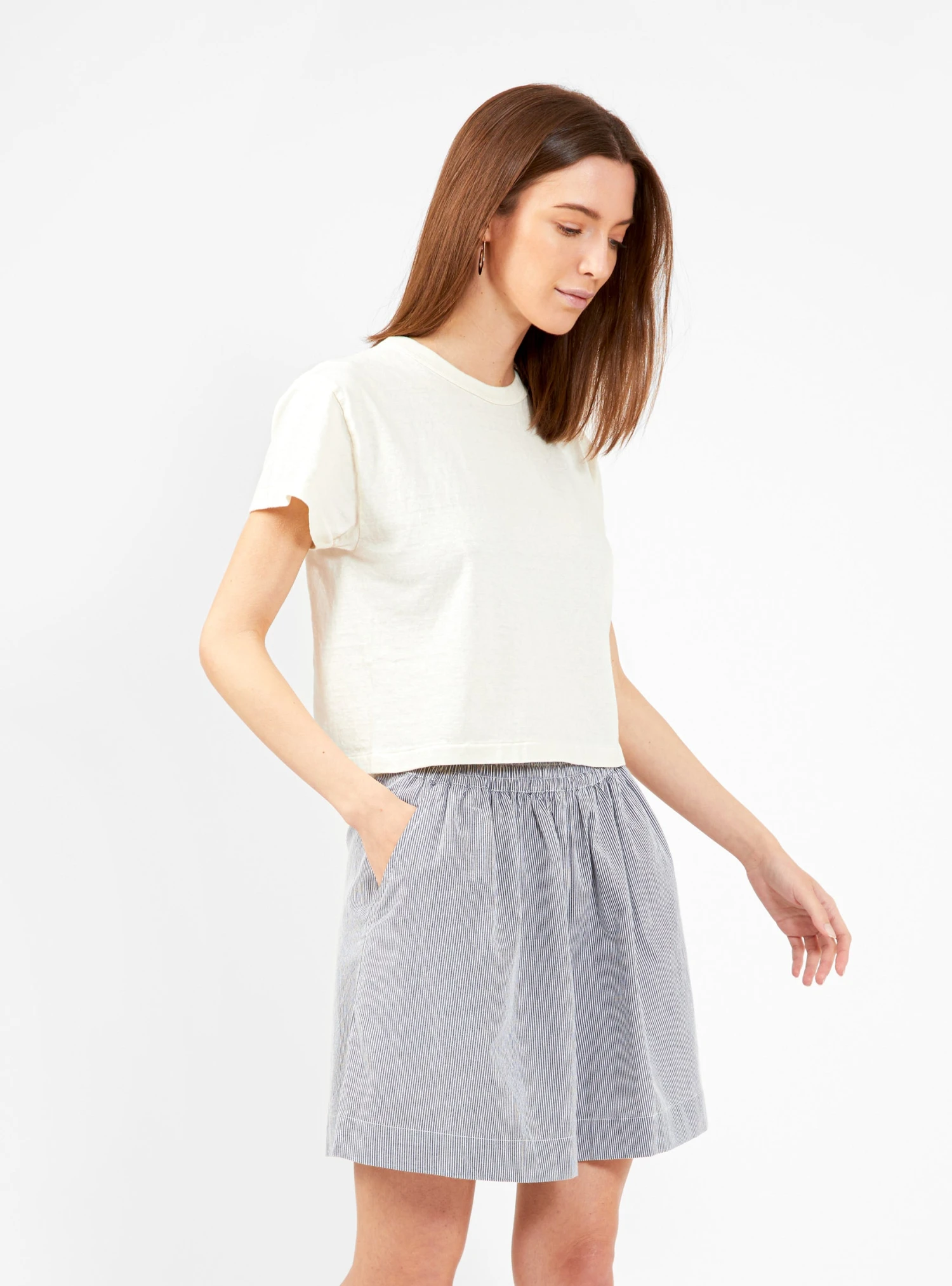 Sunray is renowned for elevated wardrobe staples such as this solitary-star white Hiaka T-shirt. Made in Japan using an antique circular knitting machines to avoid side seams, it’s cut from heavyweight cotton jersey to a slightly boxy silhouette with a ribbed crewneck and a cropped hem.