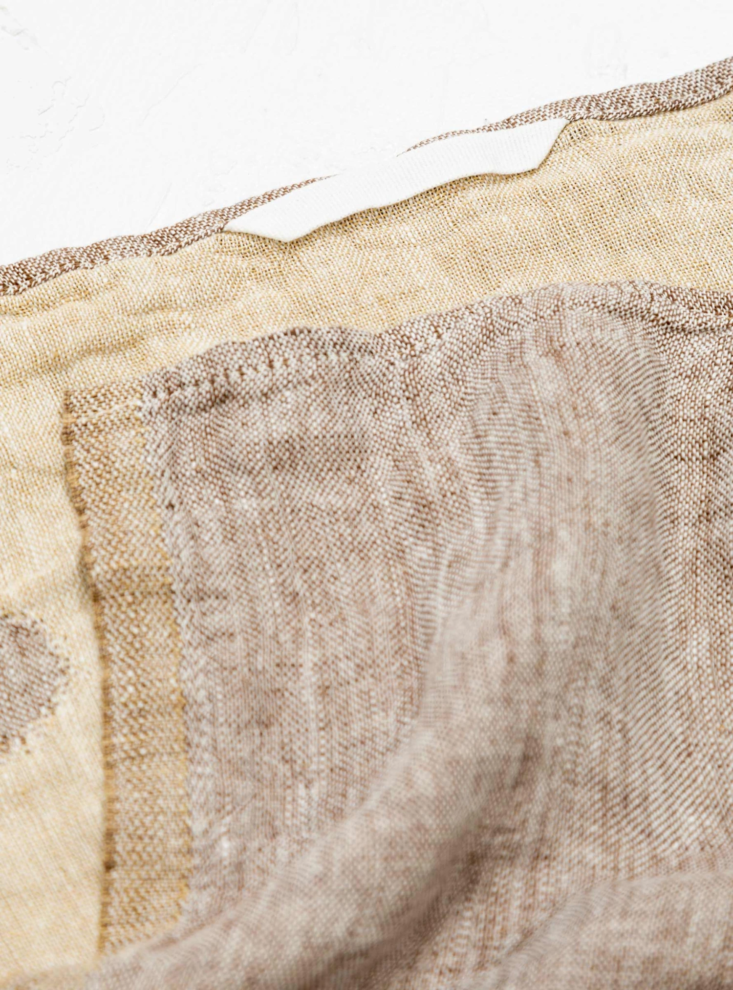 Washed to create a soft texture, this brown and gold Hietsu towel from Lapuan Kankurit is made in Finland from linen with a abstract jacquard motif.