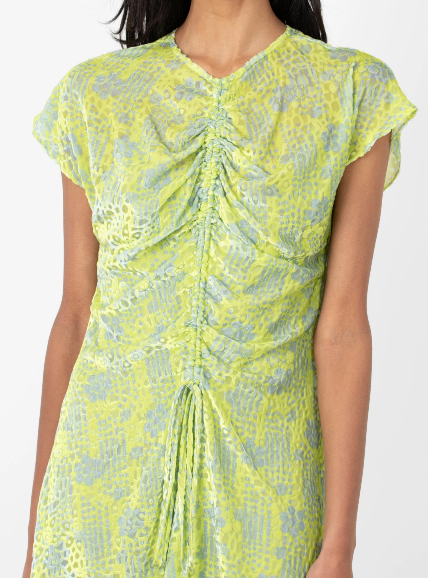 The Hilma Dress from Rachel Comey arrives in a yellow. Made from a silk blend, the velveteen midi-dress falls to a regular fit. The cap sleeve dress features a floral, block print and a delicate gather at the centre, which gives the dress it’s flowing drape.