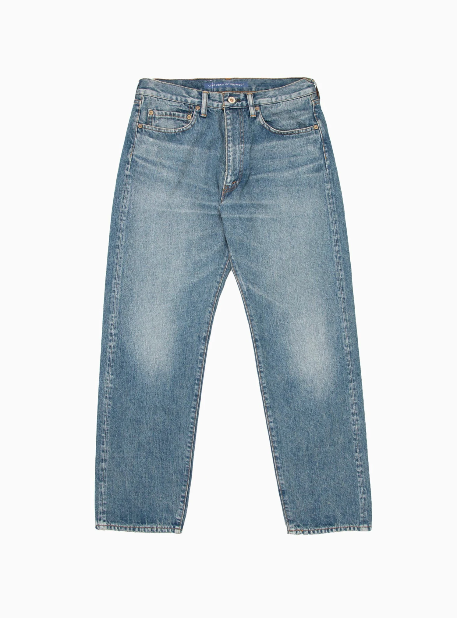 Made in Japan from stonewashed denim, these blue HL 55 jeans from HERILL are cut to a straight-leg silhouette with a classic five-pocket construction.