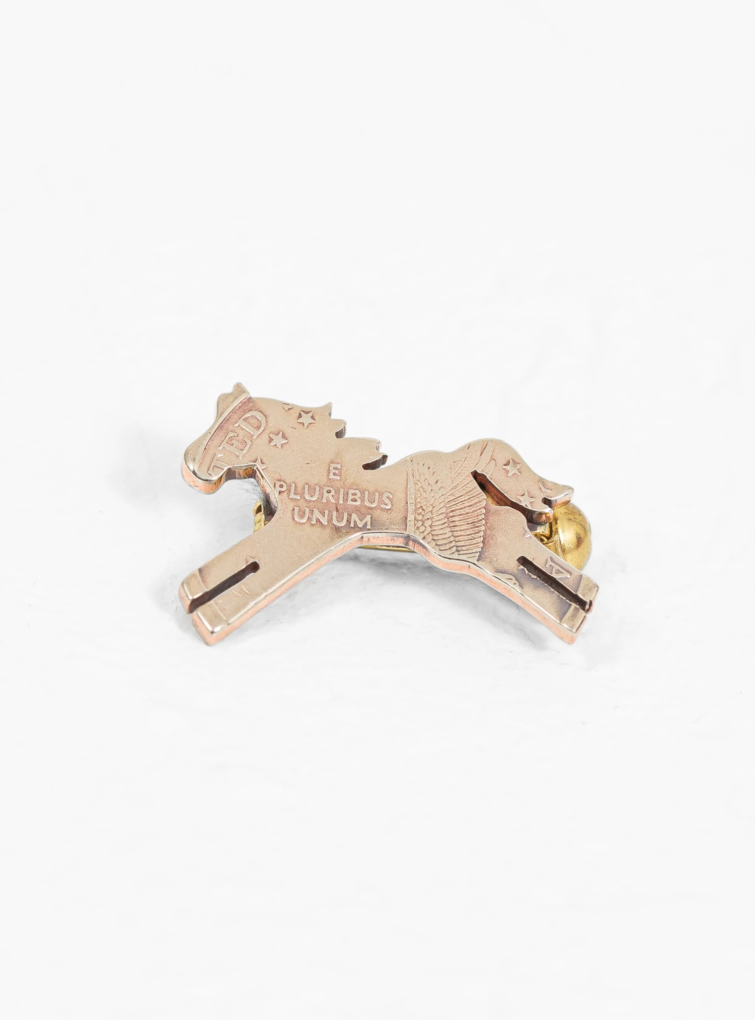 Handmade in Japan, this Horse pin from NORTH WORKS is fashioned from a vintage American coin – famed for its high silver content – and secures via a hinge fastening.