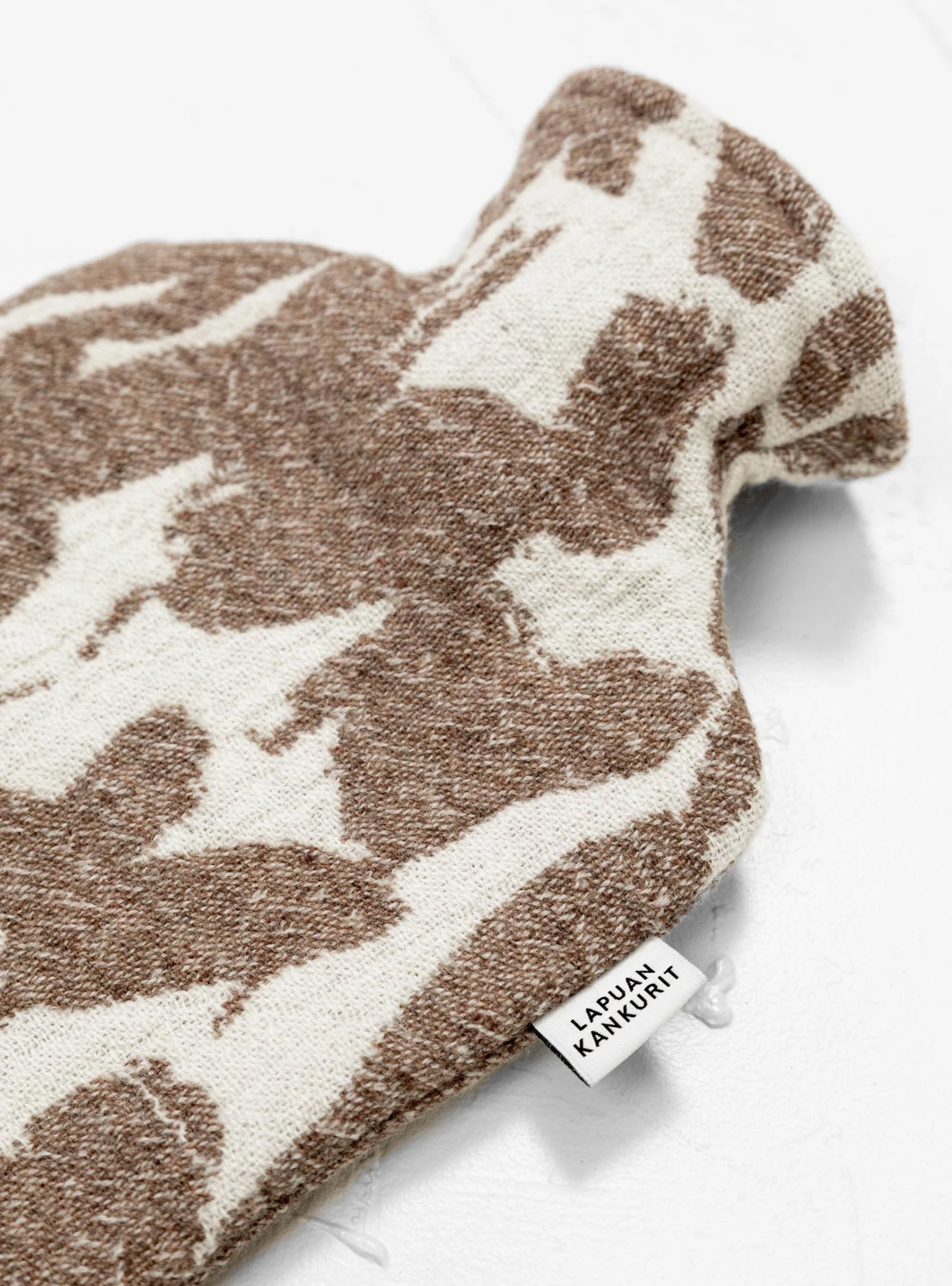 Utilising excess fabric, this brown hot water bottle from Lapuan Kankurit is wrapped in wool jacquard featuring the label’s signature Jakala motif.