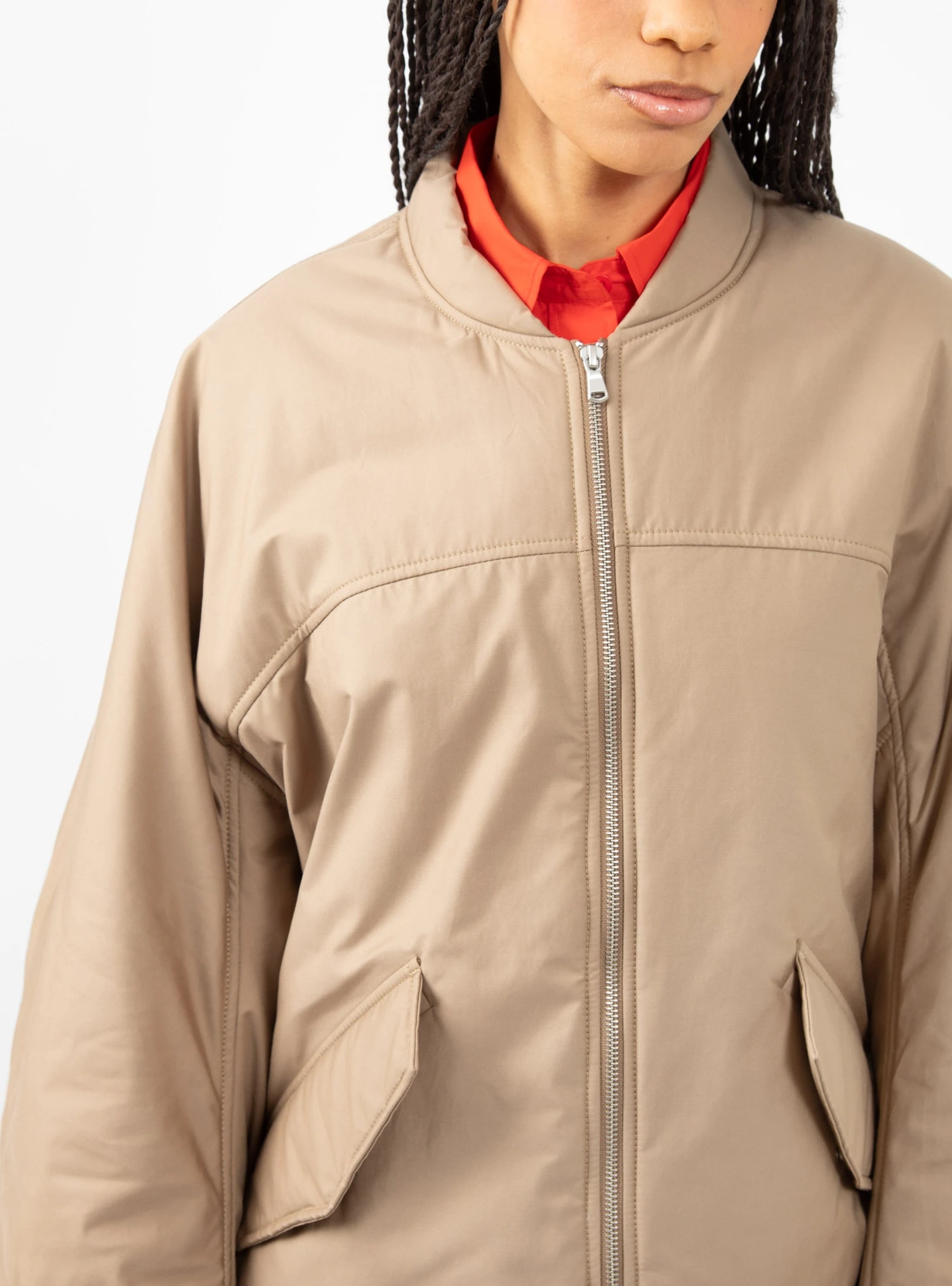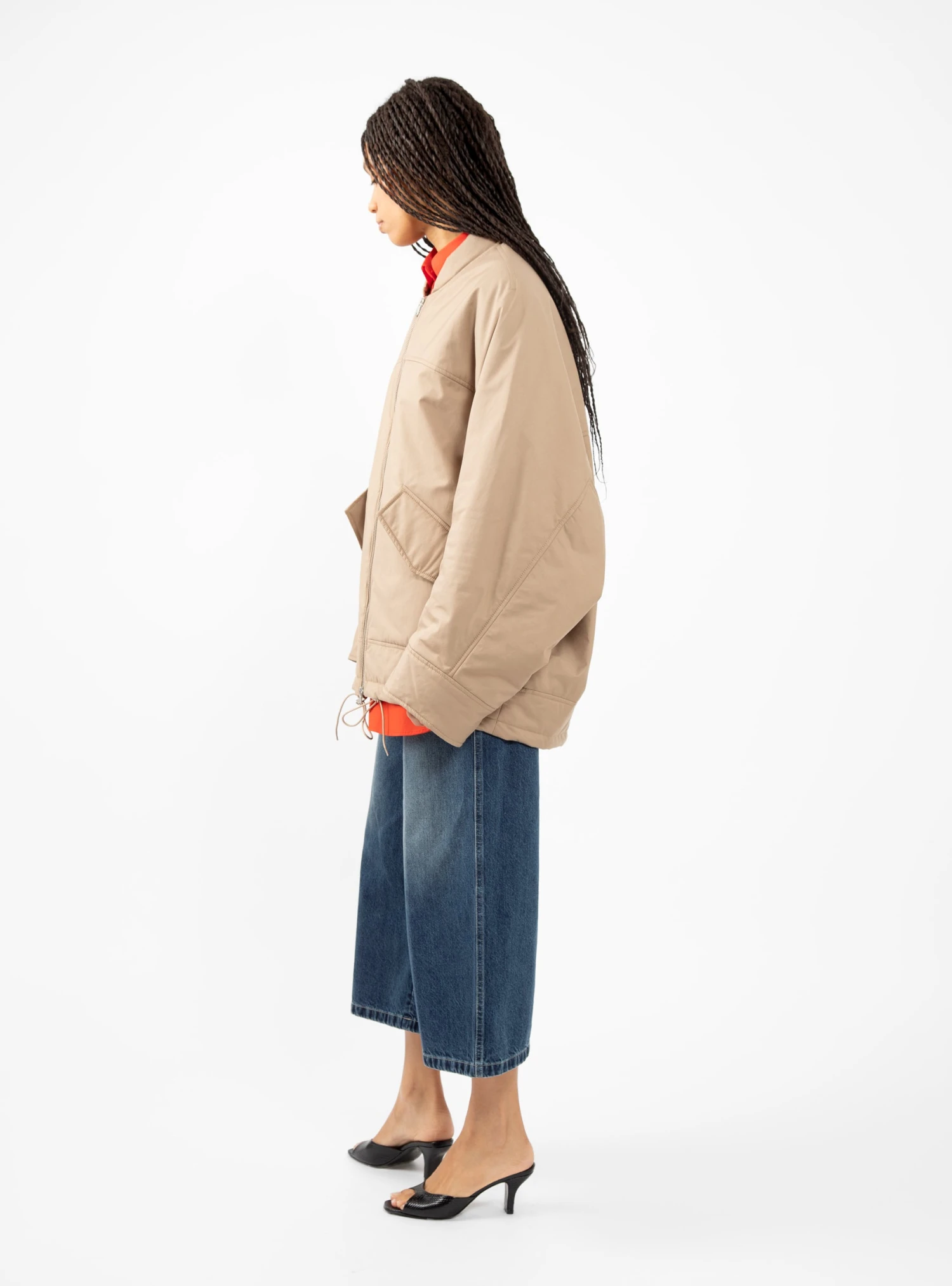 This brown Jemi bomber jacket by Christian Wijnants is cut to an oversized silhouette with wide sleeves and a voluminous back structure. A great piece for playing with proportions!