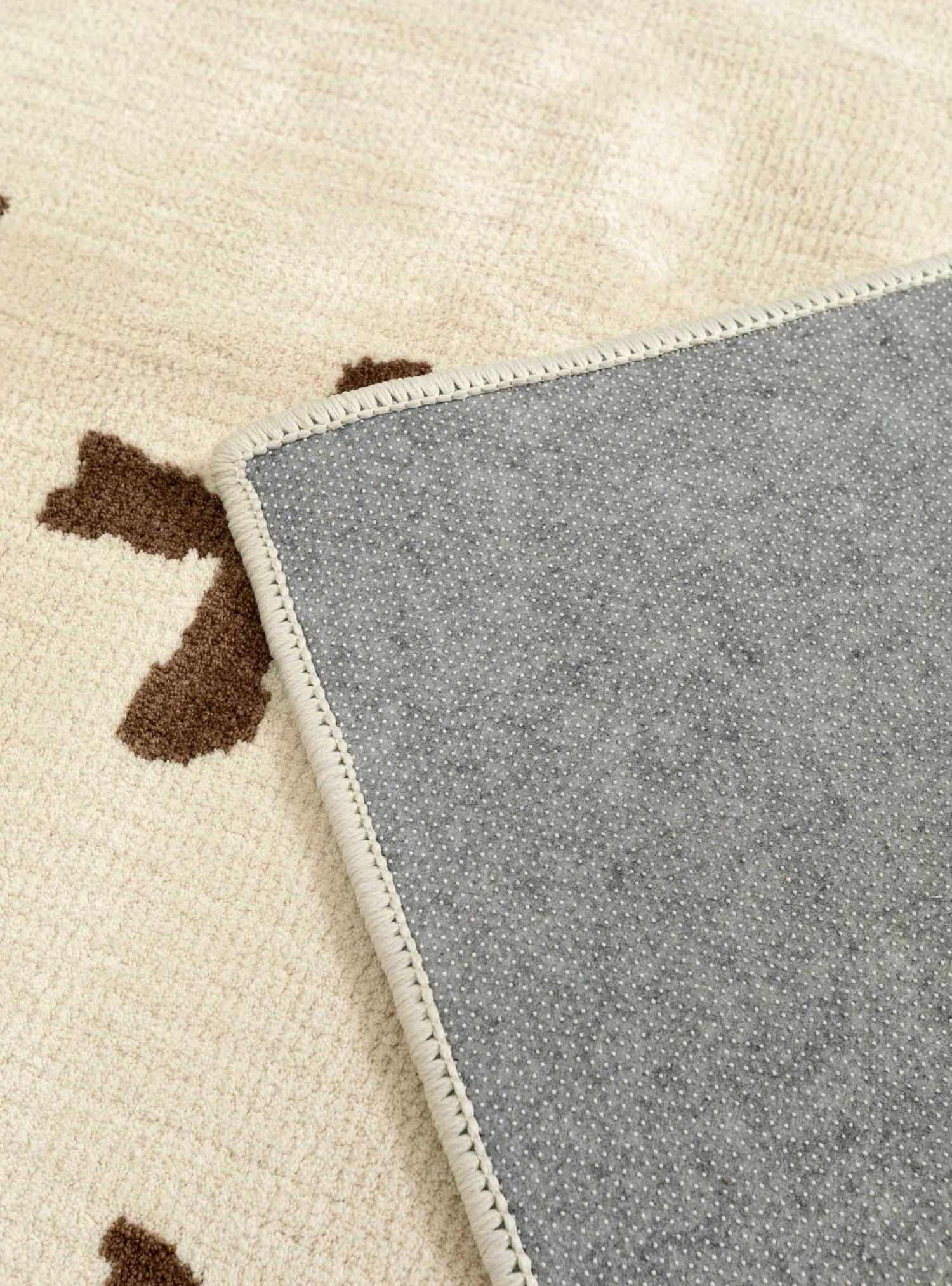 Make this brown and white BasShu rug the striking centrepiece of your home or office space. It’s made from a synthetic knit fabric and features a non-slip backing.