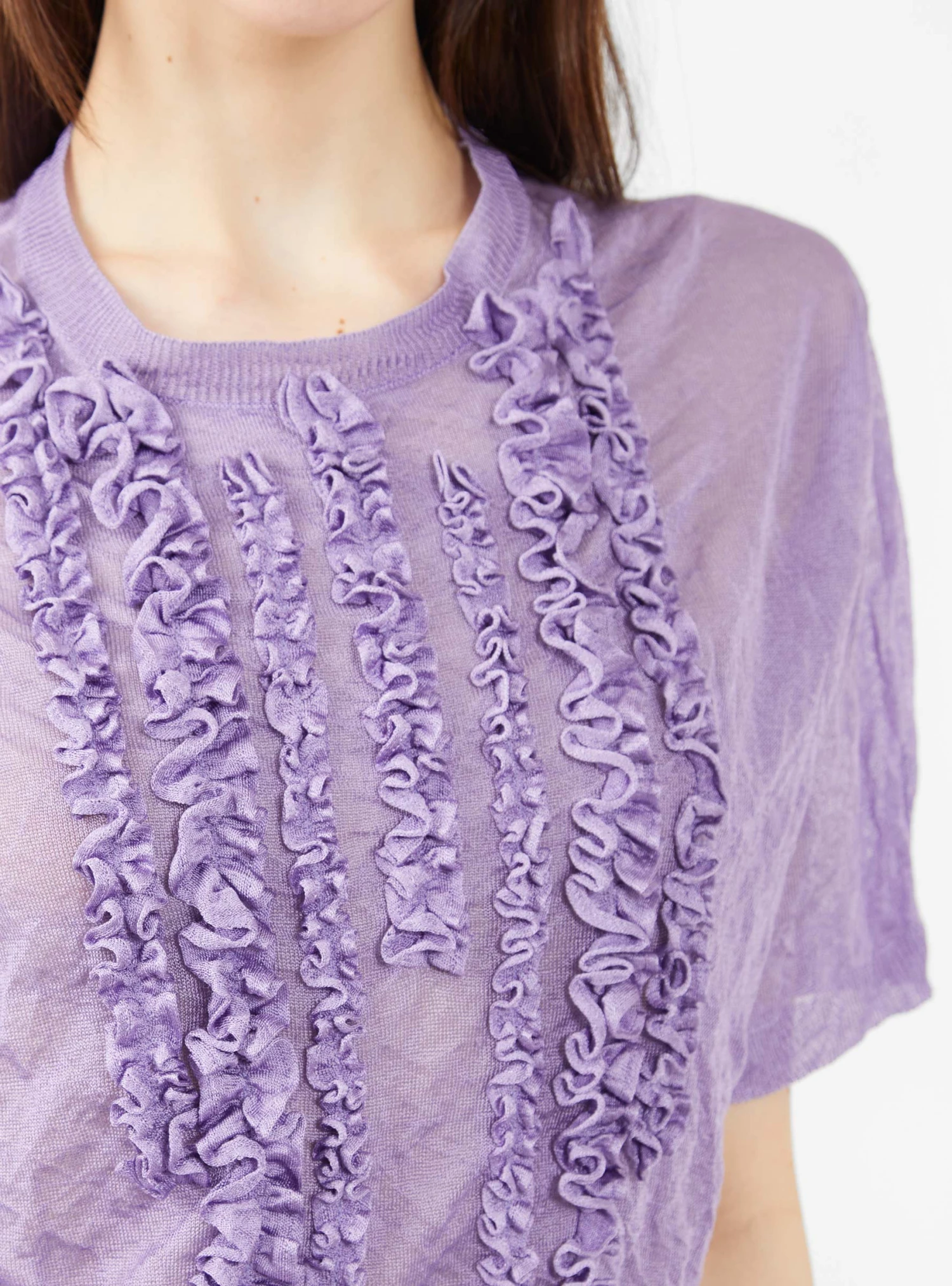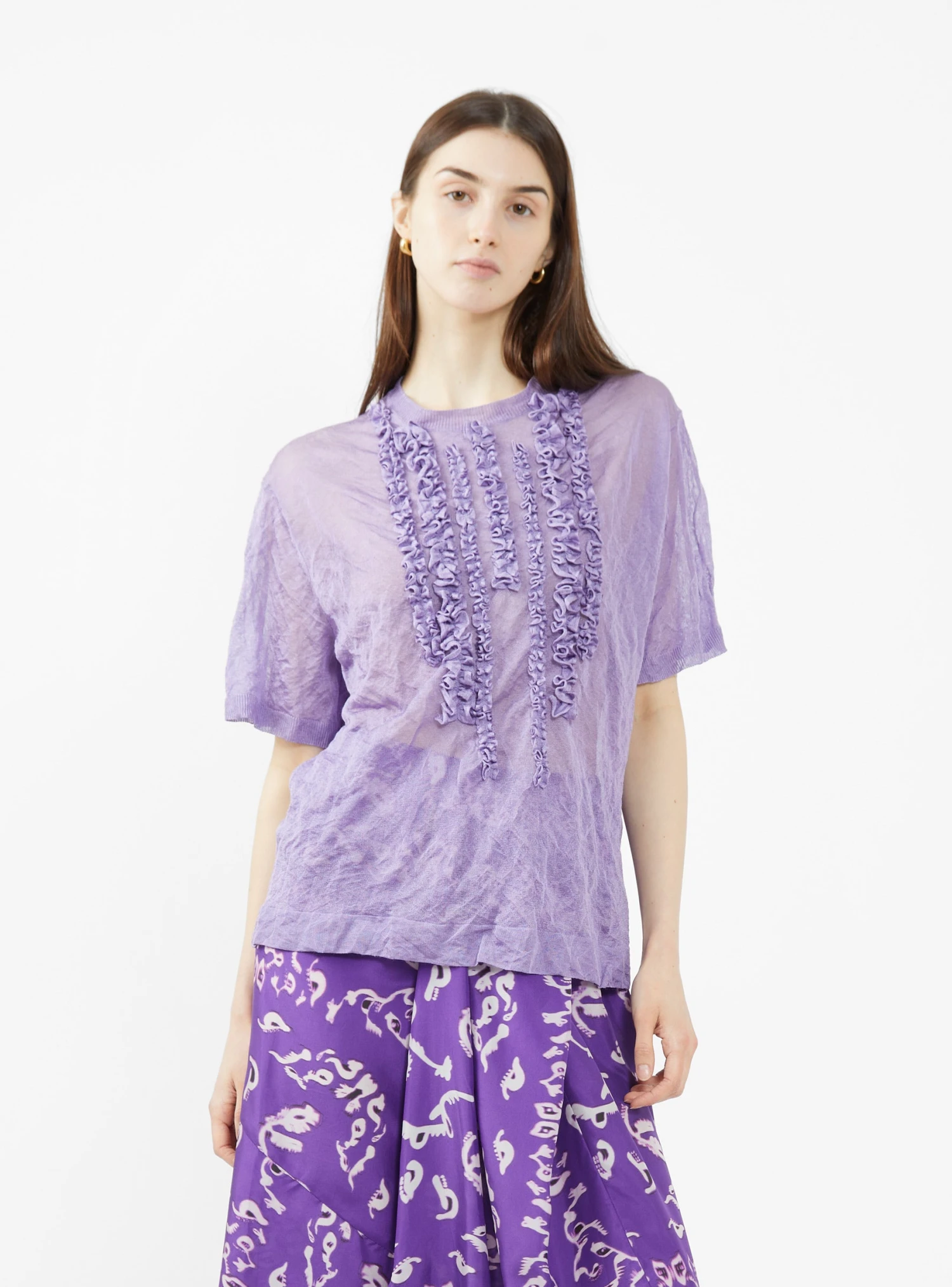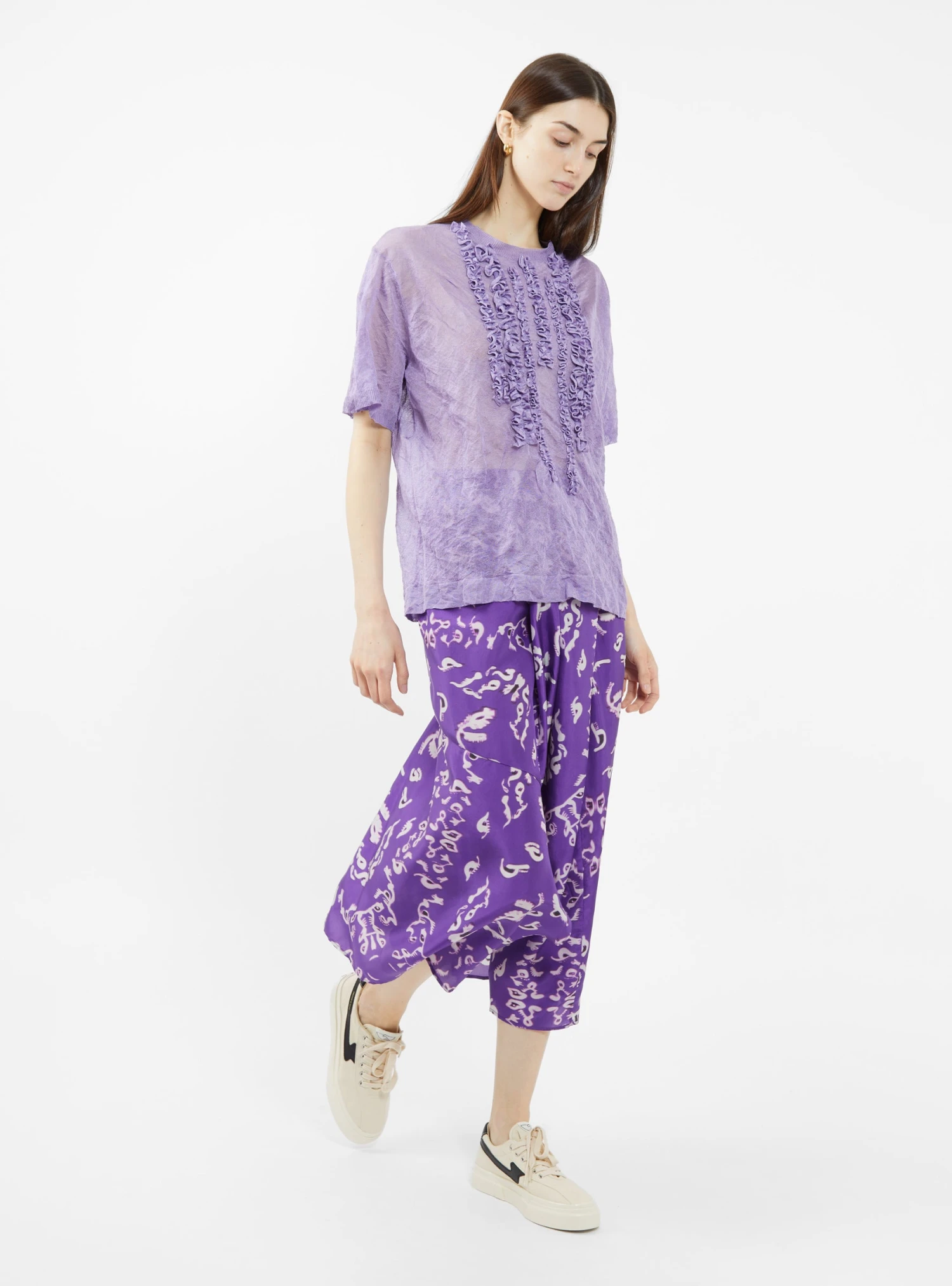 Made with metallic fibres that shimmer off the light, this purple Kocha top from Christian Wijnants is knitted to a relaxed silhouette with dropped shoulders and ruffle trims.