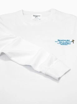 Under its Reception S.C. label, the brand explores and commemorates various eateries and restaurants around the globe, celebrating unique spots and establishments through graphic tees. This piece is in tribute to the small island of ‘Our Lady On The Rocks’ off the coast of Perast in Montenegro, featuring text on the chest with the island’s address, and a large back print collaging various art and iconography of the region above a rebellious and humorous mission statement.