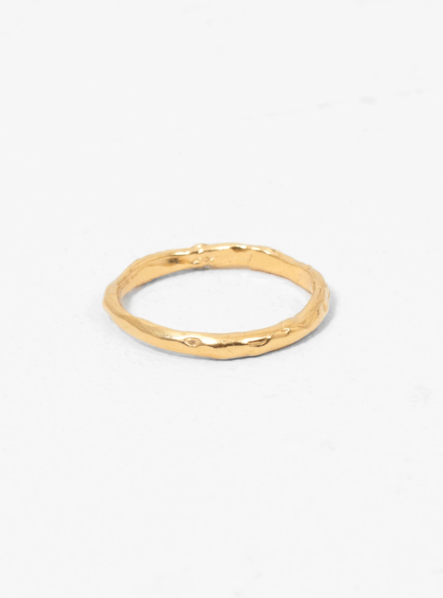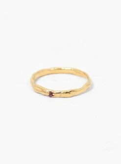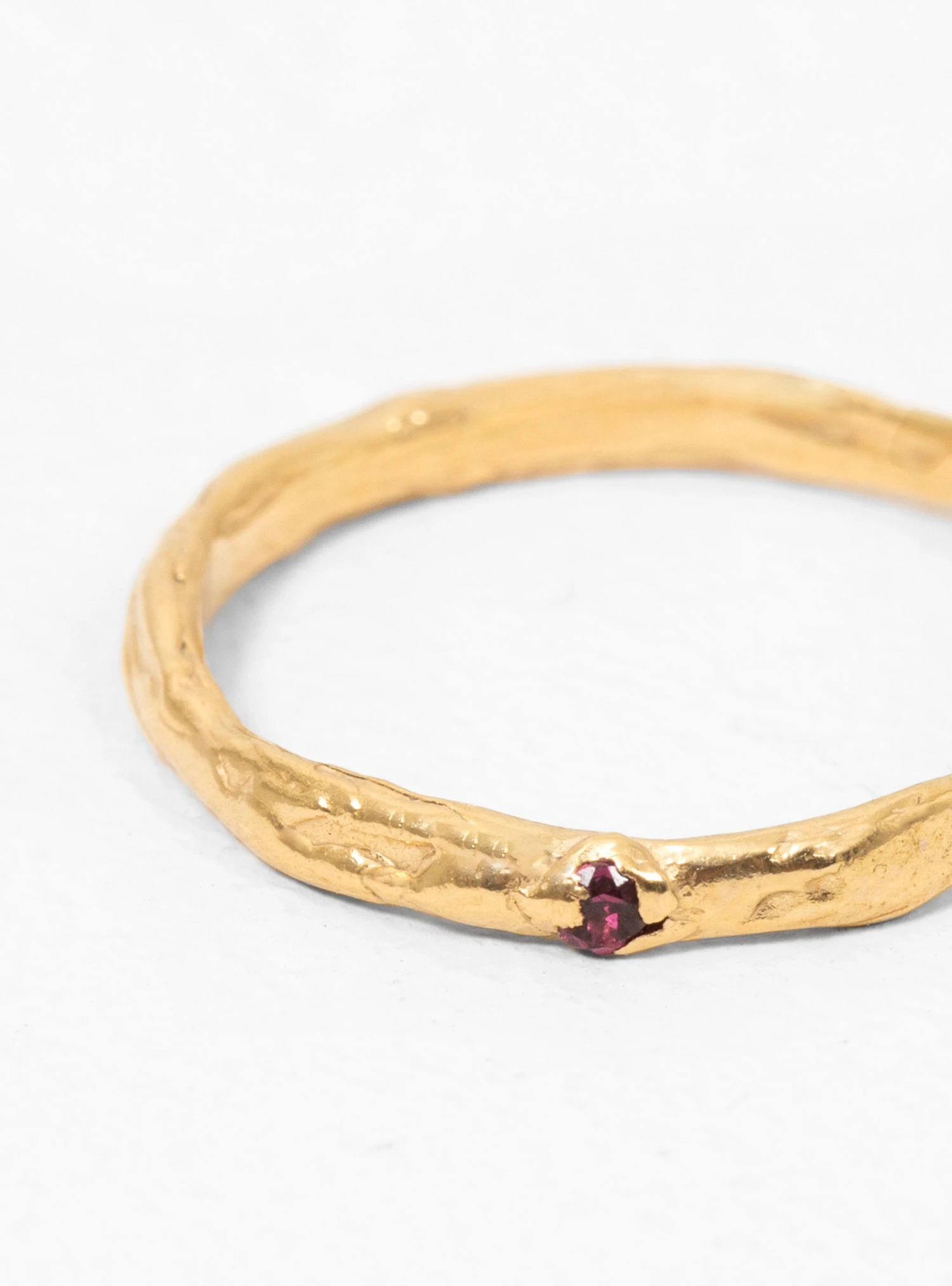Spanish label Simuero takes looks to the colours Mediterranean for Labanda Ring, with its delicate, handmade 18K gold-plated silver frame that mimics the ripples left in the sand by waves embedded with a rose garnet gemstone at the heart. Let it shine on its own or let the varying tones from the other designs in the collection complement each other.