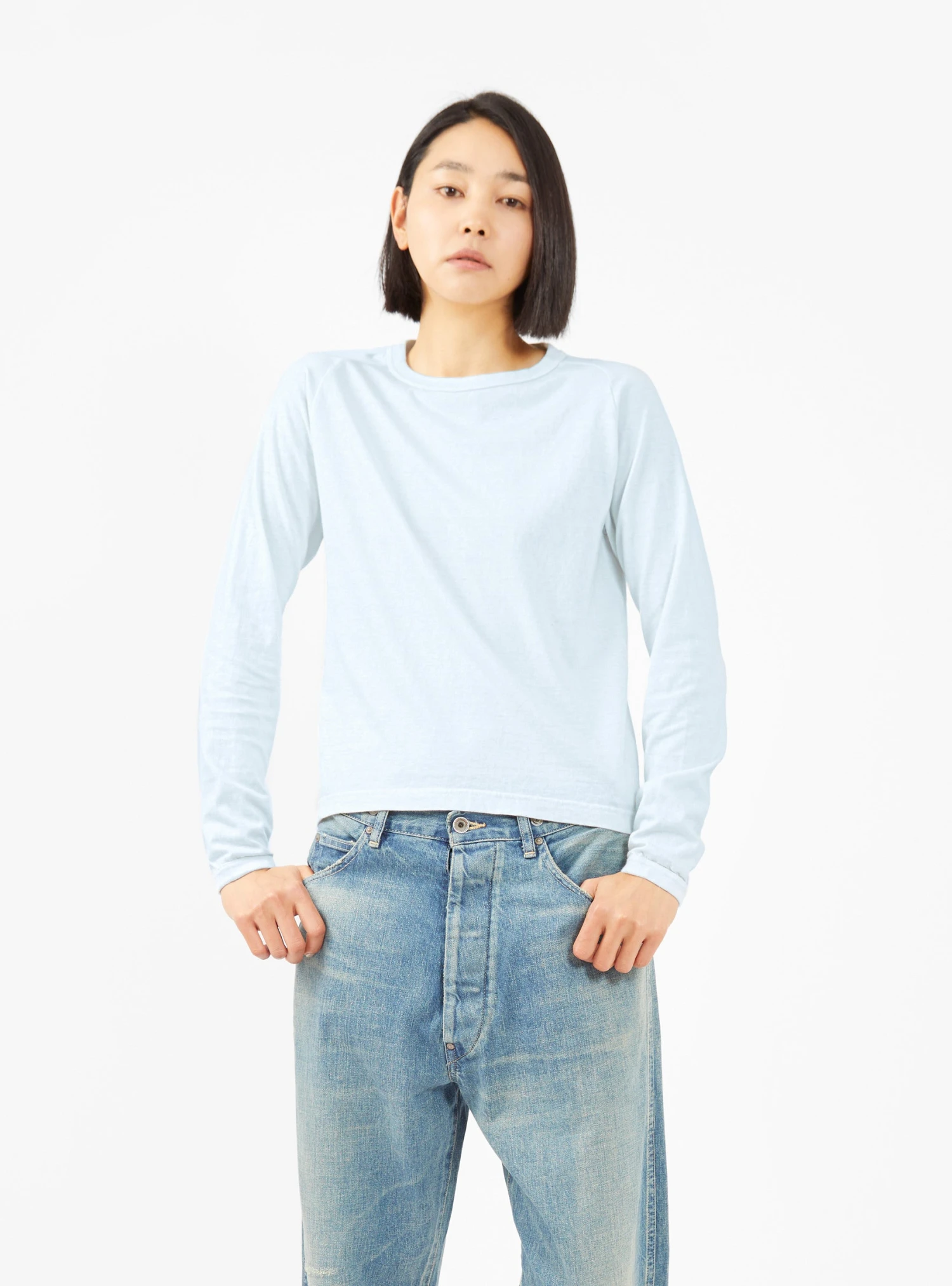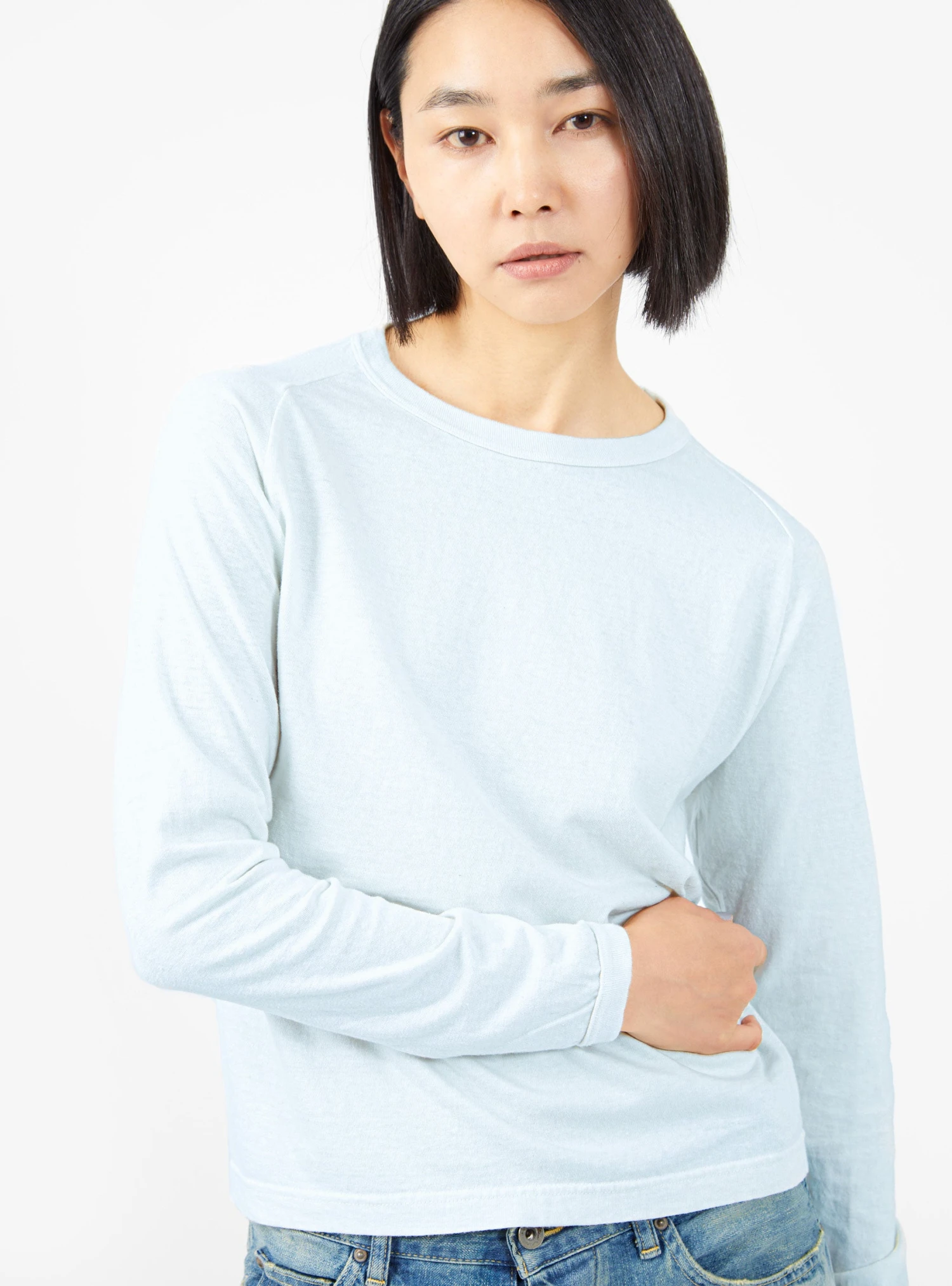 Made in Japan using a circular knitting machine to avoid side seams, this blue Laka T-shirt from Sunray Sportswear is cut from cotton jersey to a classic silhouette with a ribbed crewneck.