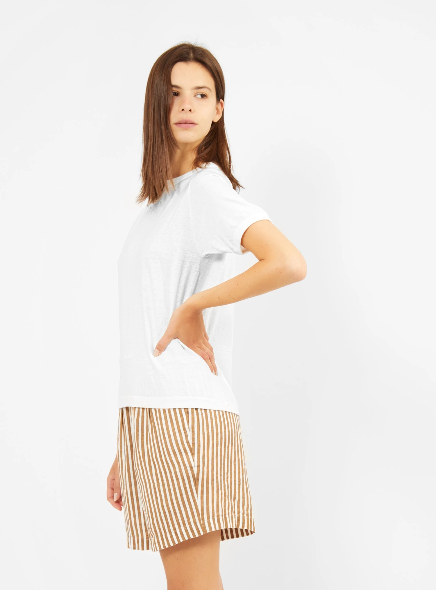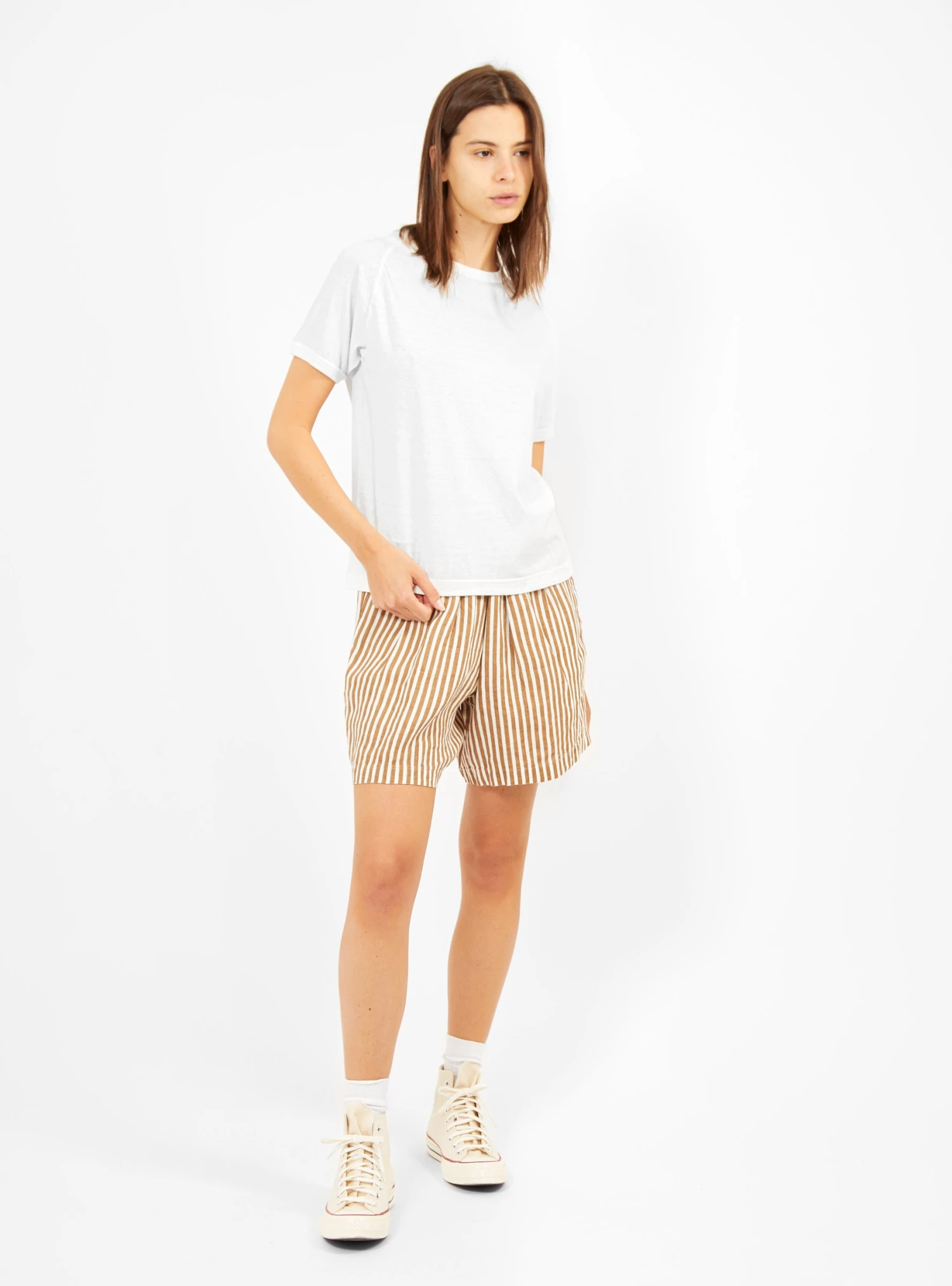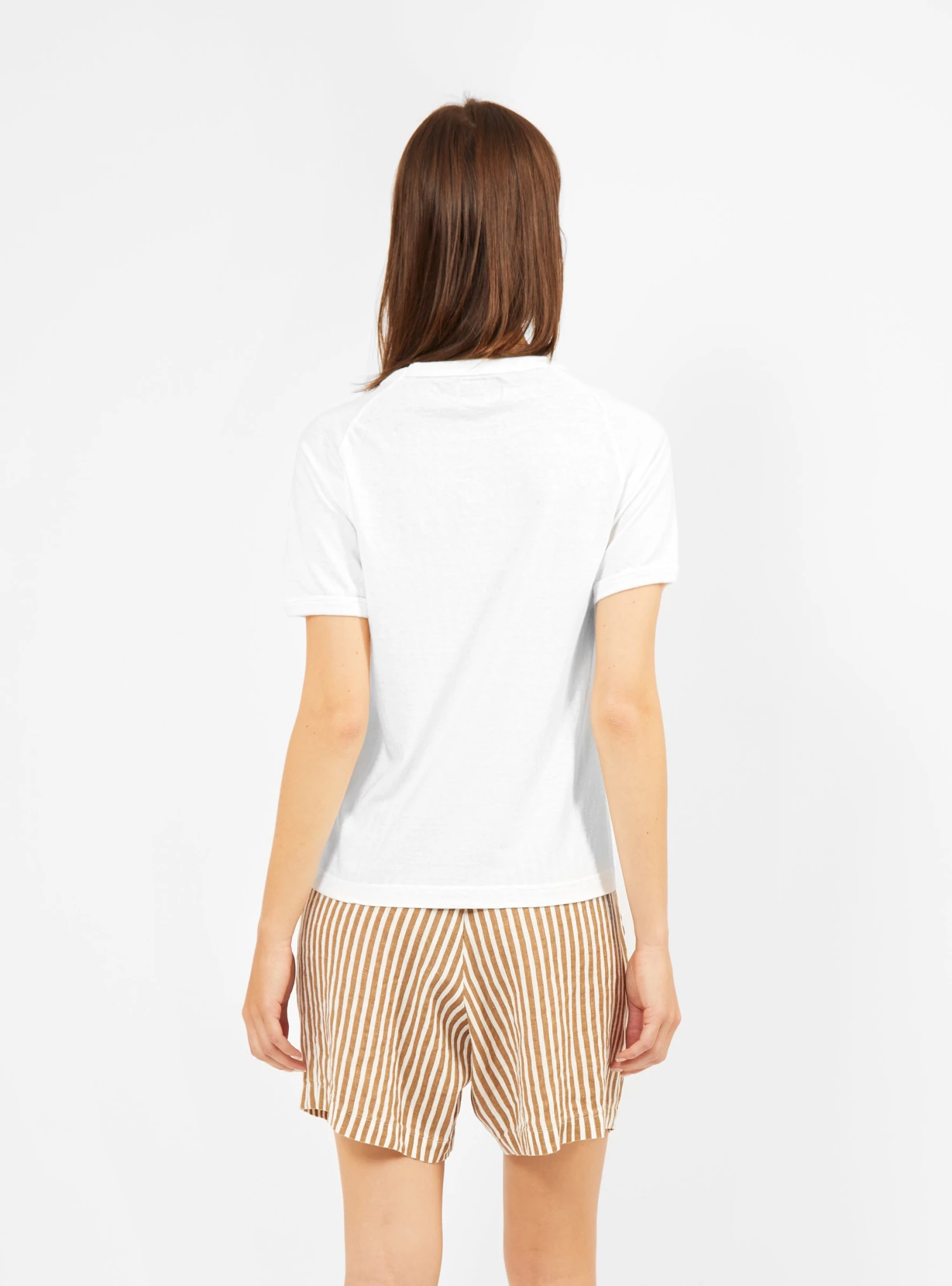 Invest in your wardrobe essentials with this off-white Laka T-shirt from Sunray. Made in Japan using an antique circular knitting machines to avoid side seams, it’s cut from mid-weight cotton jersey to a slightly boxy silhouette with a ribbed crewneck and raglan sleeves.Â